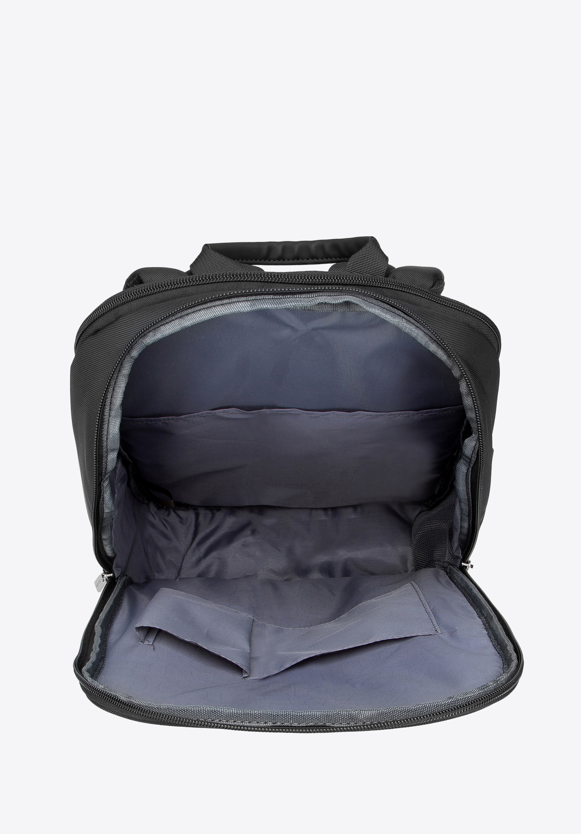- Всередині: два великих відділення та кишеня для ноутбука з м’якою підкладкою для пристроїв розміром до 37 × 25 см (15,6 дюйма) .