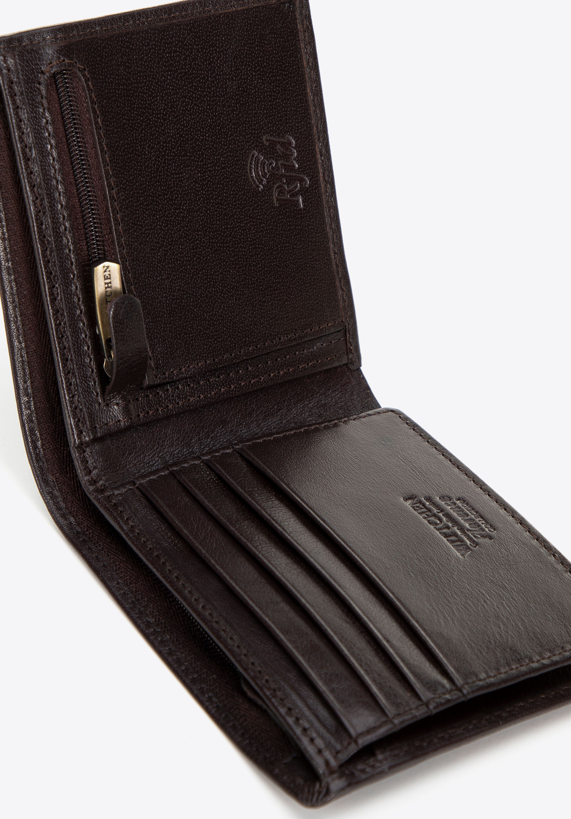 Чоловічий гаманець WITTCHEN — це елегантний і функціональний вибір, який поєднує в собі високоякісні матеріали та точну майстерність. Виготовлений з м’якої , але дуже міцної телячої шкіри , він стійкий до подряпин і повсякденного носіння. У гаманці достатньо місця — два відділення для купюр , одне з яких застібається на блискавку для додаткової безпеки, і кишеня для монет із застібкою.