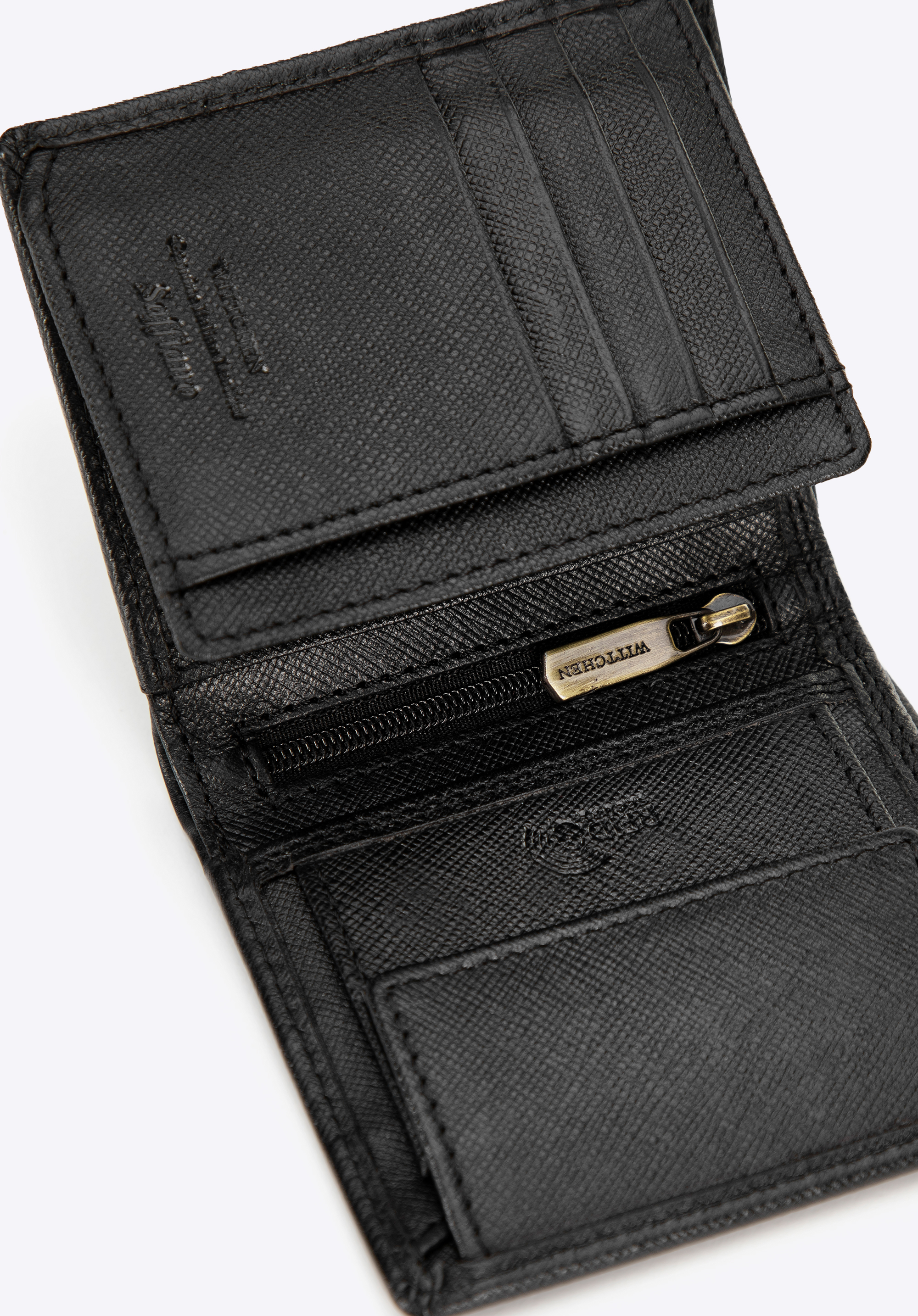 Цей елегантний чоловічий гаманець з колекції Saffiano – ідеальний вибір для тих, хто цінує стиль та функціональність. Виготовлений з міцної натуральної шкіри з характерною текстурою саф'яно , він пропонує стриману елегантність у мінімалістичному дизайні – без зайвих прикрас, лише логотип WITTCHEN, витиснений спереду. Цей класичний гаманець доповнить будь-який образ, від повсякденного до більш офіційного.