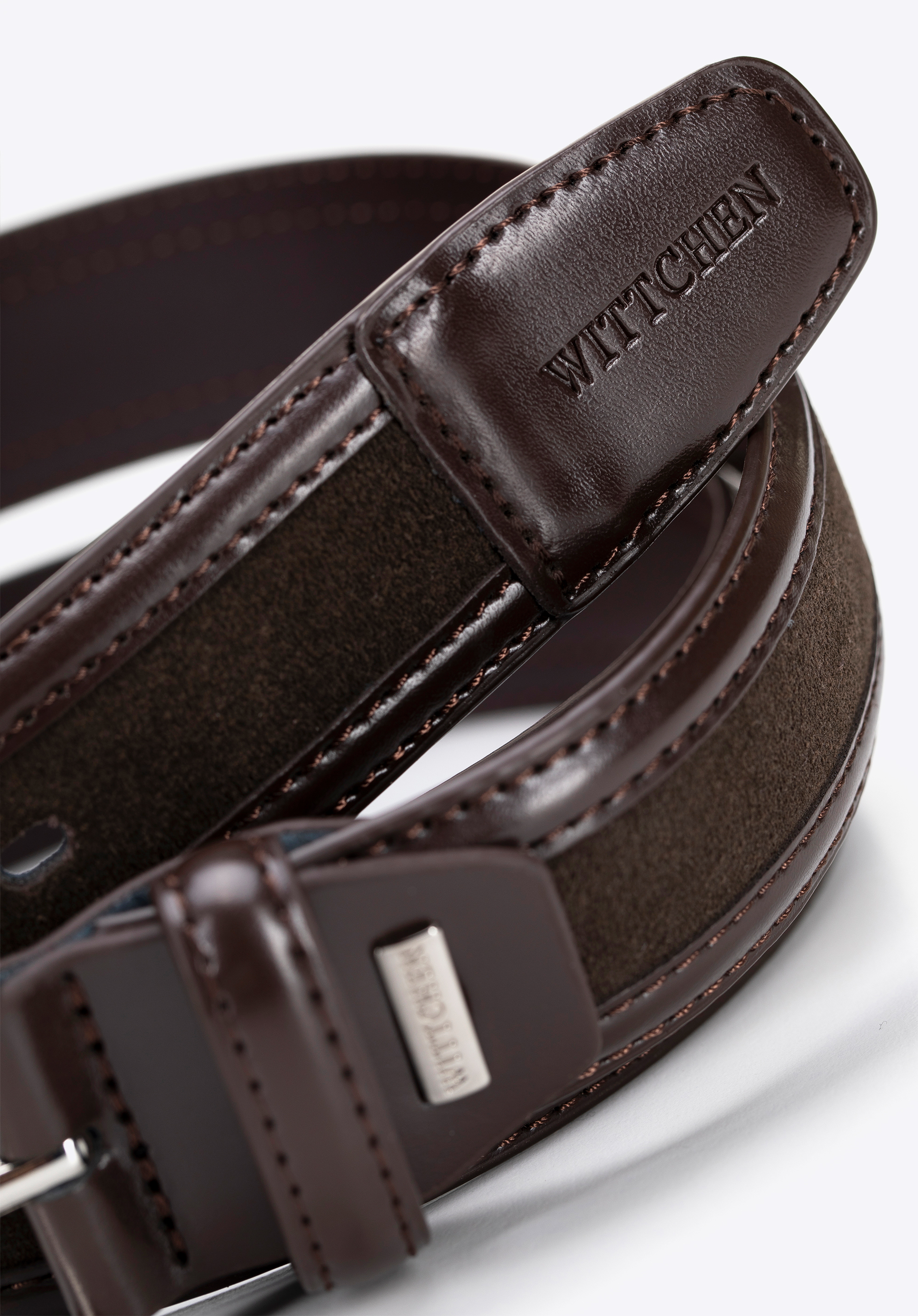 Додайте вишуканості своєму образу завдяки унікальному чоловічому ременю з натуральної шкіри, який вражає контрастом фактур — гладкої та замшевої. Уважно продуманий, щоб поєднувати позачасову елегантність із модним чуттям, цей ремінь стає чимось більшим, ніж просто функціональний аксесуар — це витончене доповнення твого стилю.