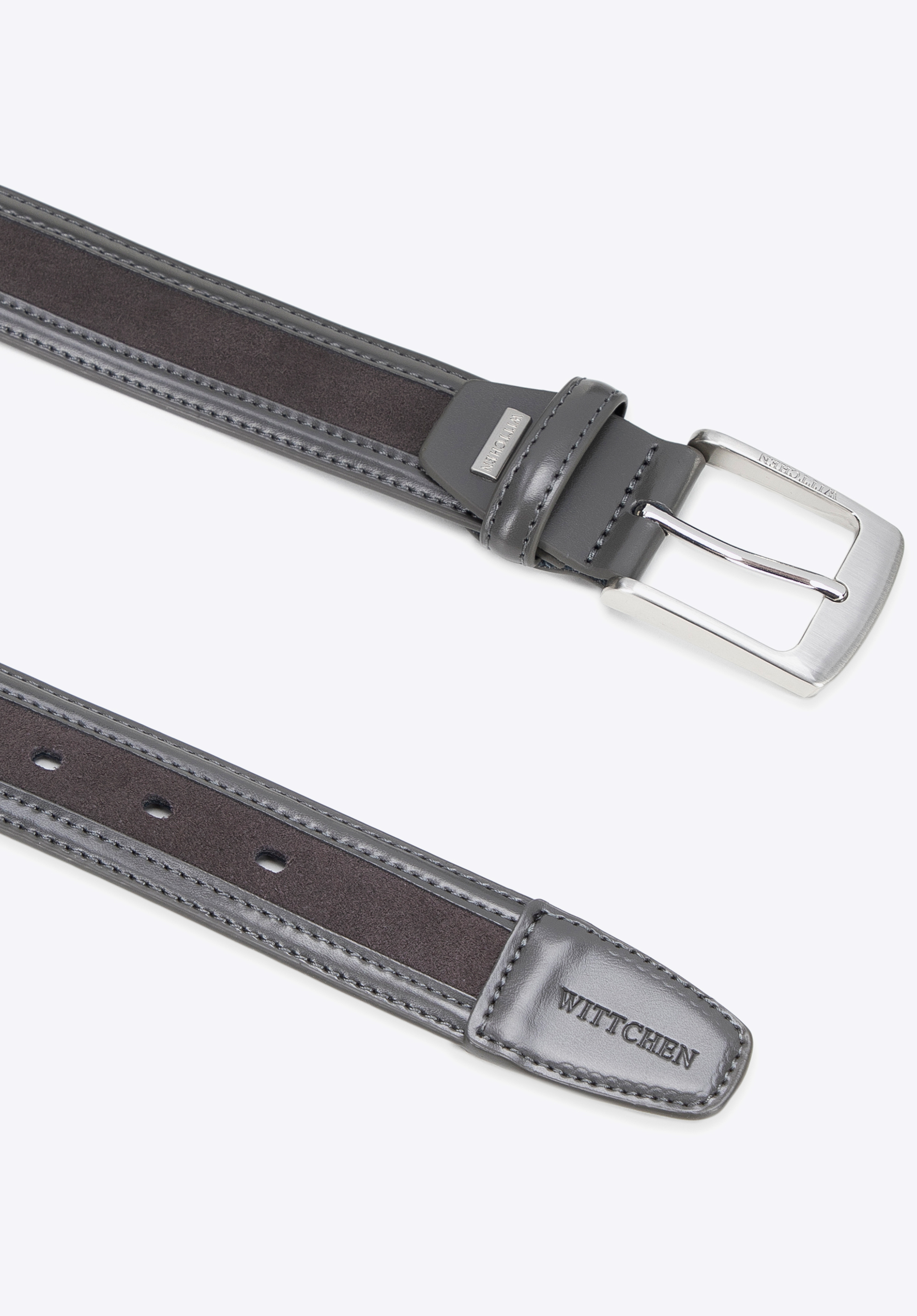 Додайте вишуканості своєму образу завдяки унікальному чоловічому ременю з натуральної шкіри, який вражає контрастом фактур — гладкої та замшевої. Уважно продуманий, щоб поєднувати позачасову елегантність із модним чуттям, цей ремінь стає чимось більшим, ніж просто функціональний аксесуар — це витончене доповнення твого стилю.