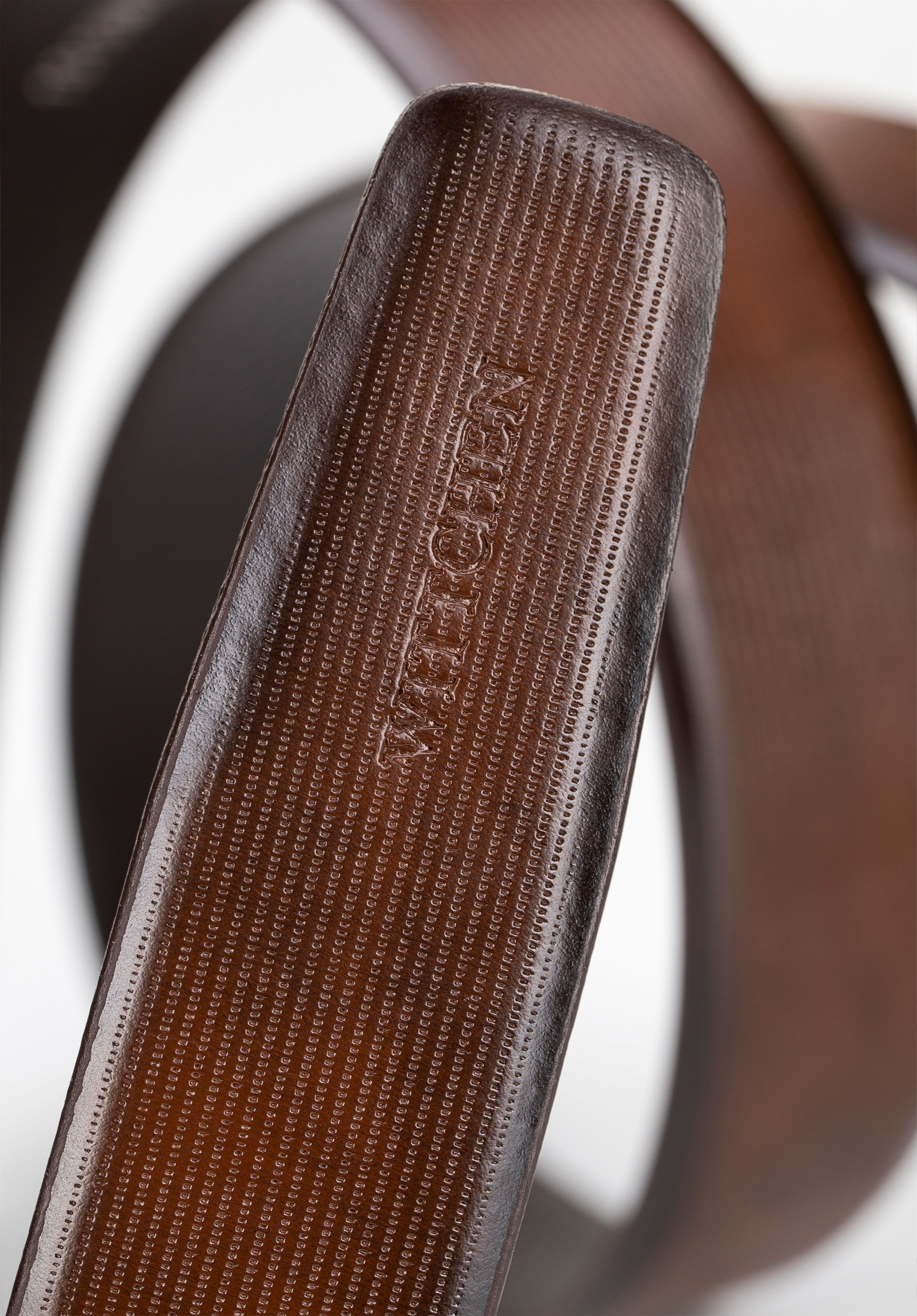 - Логотип бренду : непомітно витиснений на кінчику ременя, що підкреслює автентичність та увагу до деталей.