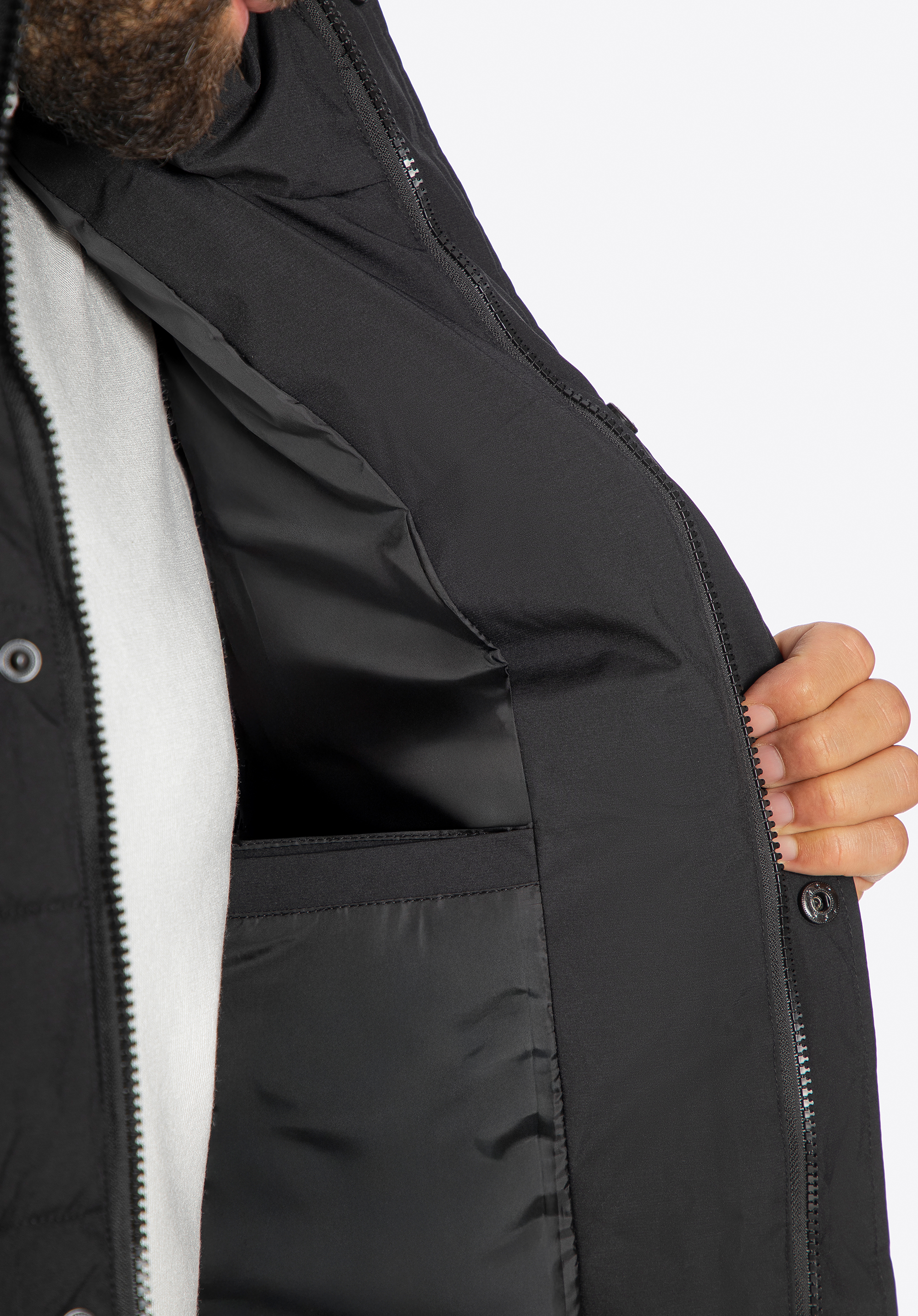 - Капюшон з гумкою: Регулюється і застібається під шиєю на кнопки, забезпечує ефективний захист від холоду і вітру.
