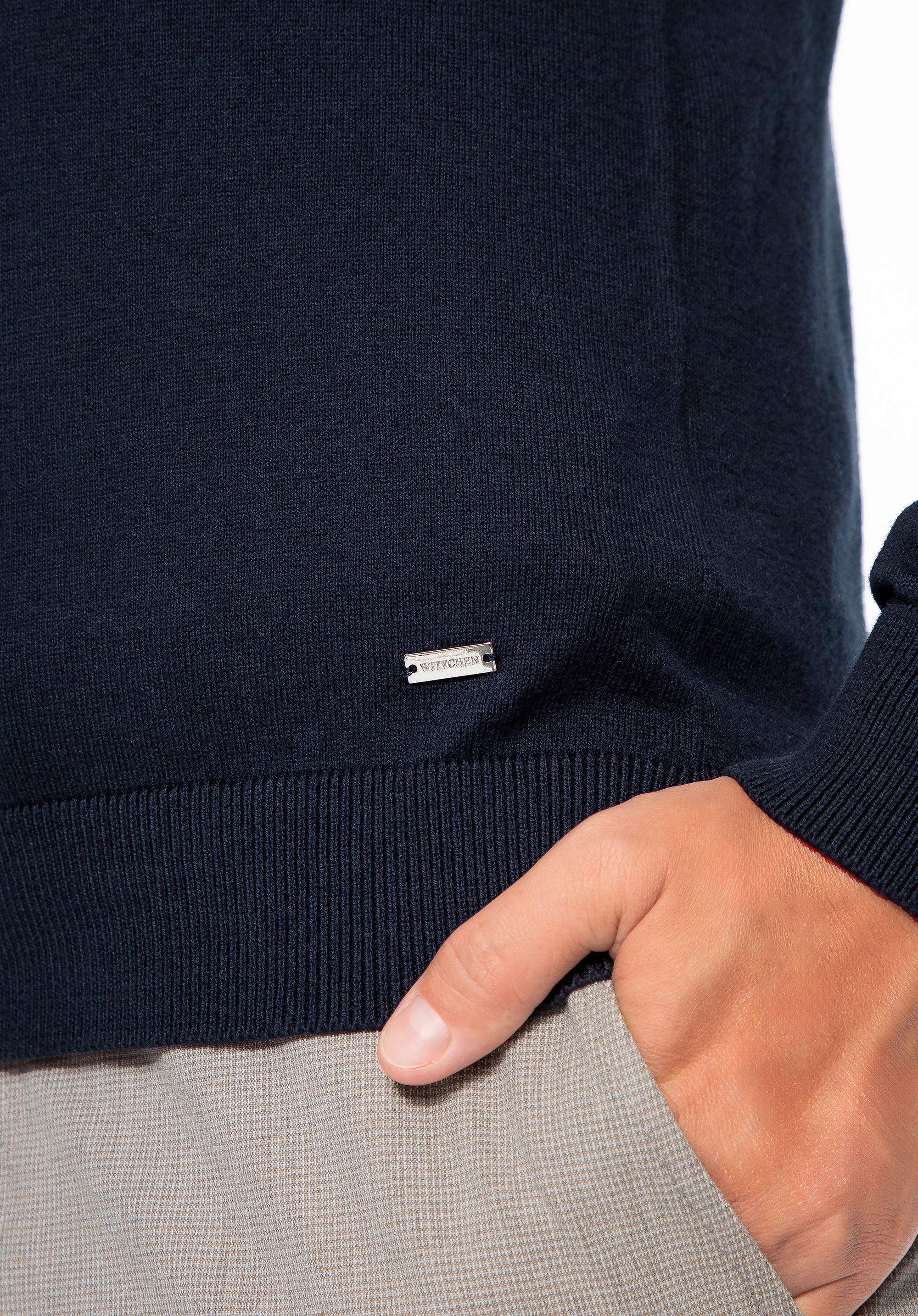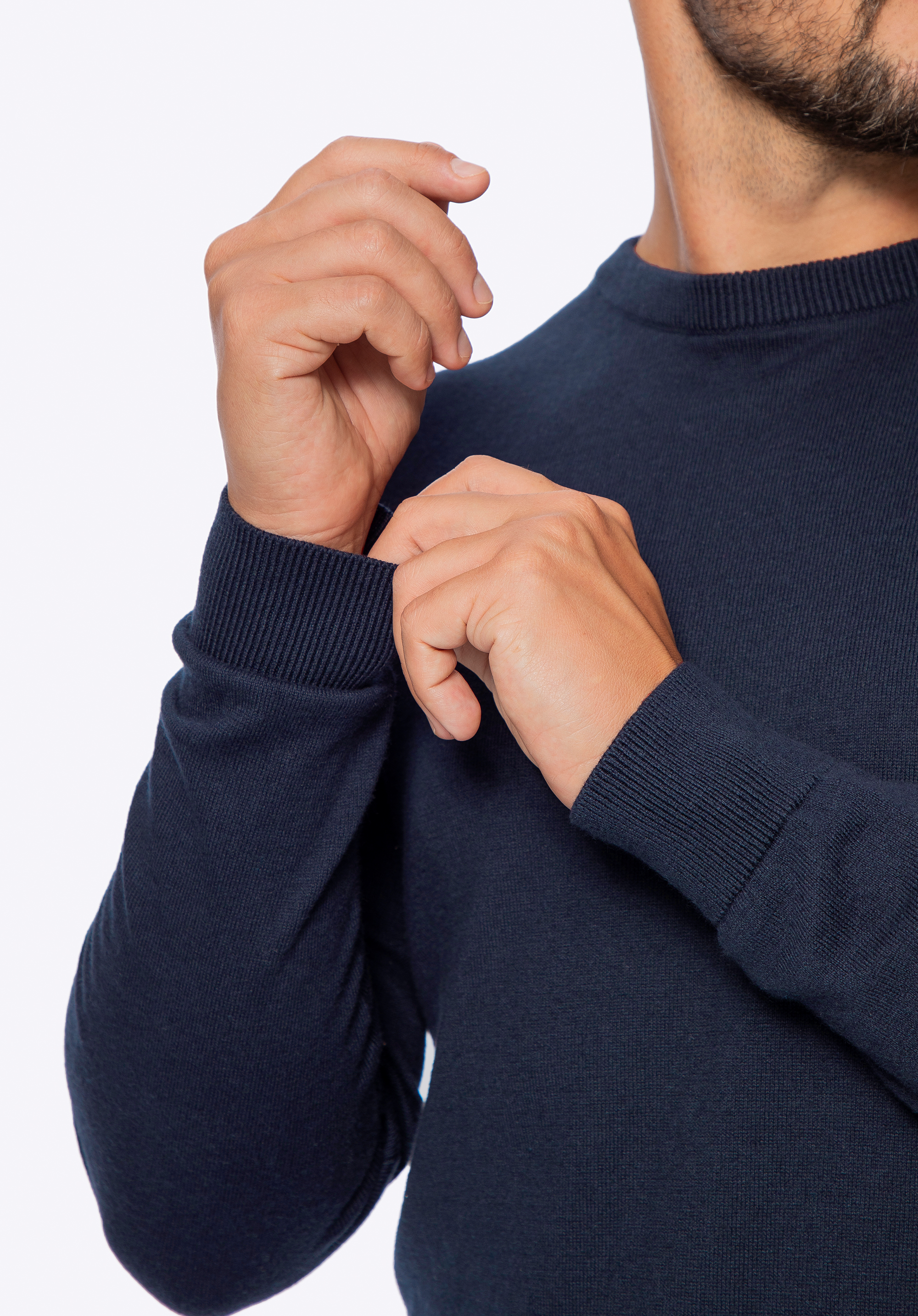 Чоловічий светр з бавовни з додаванням кашеміру темно-синій