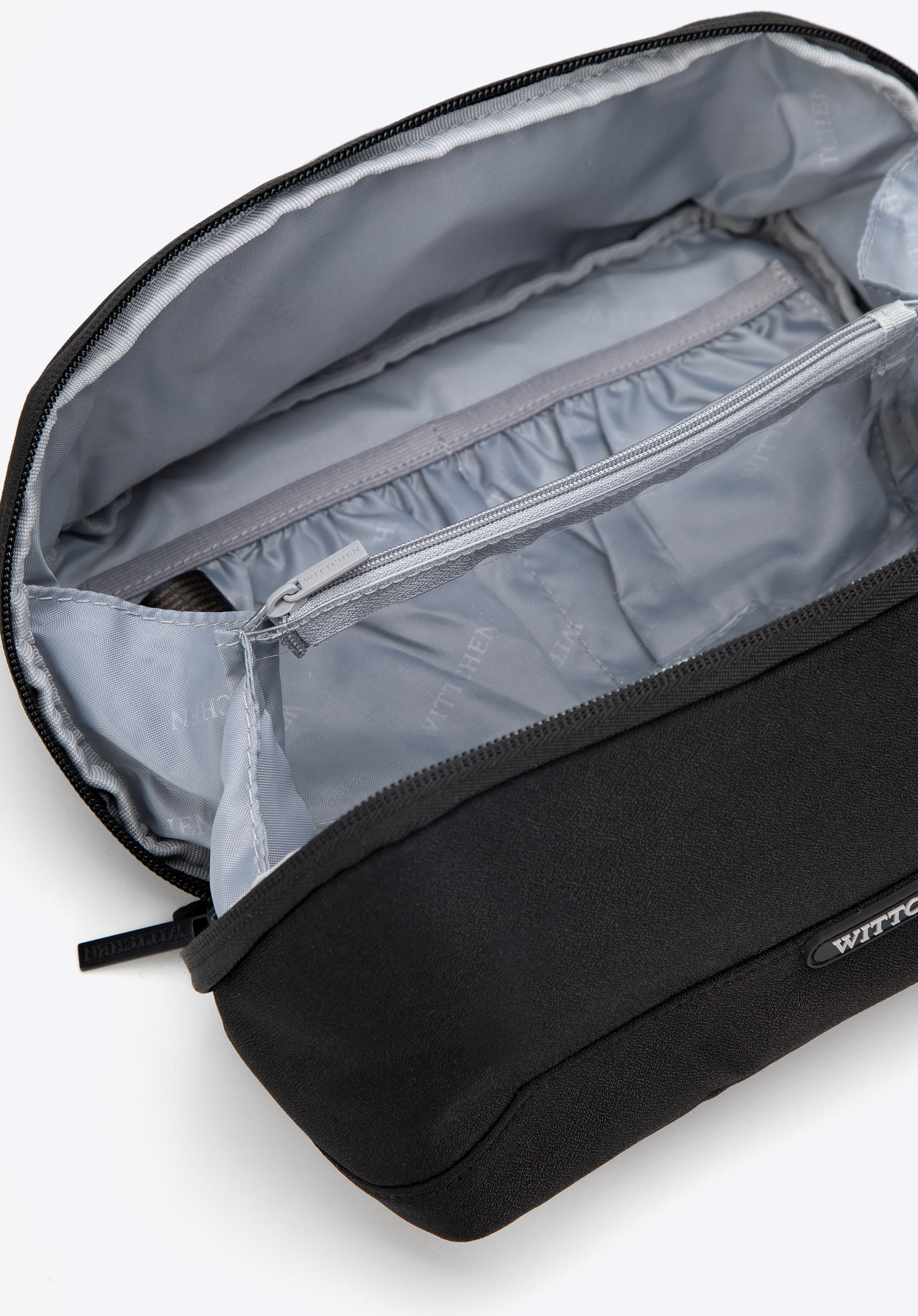 Відкрийте для себе функціональність і елегантність в одному з нашою дорожньою косметичкою з двома відділеннями. Виготовлена з поліестеру, що забезпечує довговічність і стійкість до щоденного зносу. Всередині є два відділення, розділені перегородкою з ПВХ на блискавці, що забезпечує надійне та зручне зберігання всіх необхідних речей.