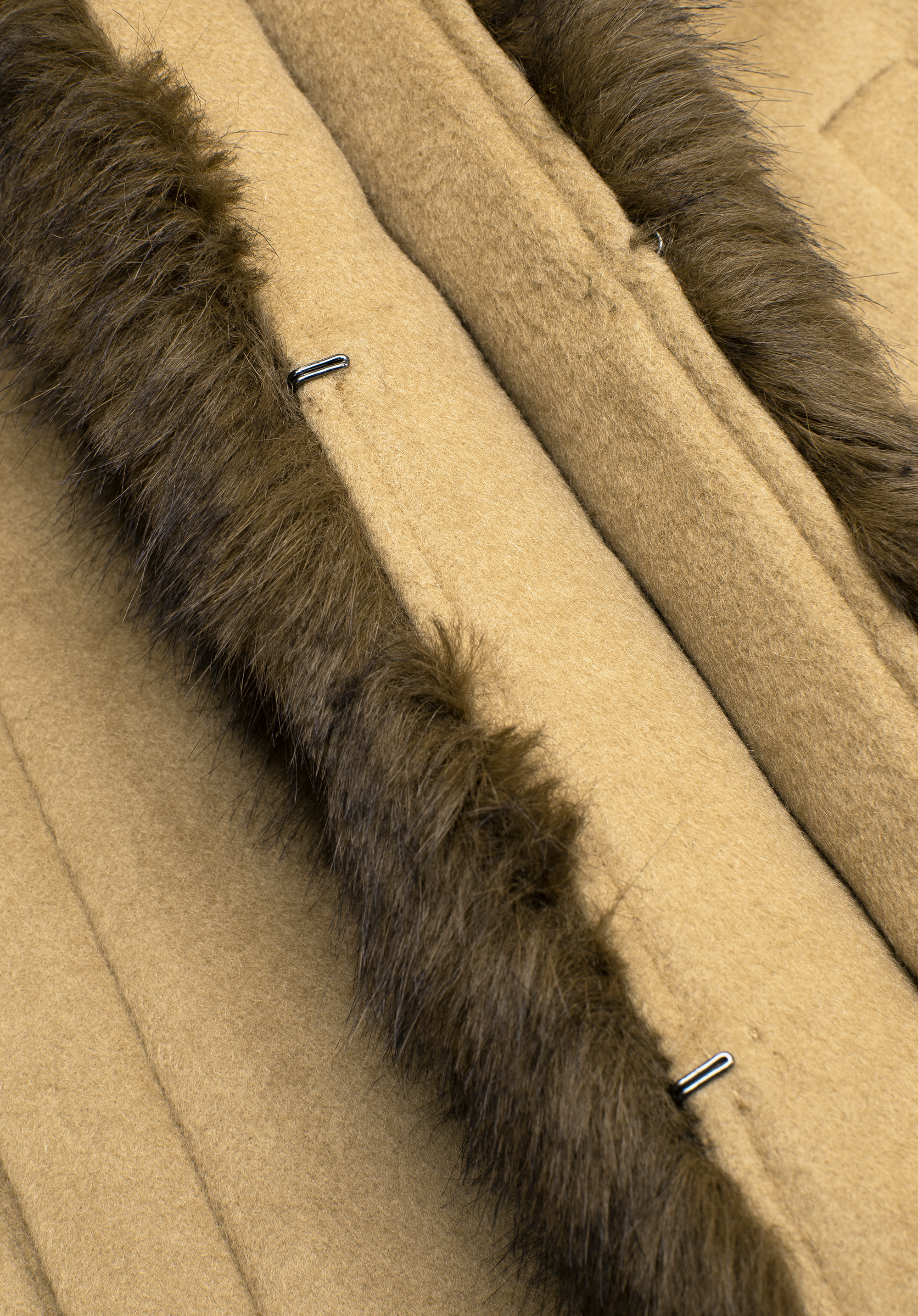 - Склад: Зовнішня тканина: 50% вовна, 50% поліестер; Підкладка: 100% віскоза; Штучне хутро: 50% акрил, 50% поліестер.