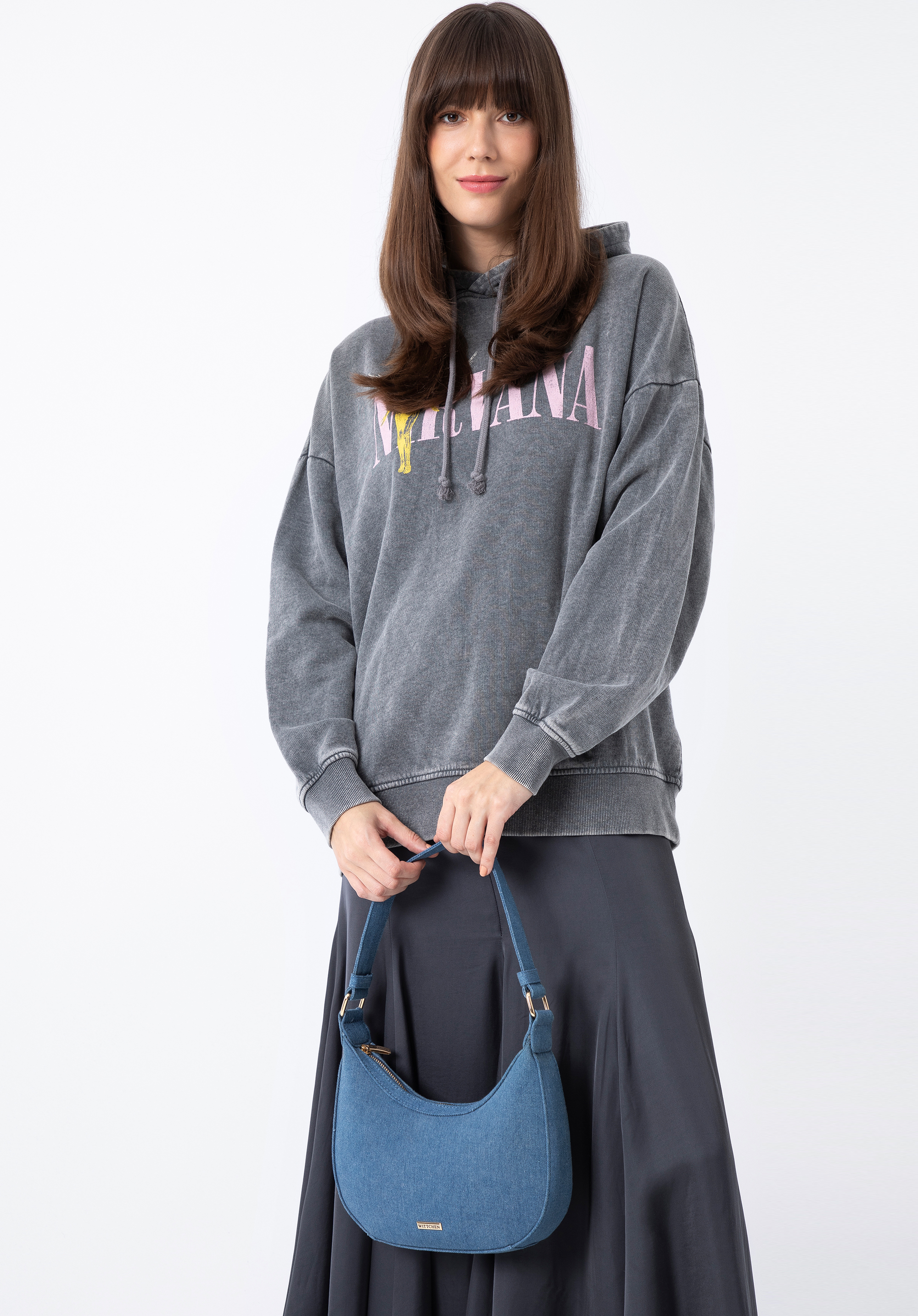 З цією сумкою ви підкорите світ! Як типова багетна сумка, вона має подовжену, злегка вигнуту форму і короткий плечовий ремінь. Виготовлена з бавовняної (джинсової) тканини з домішкою поліестеру, що надає матеріалу еластичність і довговічність. Сумка маленька, але дуже містка. Її інтер''єр дивує своєю функціональністю - ви знайдете дві практичні кишені для дрібниць і містке основне відділення. Джинсова сумка-багет, як ніяка інша, не тільки підтвердить вашу обізнаність з останніми тенденціями моди, але й змусить вас відчути себе справжнім законодавцем моди.