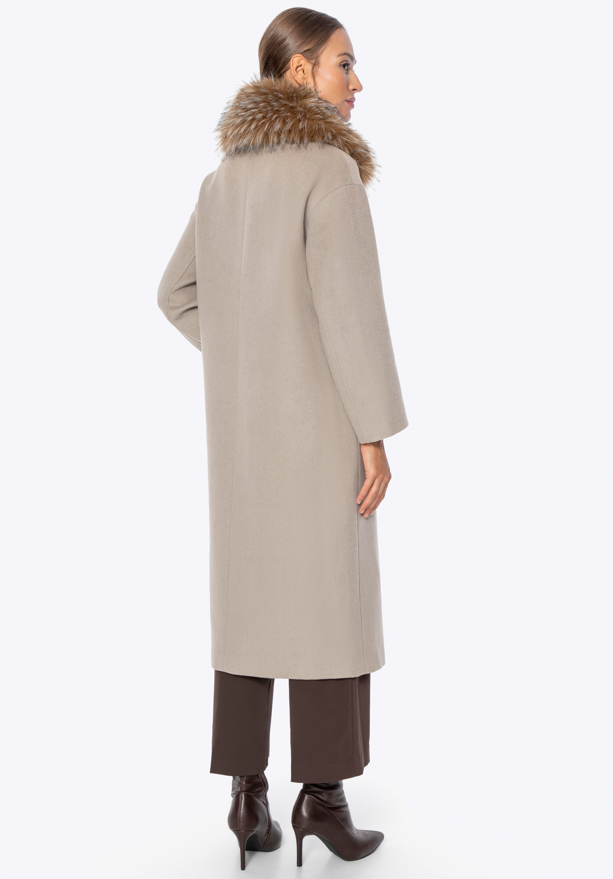 - Відкладний комір із відстібним хутром: Стильна гнучкість — адаптуйте пальто до погоди та власного стилю.