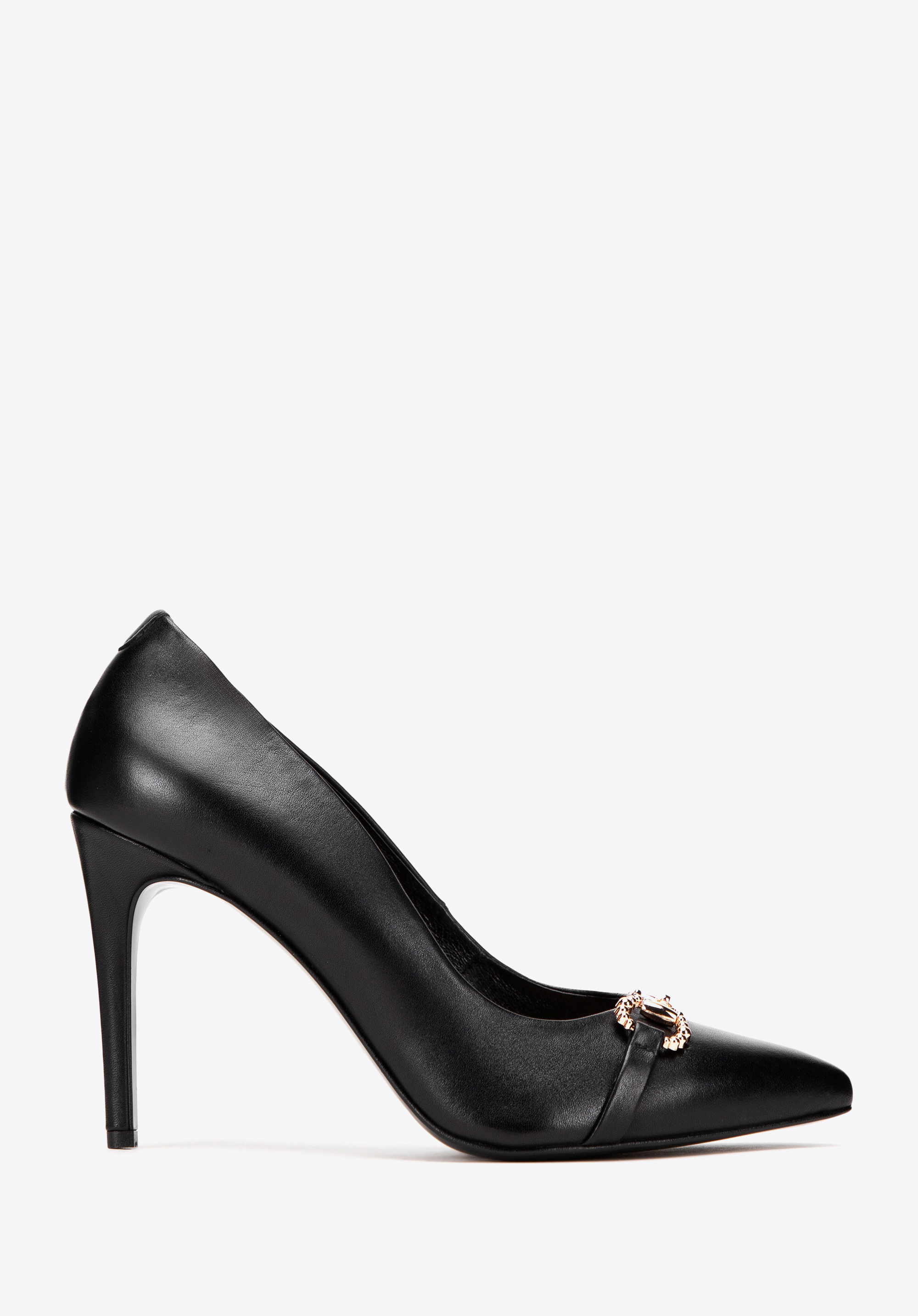 Класичні шкіряні туфлі на шпильці з декоративним ланцюжком Колір: чорний