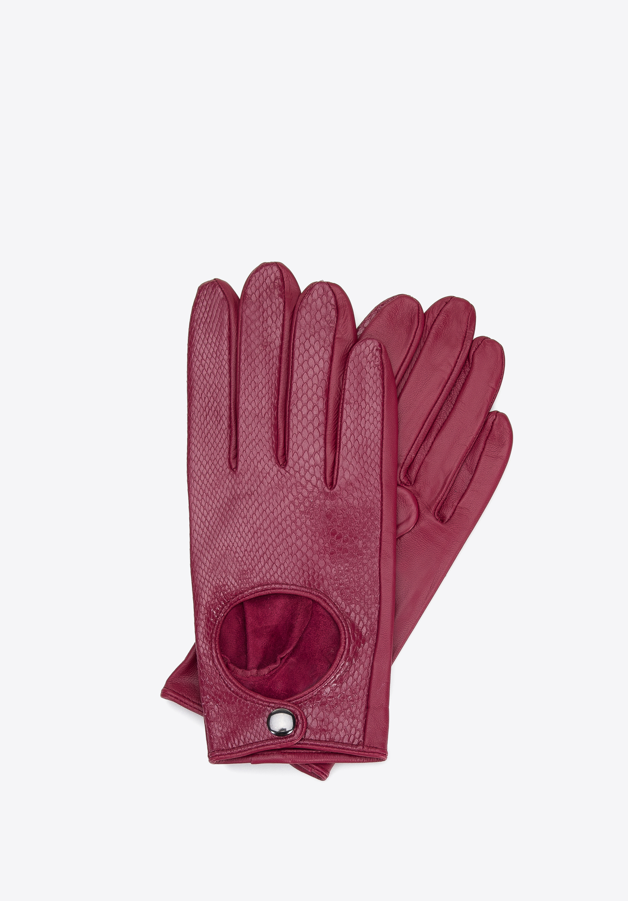 Класичні жіночі шкіряні автомобільні рукавички кармінові