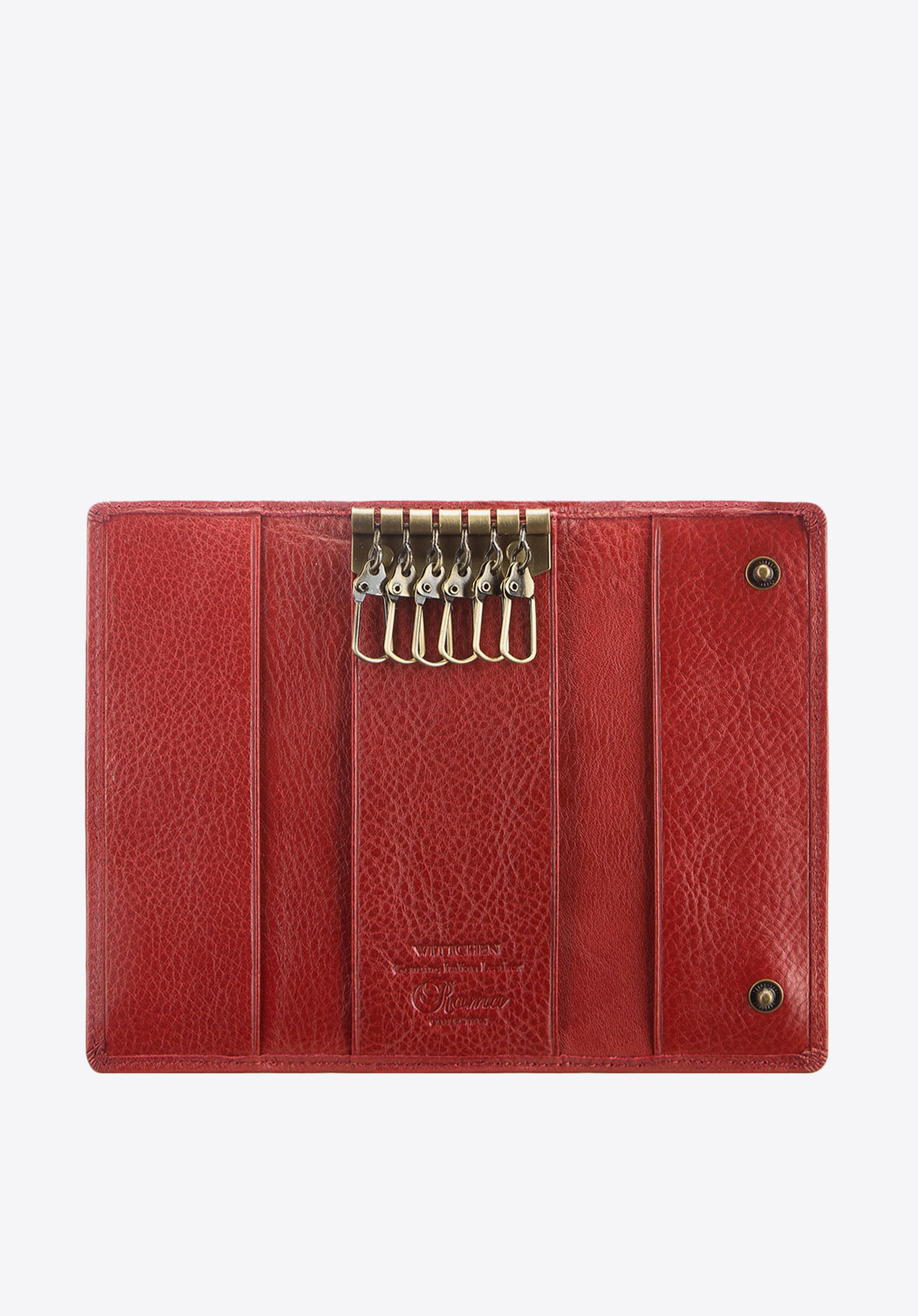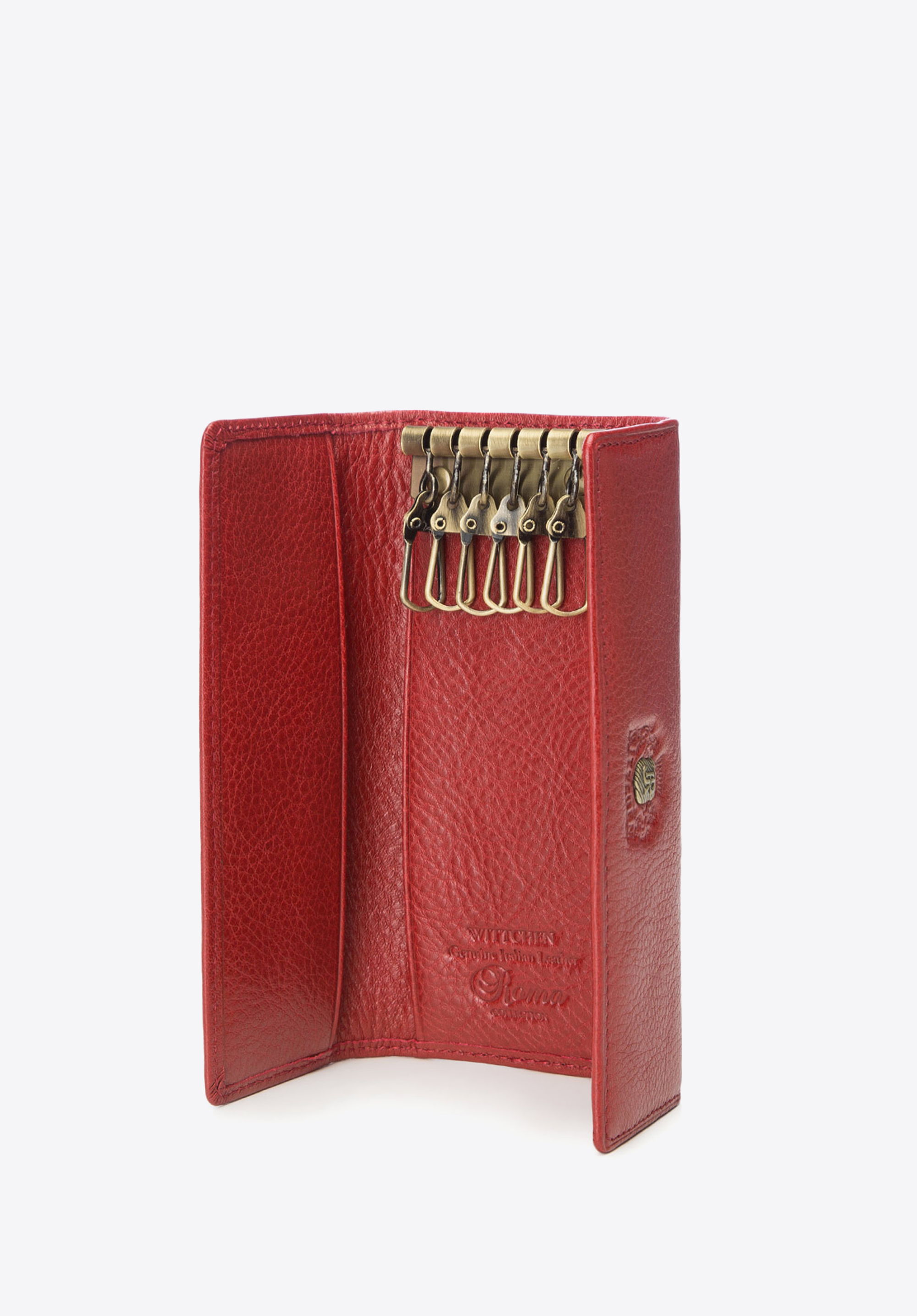 Класична ключниця з прямокутною формою і дизайном, який легко поміститься в будь-який гаманець або портфель. Модель, виготовлена вручну з чудової якості телячої шкіри, послужить роки своєю надійністю. Ключниця прикрашена строчкою і золотими елементами, включаючи логотип з гербом WITTCHEN. Модель доступна в двох кольорах: чорному і червоному.