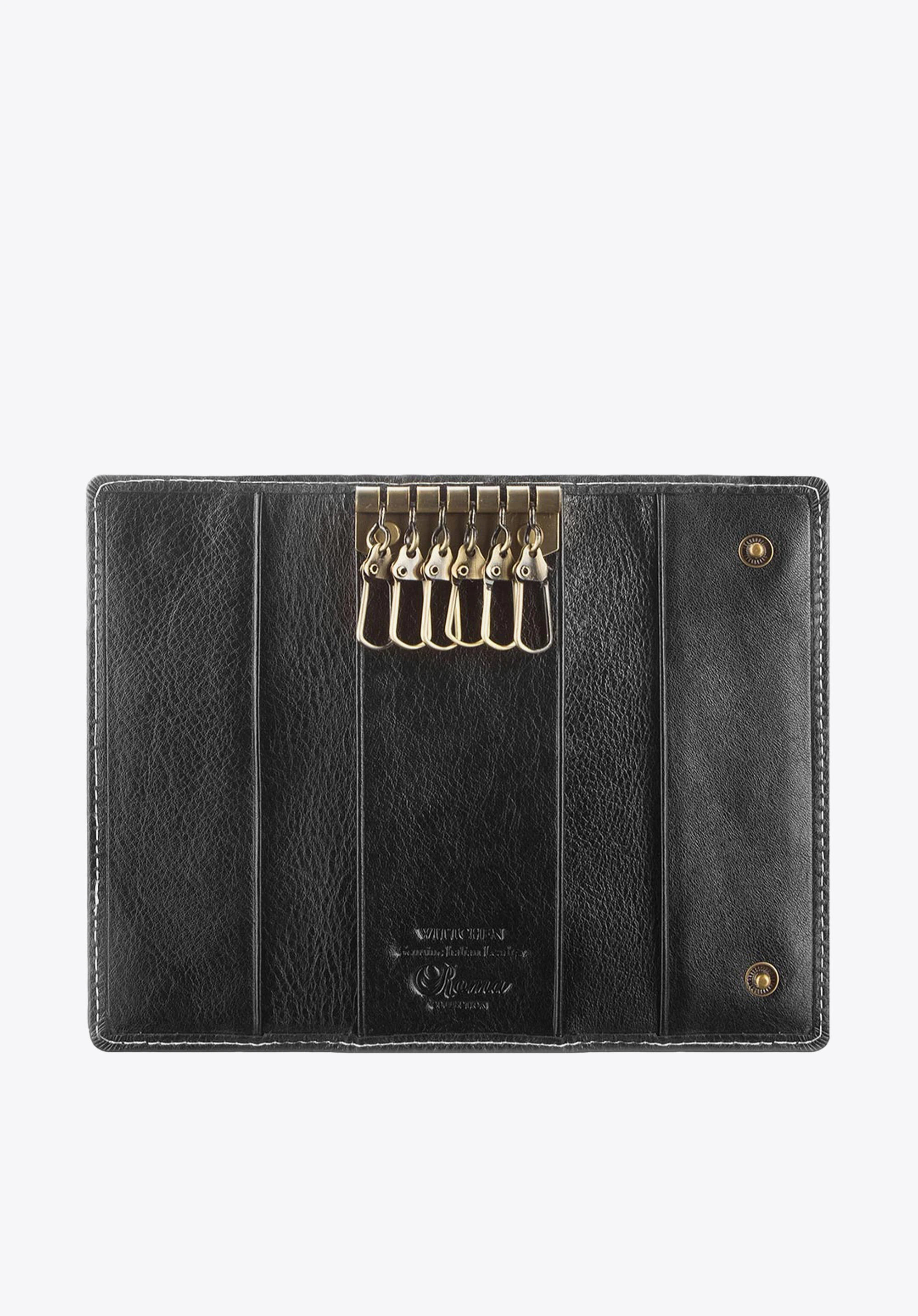 Класична ключниця з прямокутною формою і дизайном, який легко поміститься в будь-який гаманець або портфель. Модель, виготовлена вручну з чудової якості телячої шкіри, послужить роки своєю надійністю. Ключниця прикрашена строчкою і золотими елементами, включаючи логотип з гербом WITTCHEN. Модель доступна в двох кольорах: чорному і червоному.