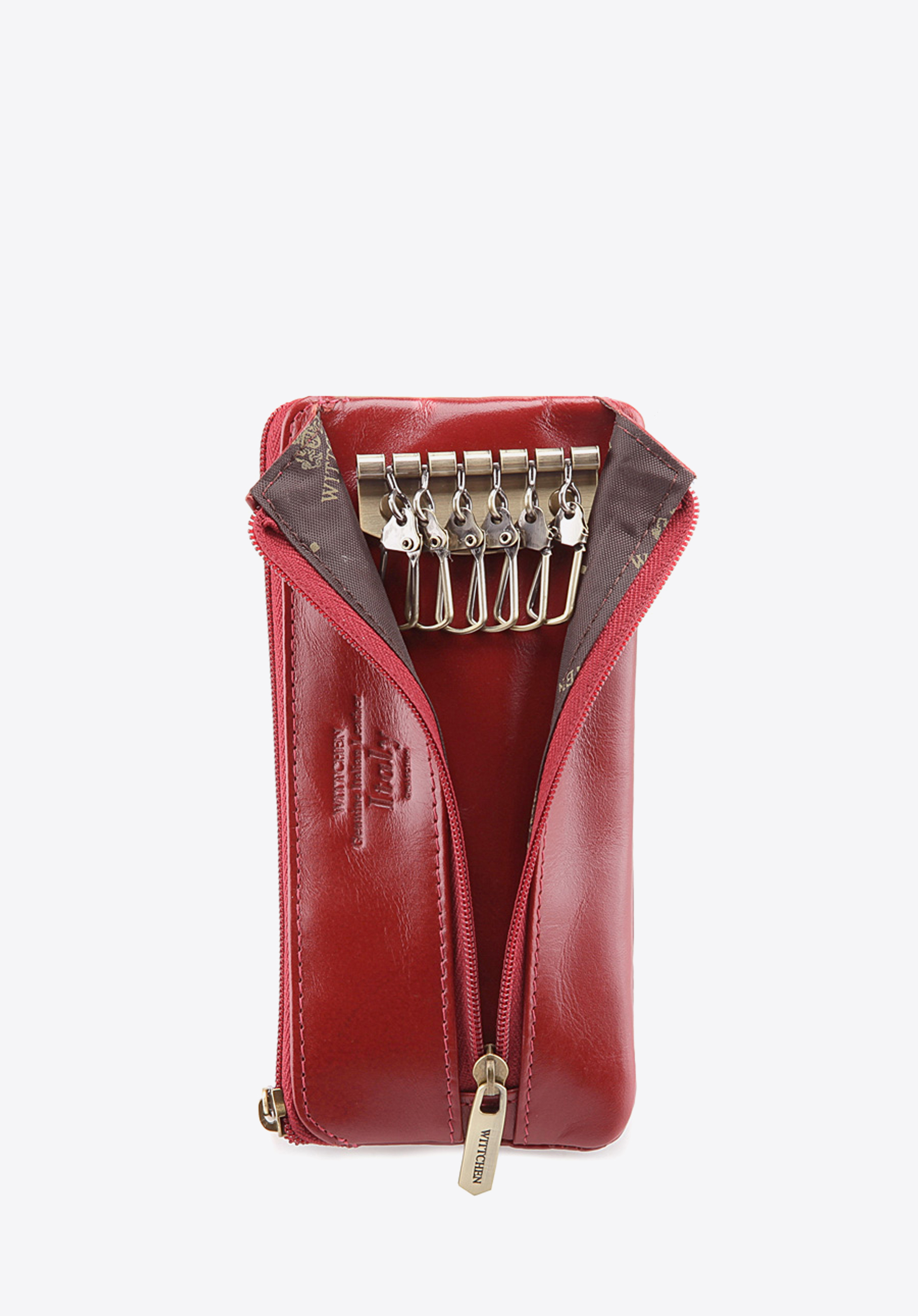 Зручна і містка шкіряна ключниця, також вміщує екземпляри великих розмірів. Практична застібка-блискавка і карабіни, розташовані всередині, підвищують зручність використання.
