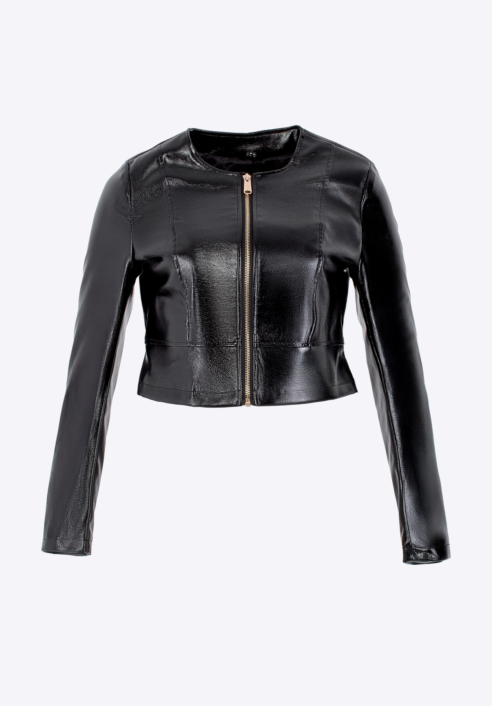 - Глянцевий матеріал екошкіри: Блиск додає куртці розкішного вигляду, роблячи її ідеальним варіантом як для денного, так і для вечірнього вбрання.
