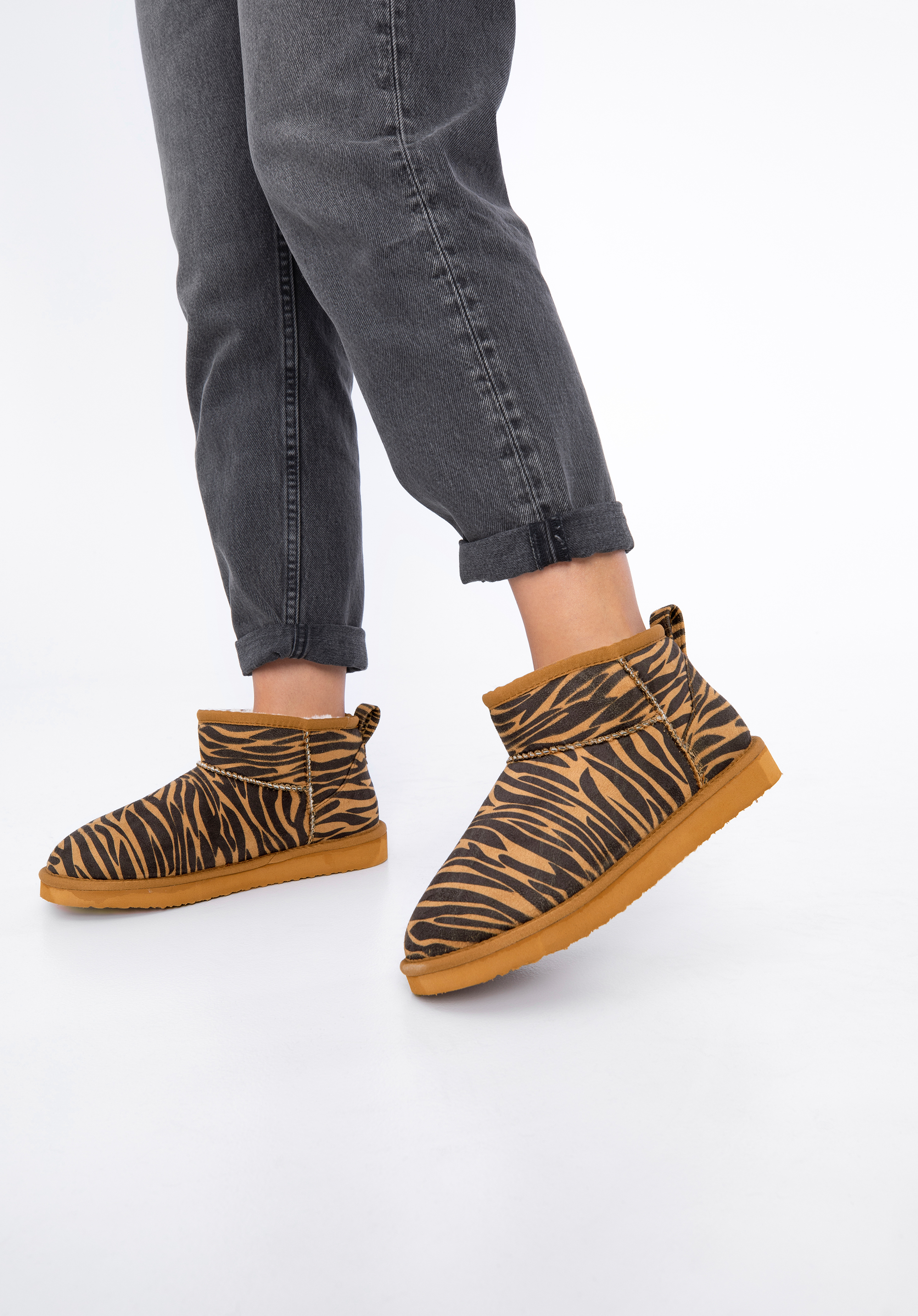 У цих модних чоботах ви будете привертати увагу кожен день. Вони виготовлені з матеріалу, схожого на замшу, який дуже приємний на дотик. Внутрішня підкладка зі штучного хутра м''яко обіймає вашу ніжку. Ви можете носити їх з приталеними брюками і светром великого розміру або змінити характер улюбленої мінісукні. Короткі жіночі чоботи з екошкіри стильно доповнять спортивну стьобану куртку-пуховик або елегантне пальто, зав’язане на талії – вони урізноманітнюють будь-який ваш стиль, тому варто мати їх у своєму гардеробі на холодну пору року.