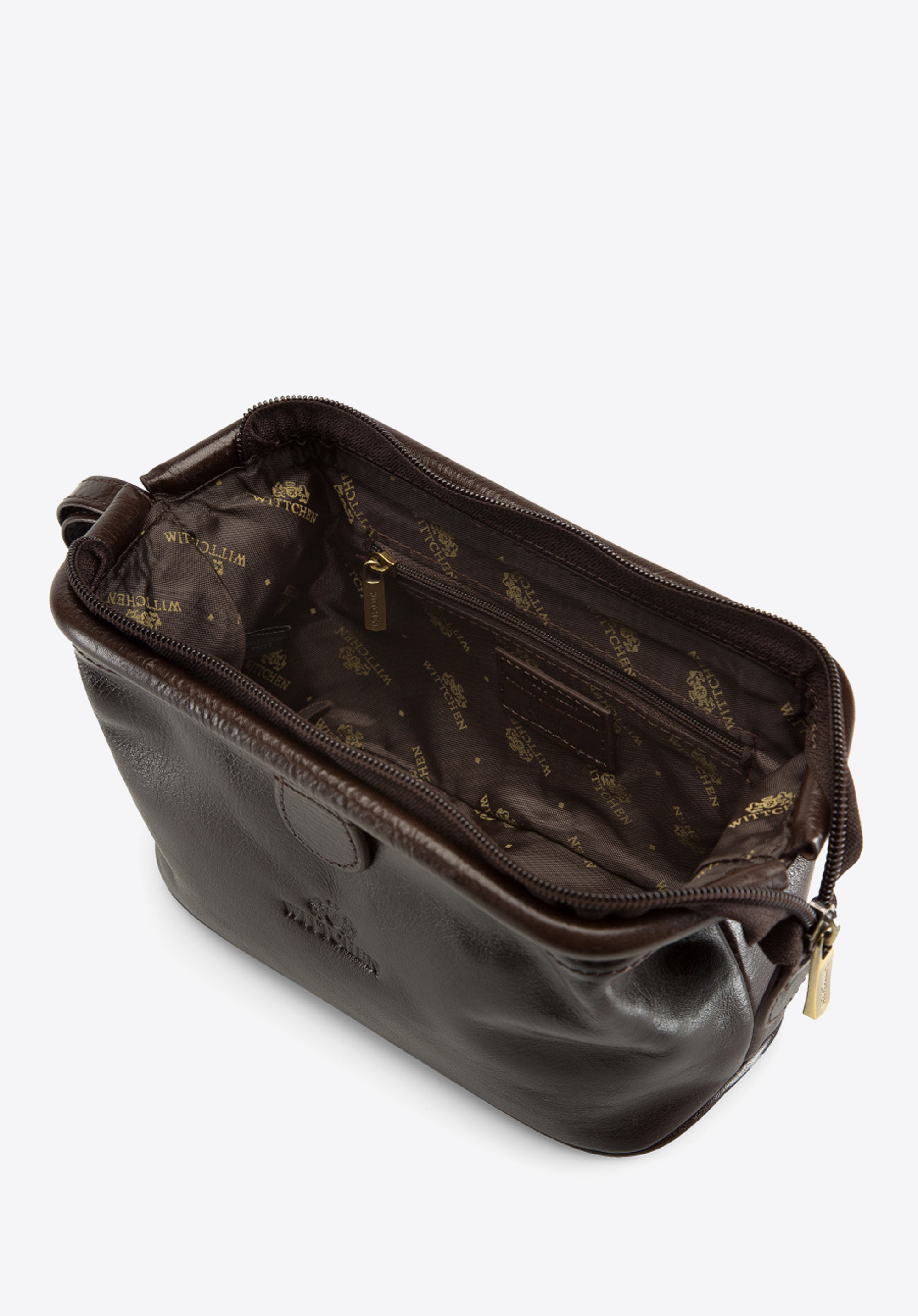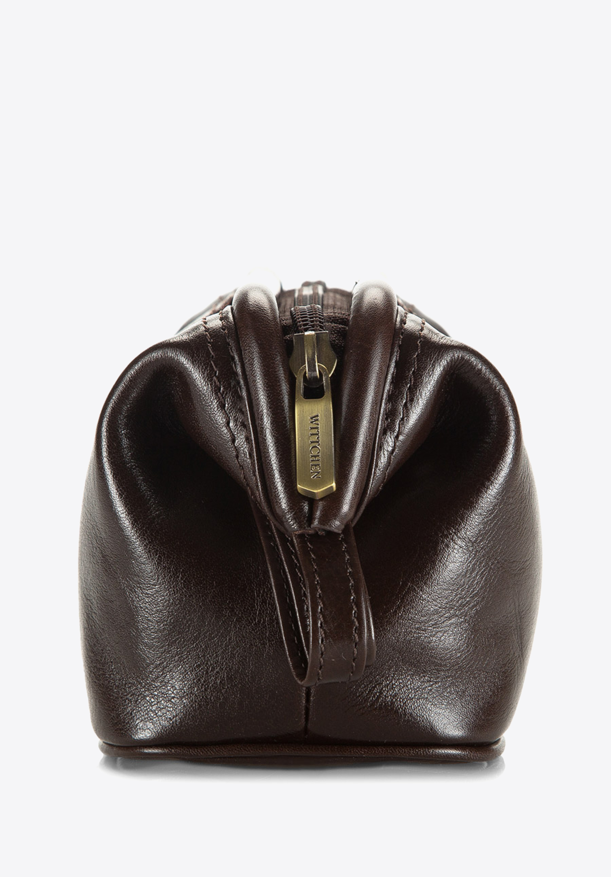 Шкіряна косметичка на блискавці, виготовлена з м''якої телячої шкіри, є елегантним і міцним аксесуаром. Класична містка косметичка відмінно підійде для подорожей.