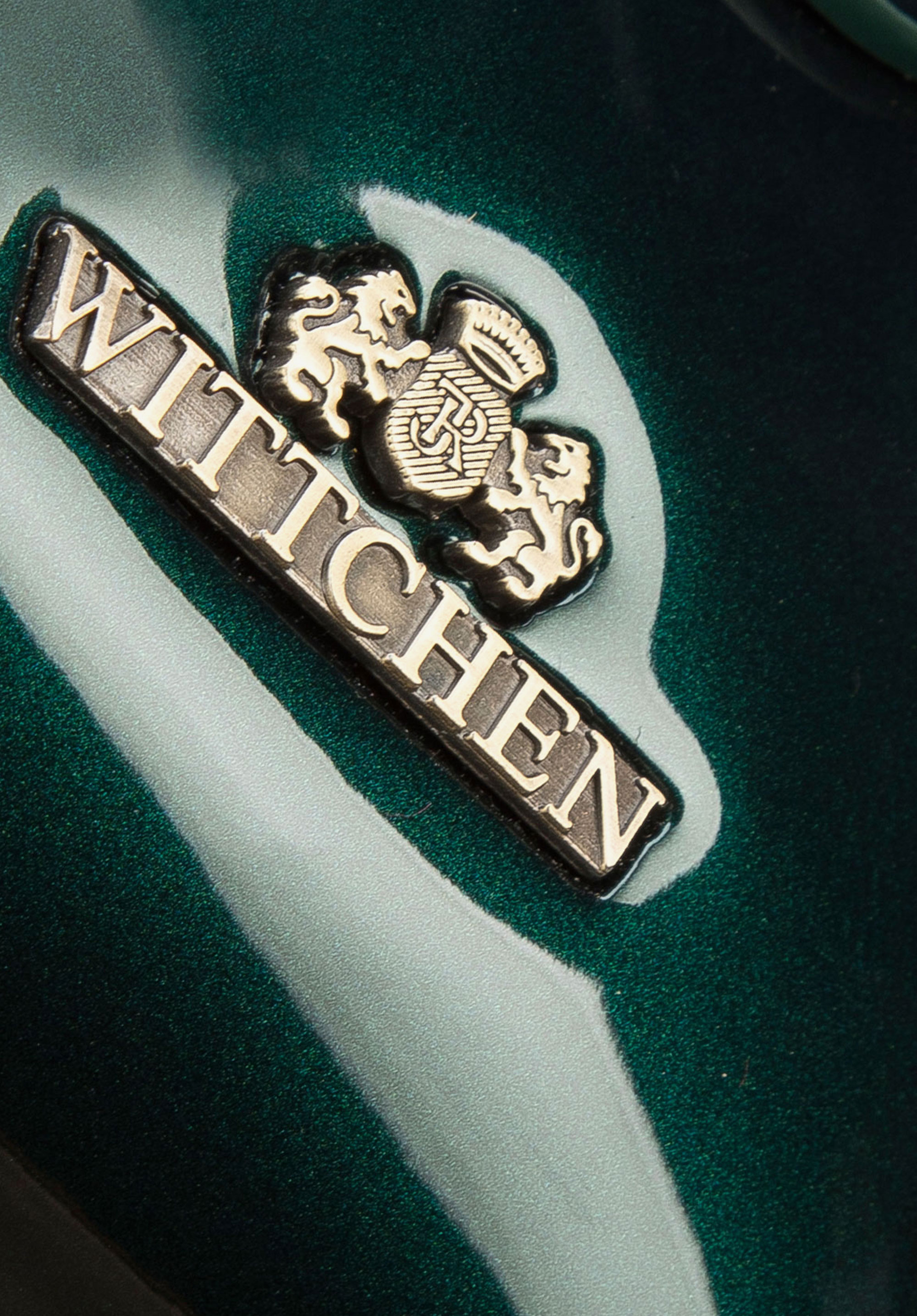 металевий логотип з гербом WITTCHEN кольору старого золота.