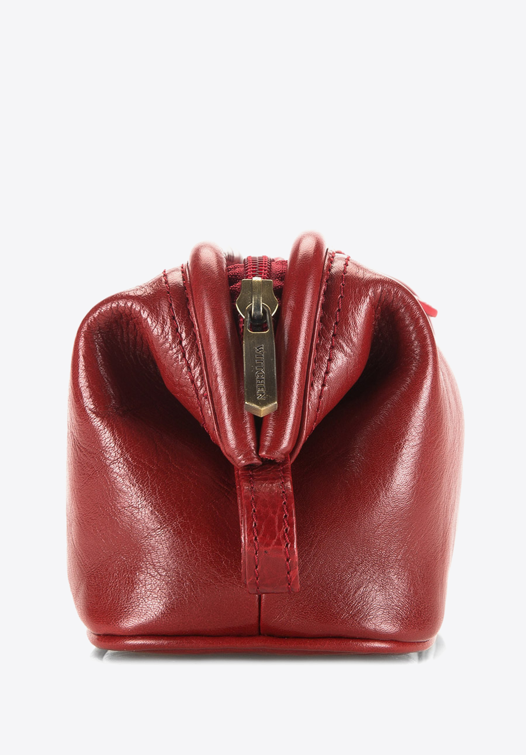 Шкіряна косметичка на блискавці, виготовлена з м''якої телячої шкіри, є елегантним і міцним аксесуаром. Класична містка косметичка відмінно підійде для подорожей.