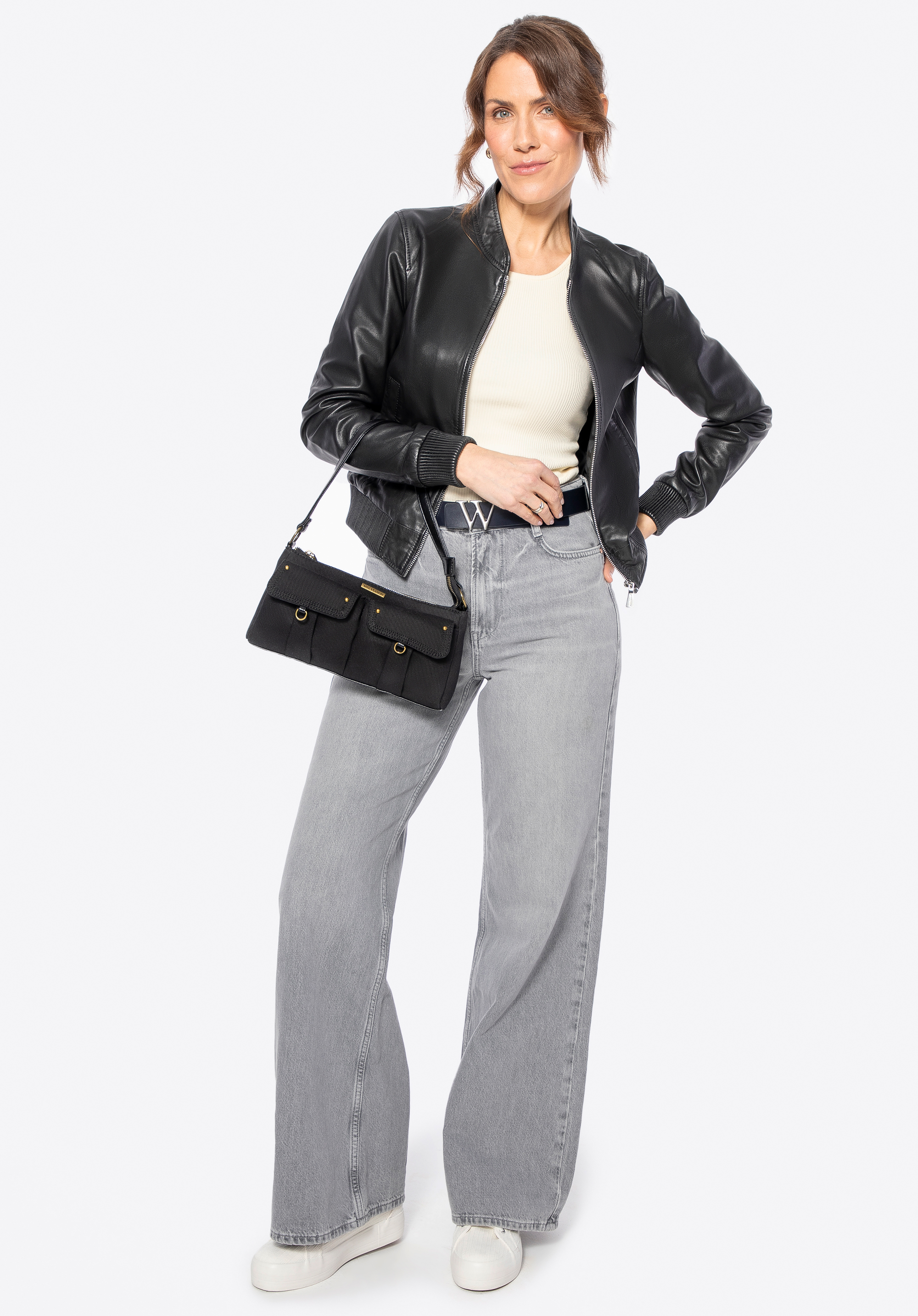 Наша порада: доповніть свій образ класичною чорною сумкою через плече або шкіряною сумкою-шоппером з металевими деталями, які ідеально підкреслюють характер цієї куртки. У поєднанні з ботильйонами на підборах або елегантними кросівками ви створите незабутній лук. Куртка чудово поєднується з улюбленими джинсами або спідницею міді та футболкою – створіть модний повсякденний ансамбль!