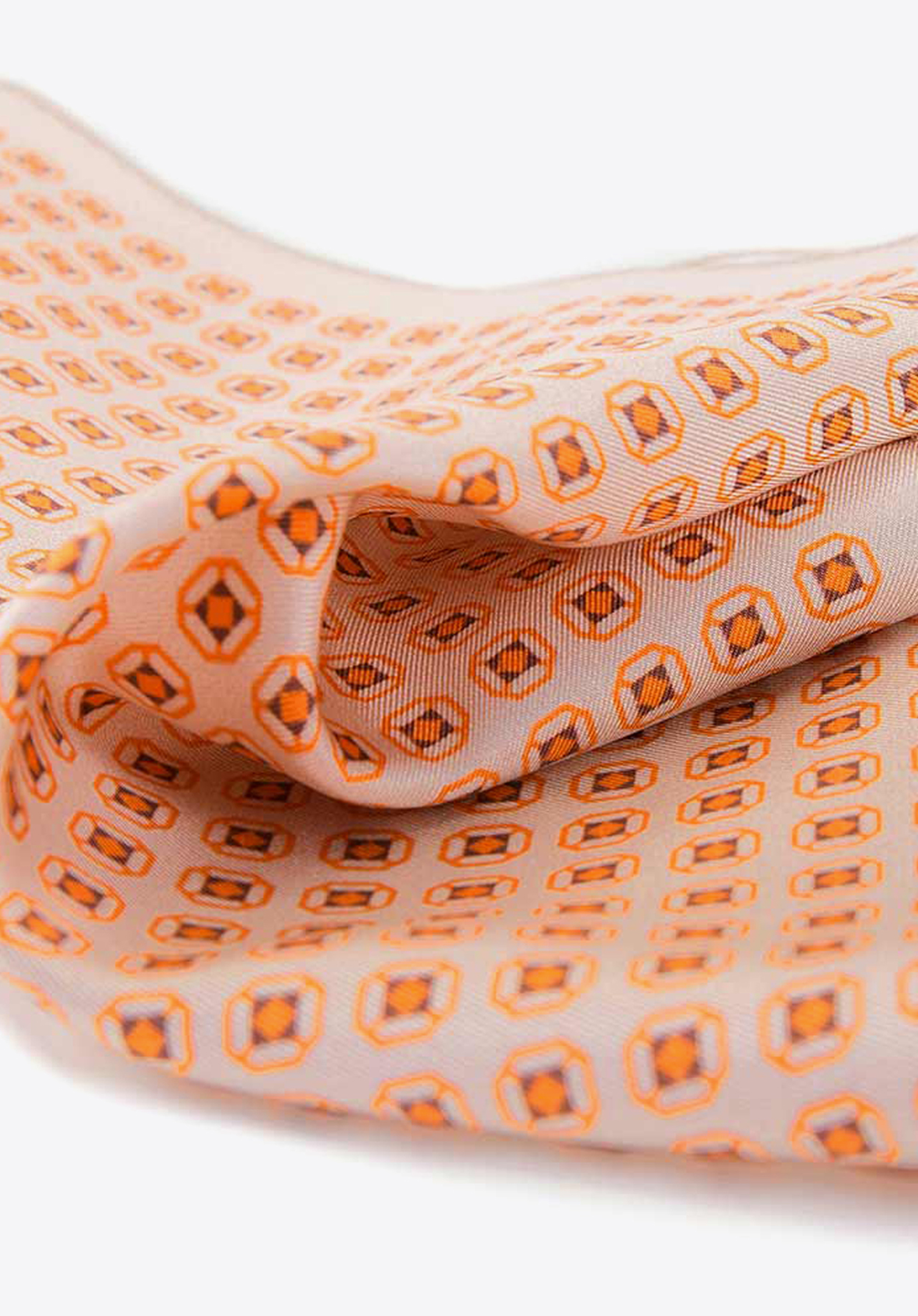 Кишенькова хустка з шовку з малюнком велика бежево-помаранчева