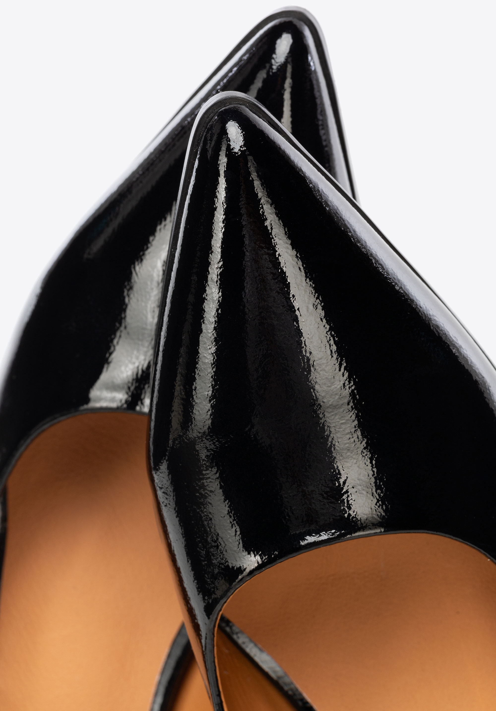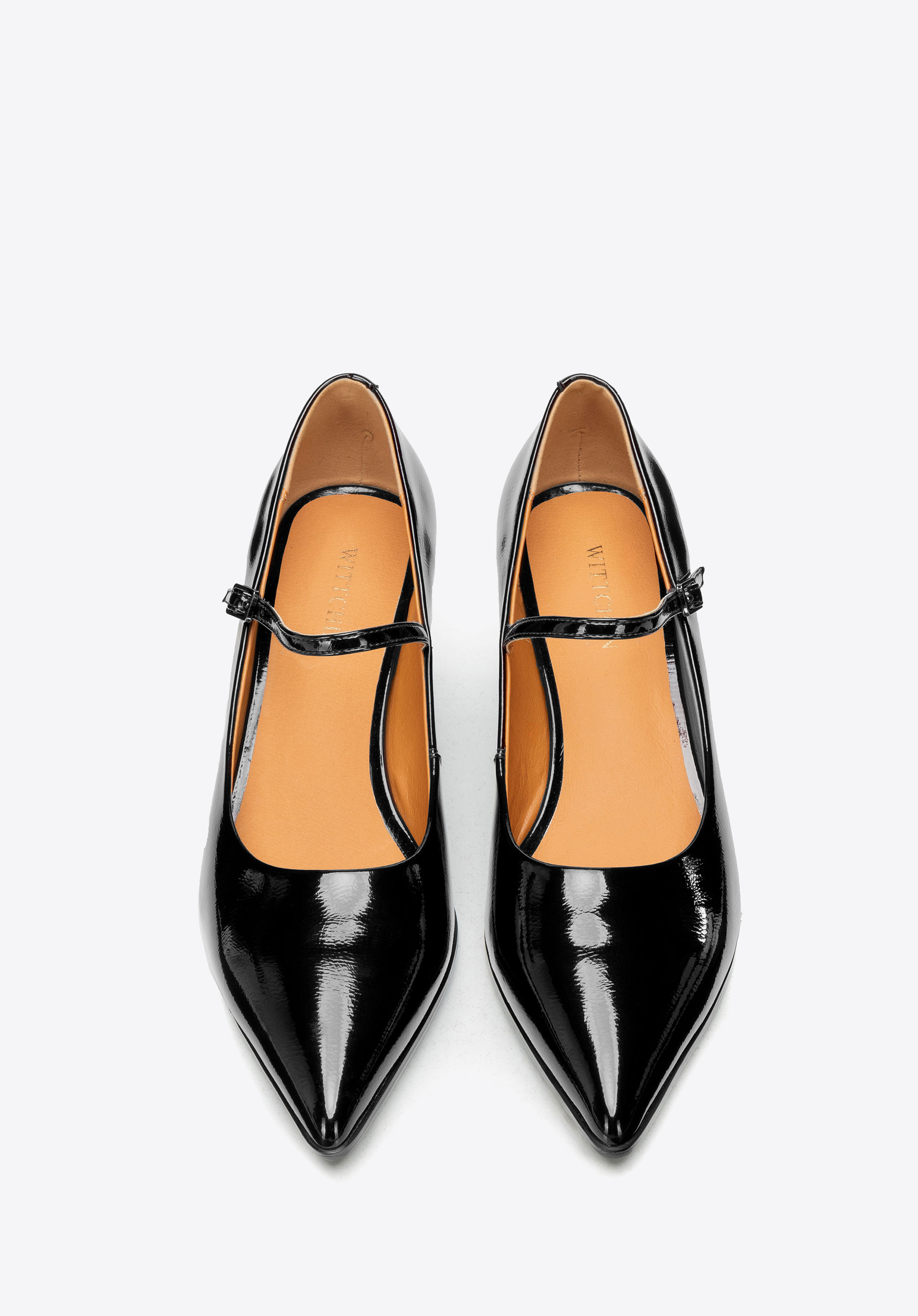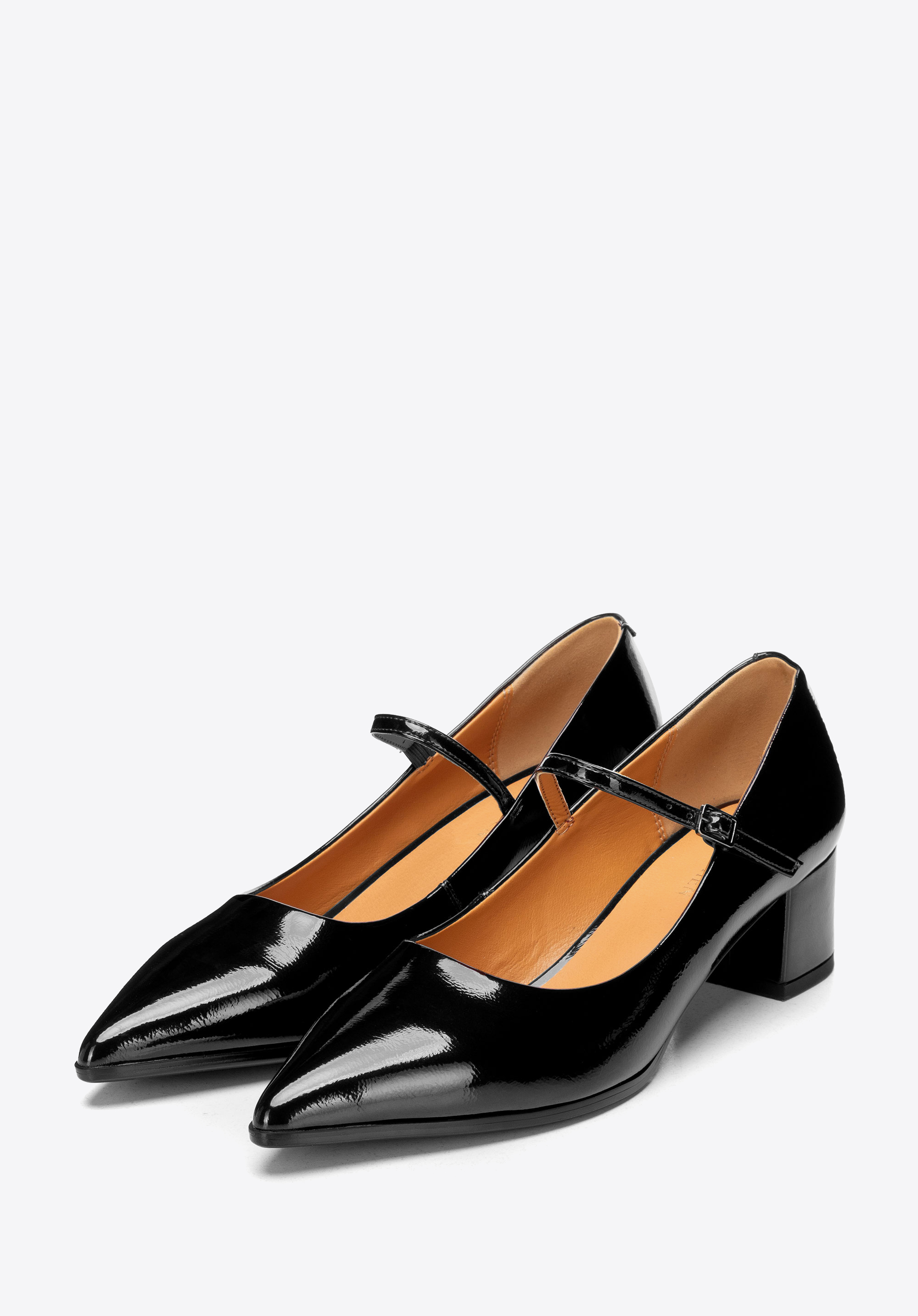 Відкрийте для себе туфлі, які поєднують класичну елегантність із повсякденним комфортом. Виготовлені з лакованої шкіри, вони вирізняються ніжним блиском та міцністю, а низький каблук забезпечує стійкість та комфорт протягом усього дня. Загострений носок візуально видовжує стопу, додаючи легкості силуету, а ремінець спереду м’яко фіксує стопу, даруючи комфорт і впевненість у кожному кроці.