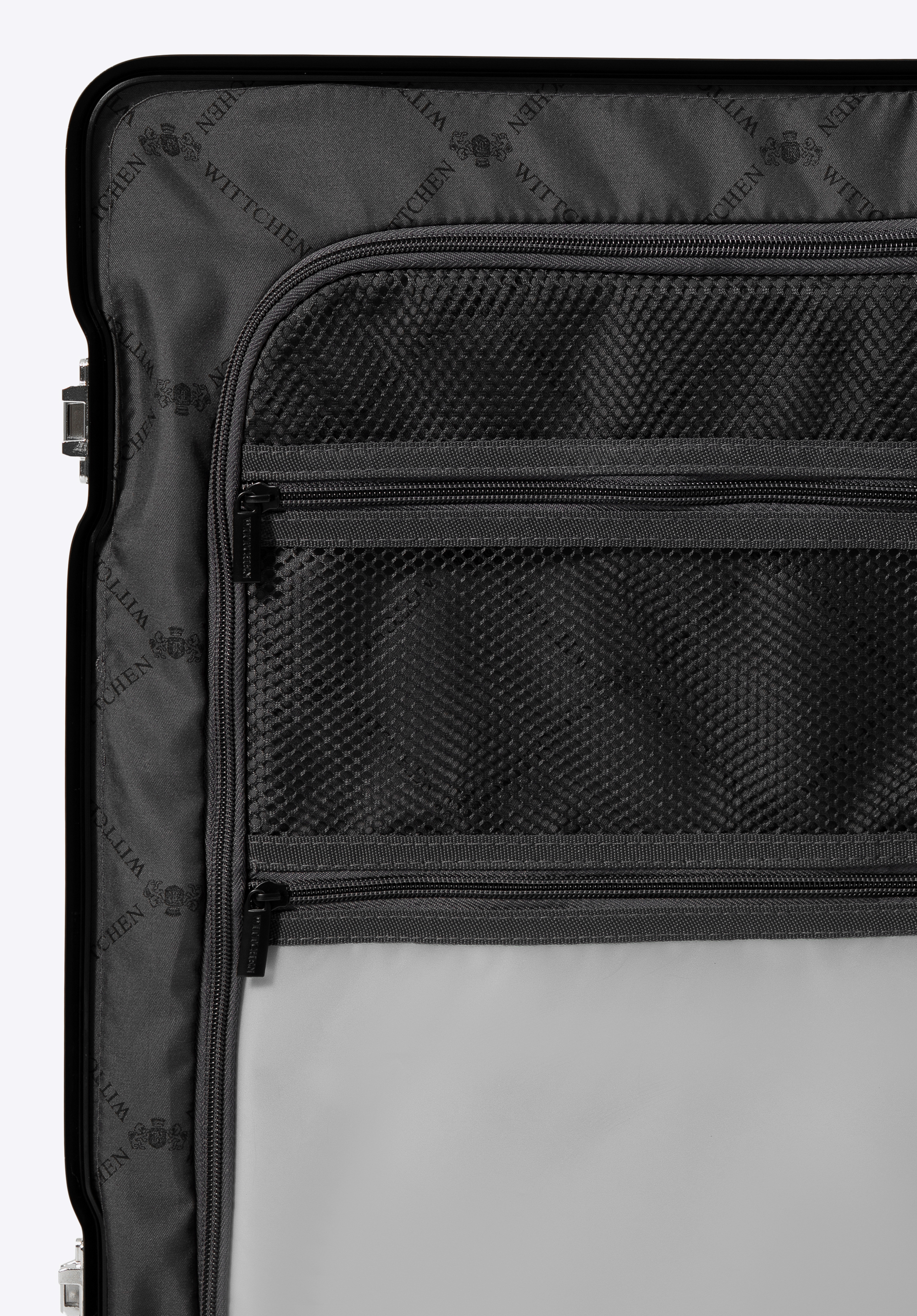 Відкрийте для себе ексклюзивну маленьку валізу WITTCHEN з колекції Prämie line, виготовлену зі 100% алюмінію. Посилена оббивка з заклепками підкреслює її унікальний дизайн, а міцна конструкція забезпечує чудовий захист багажу. Чотири подвійних колеса та алюмінієва телескопічна ручка забезпечують комфортну та стильну подорож. Виберіть валізу, яка поєднує в собі елегантність і функціональність – ідеально підходить для будь-якої подорожі.