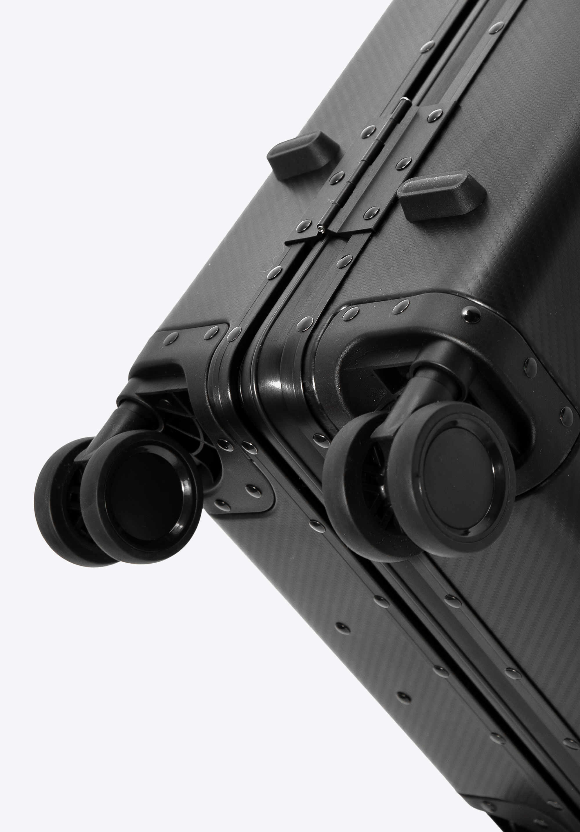 - Стійкість: чотири бічні ніжки дозволяють валізі надійно стояти на боці.