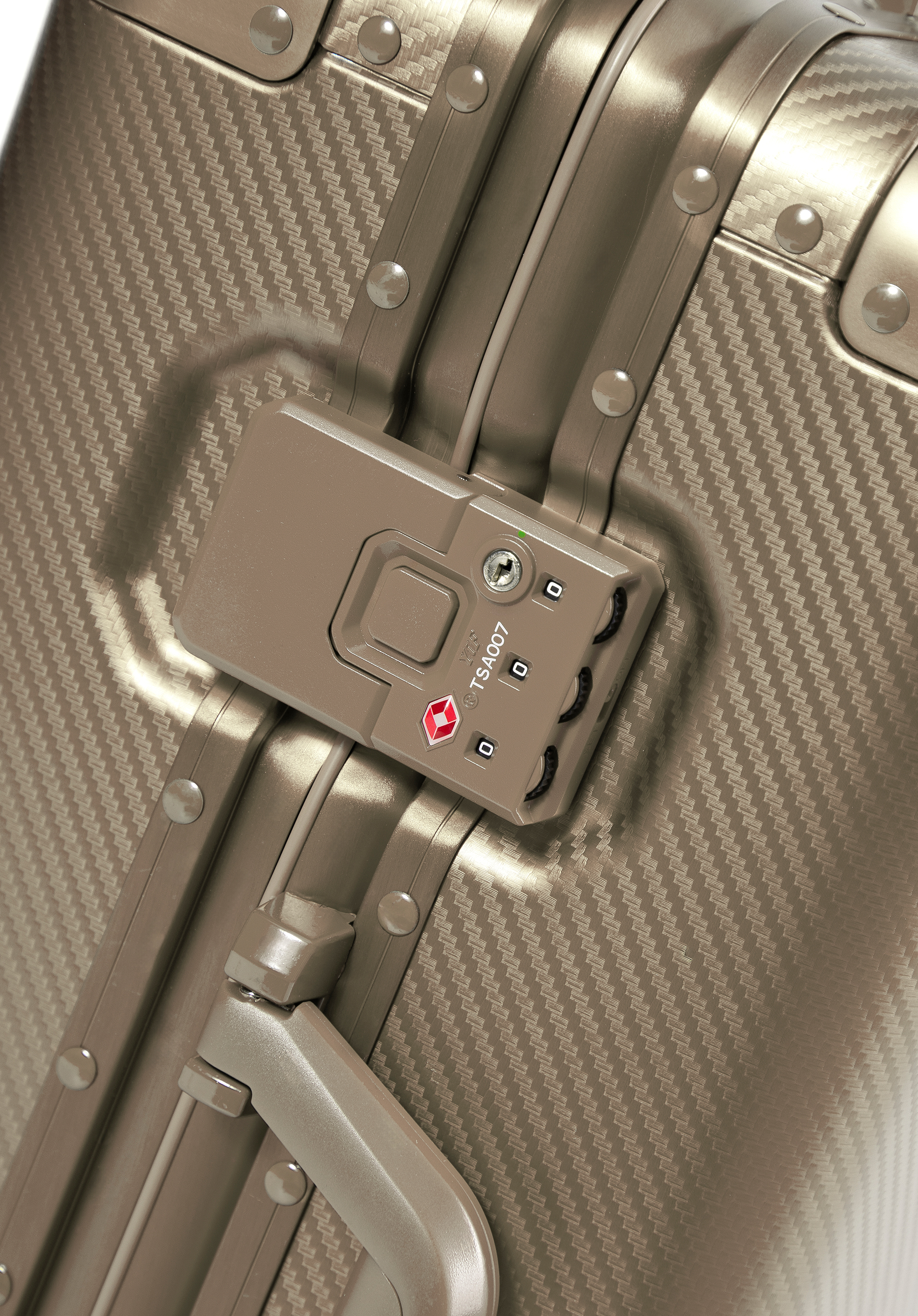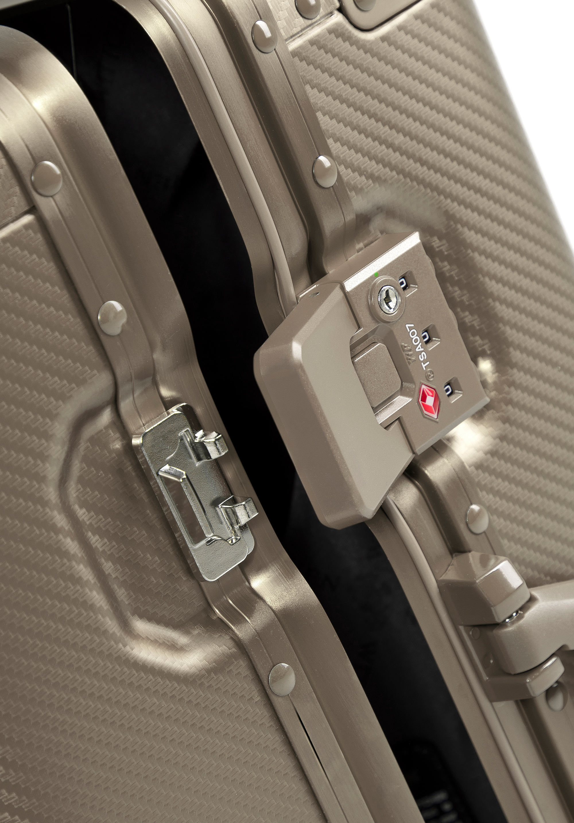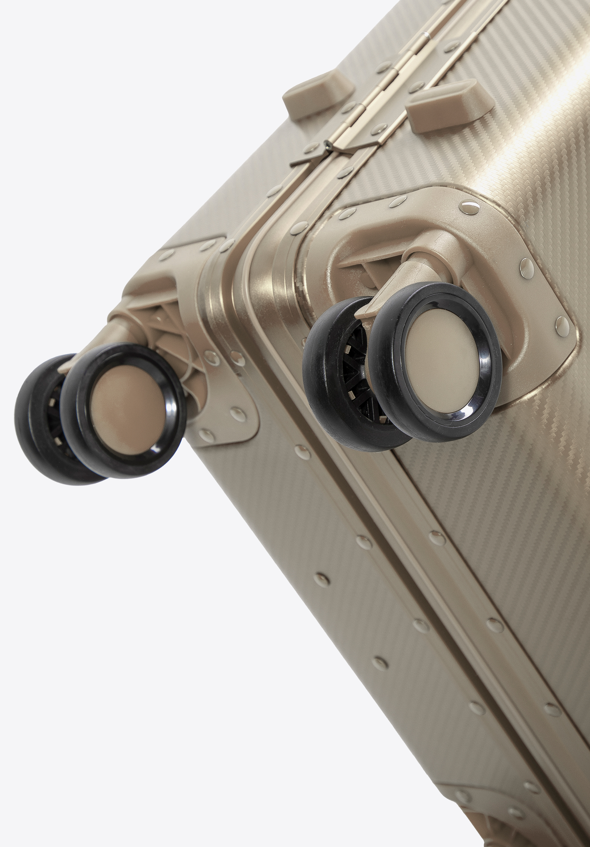 - Стійкість: чотири бічні ніжки дозволяють валізі надійно стояти на боці.