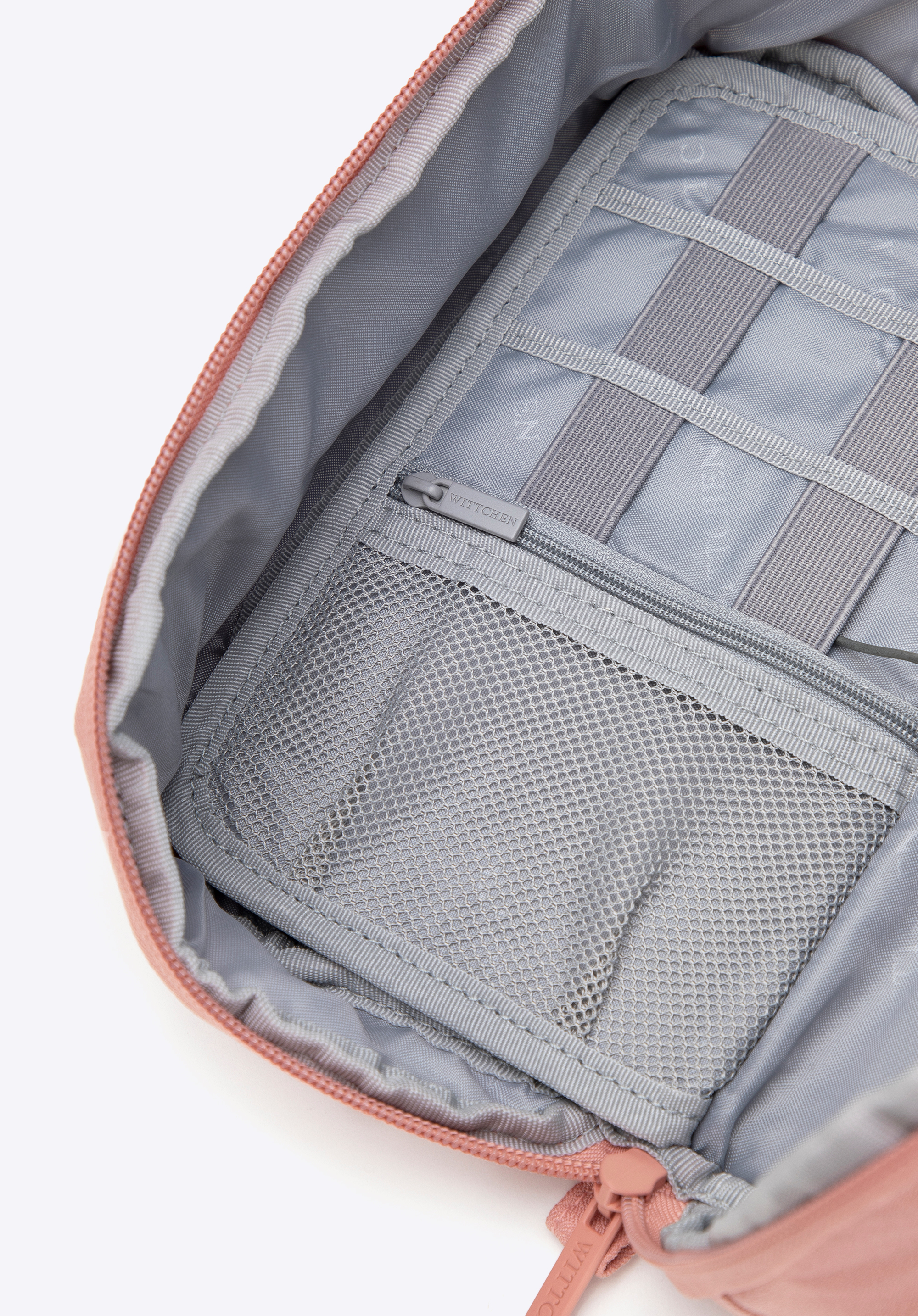 - Кишені: перша частина містить одну сітчасту кишеню на блискавці та дві додаткові відкриті кишені. Поруч з ним знаходяться шість еластичних петель, які ідеально підходять для зберігання зарядних пристроїв, кабелів або навушників.