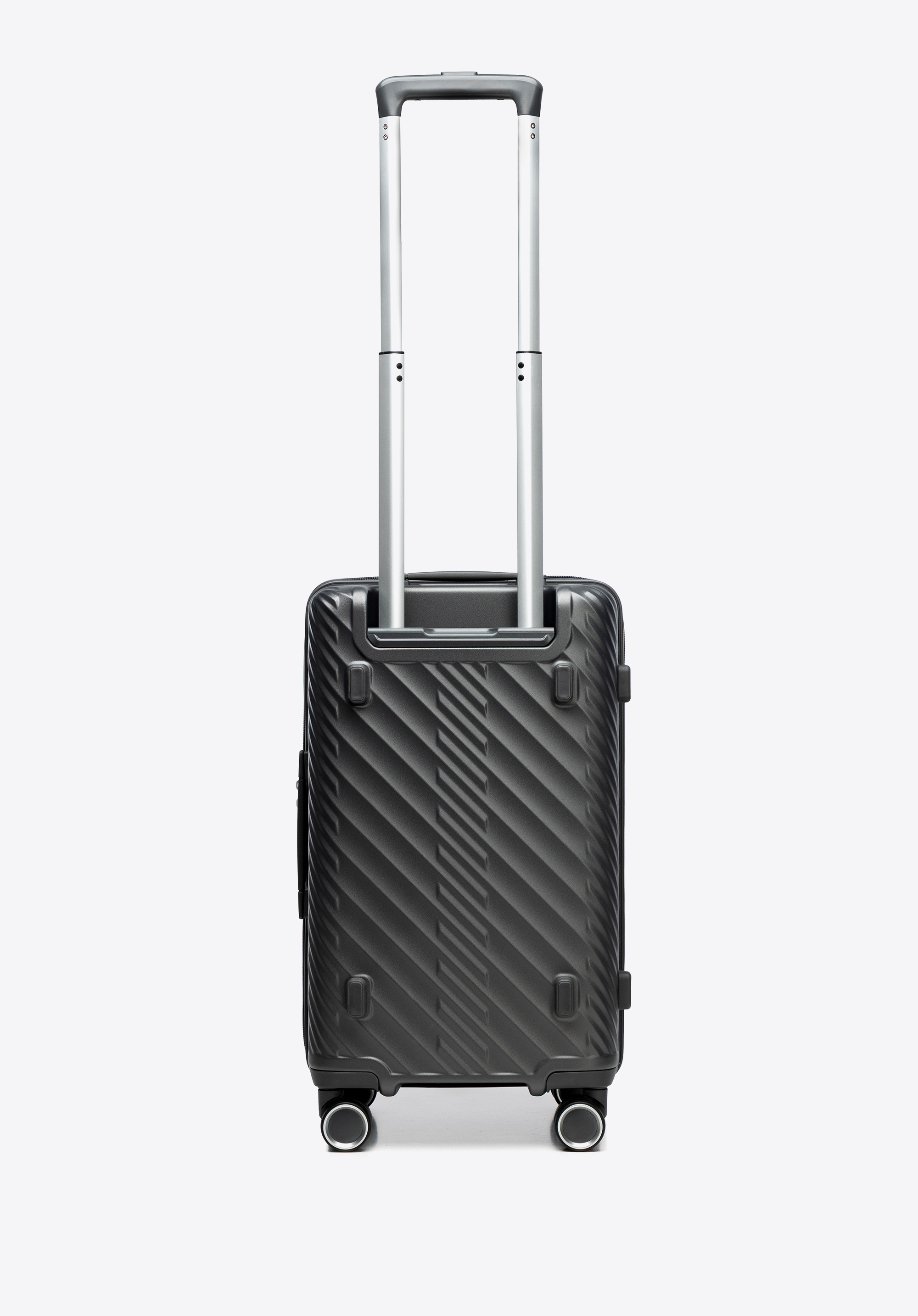 - Дизайн: Тонкий силует з геометричним візерунком надає валізі сучасного, вишуканого вигляду – подорожуйте елегантно, куди б ви не пішли.