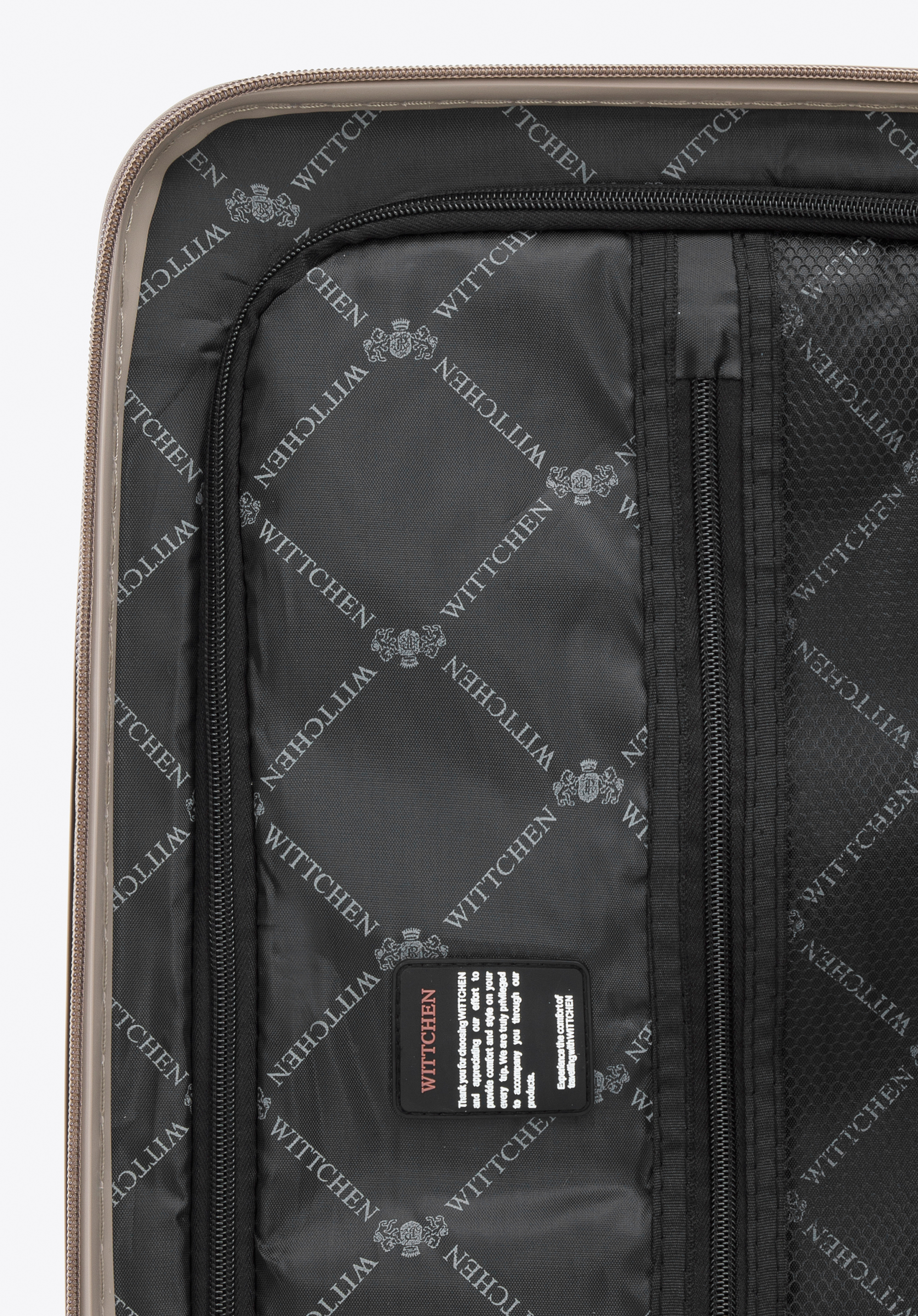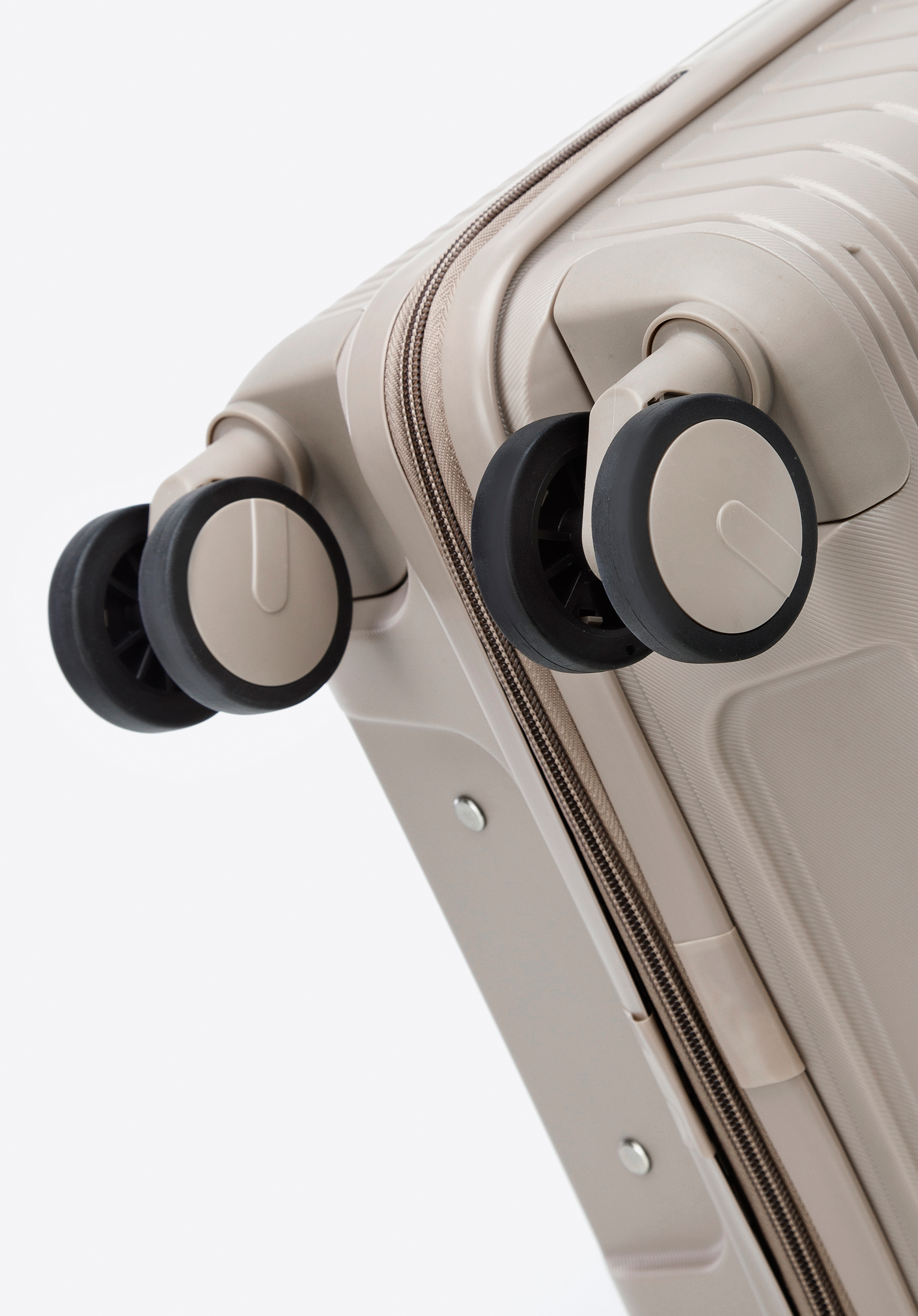 валіза оснащена чотирма подвійними поворотними колесами для зручності переміщення;