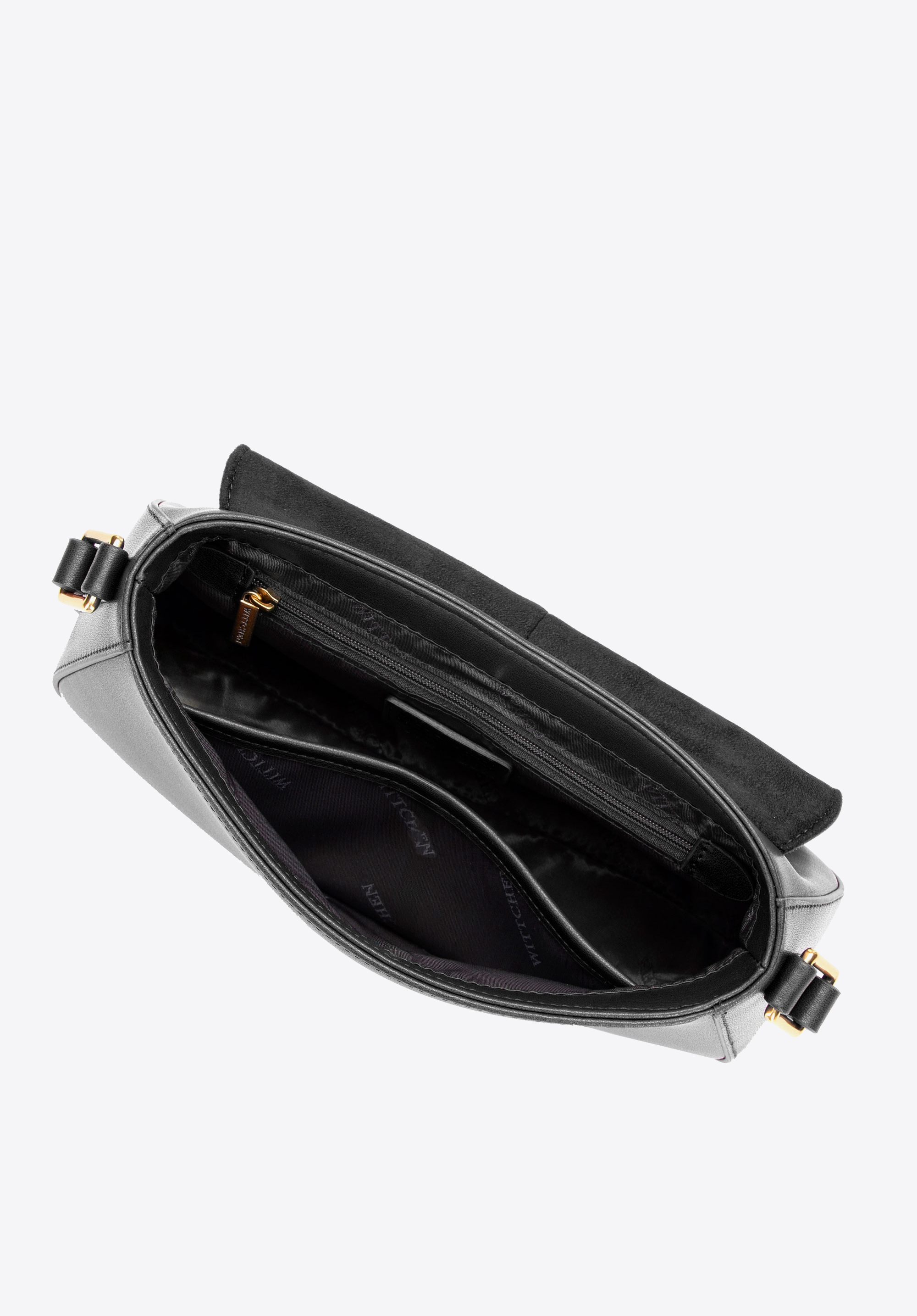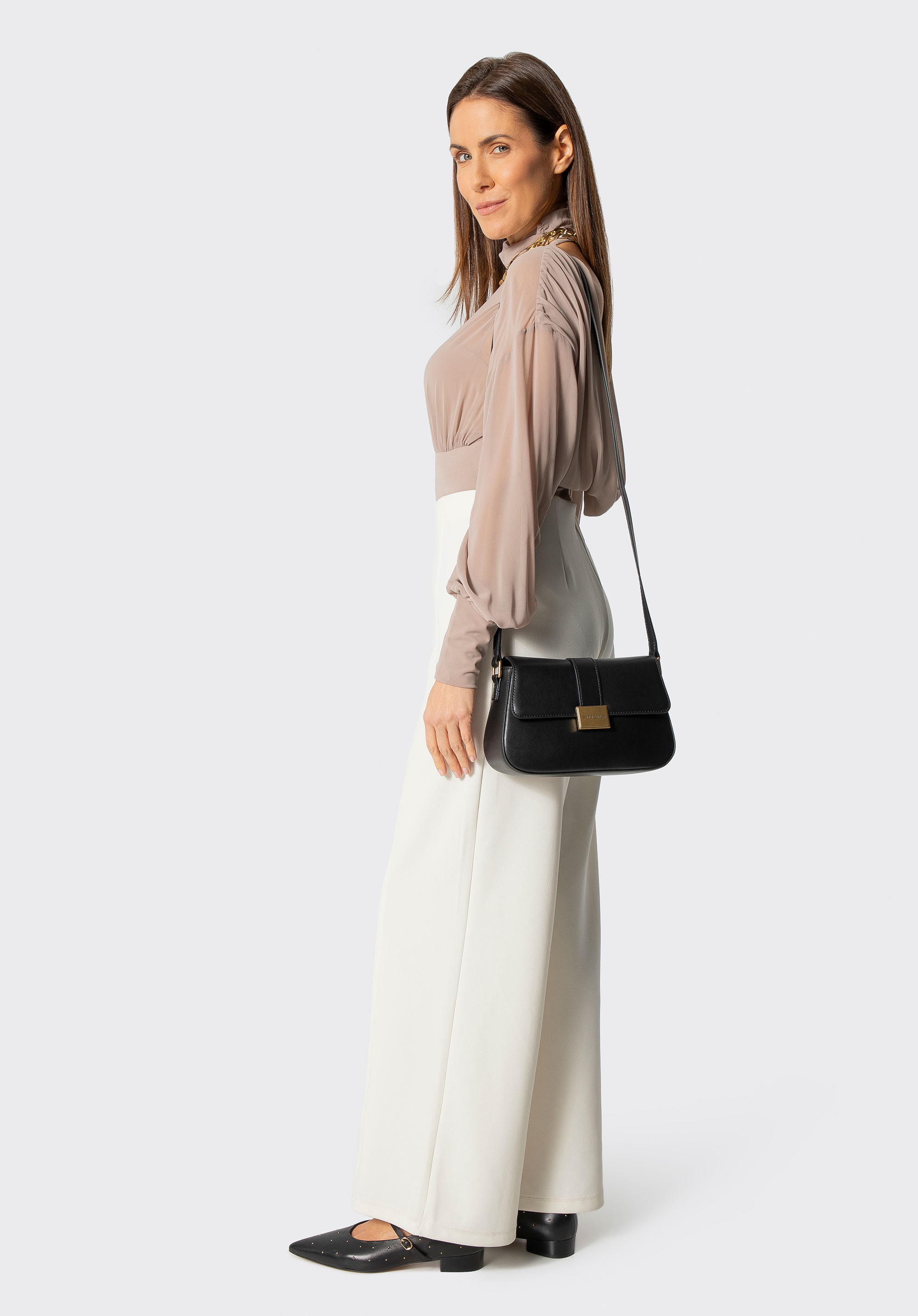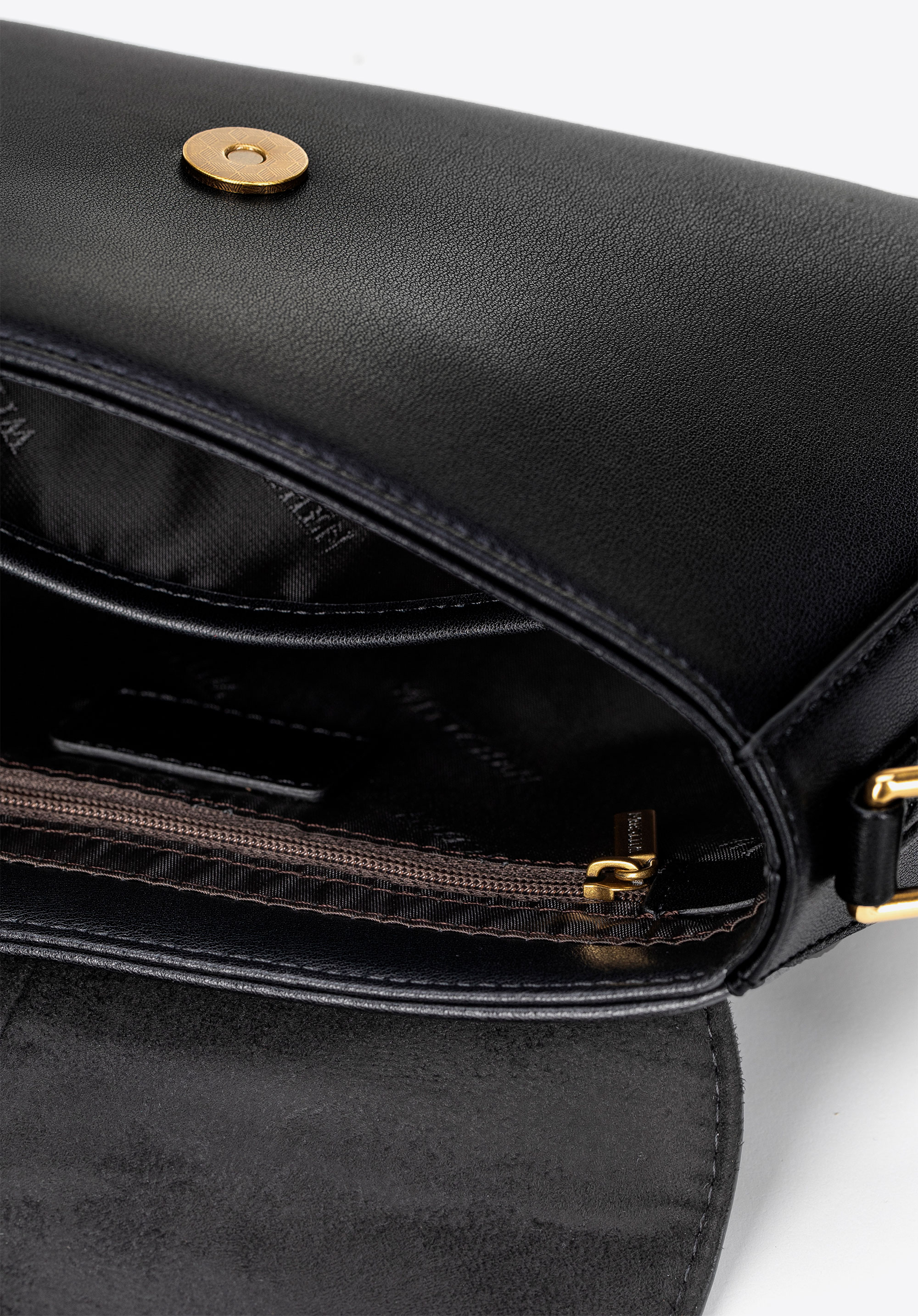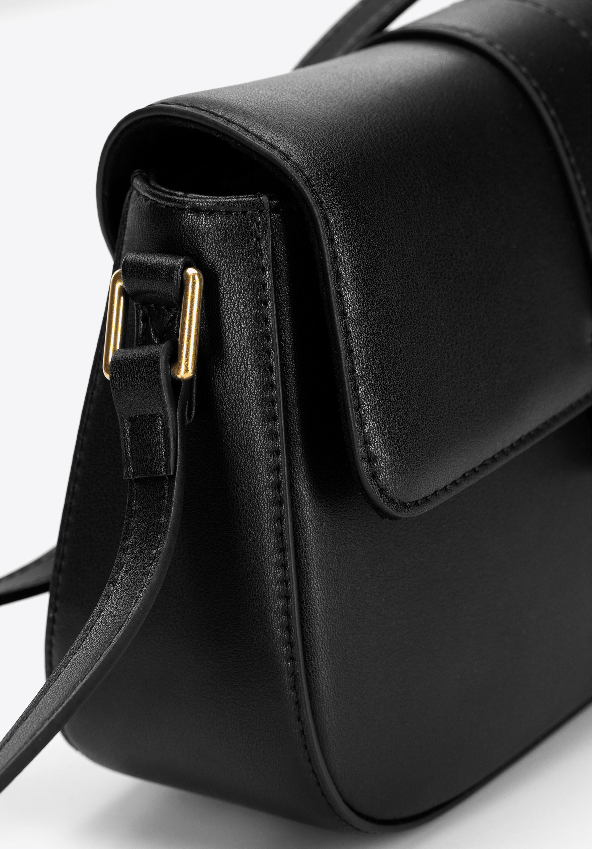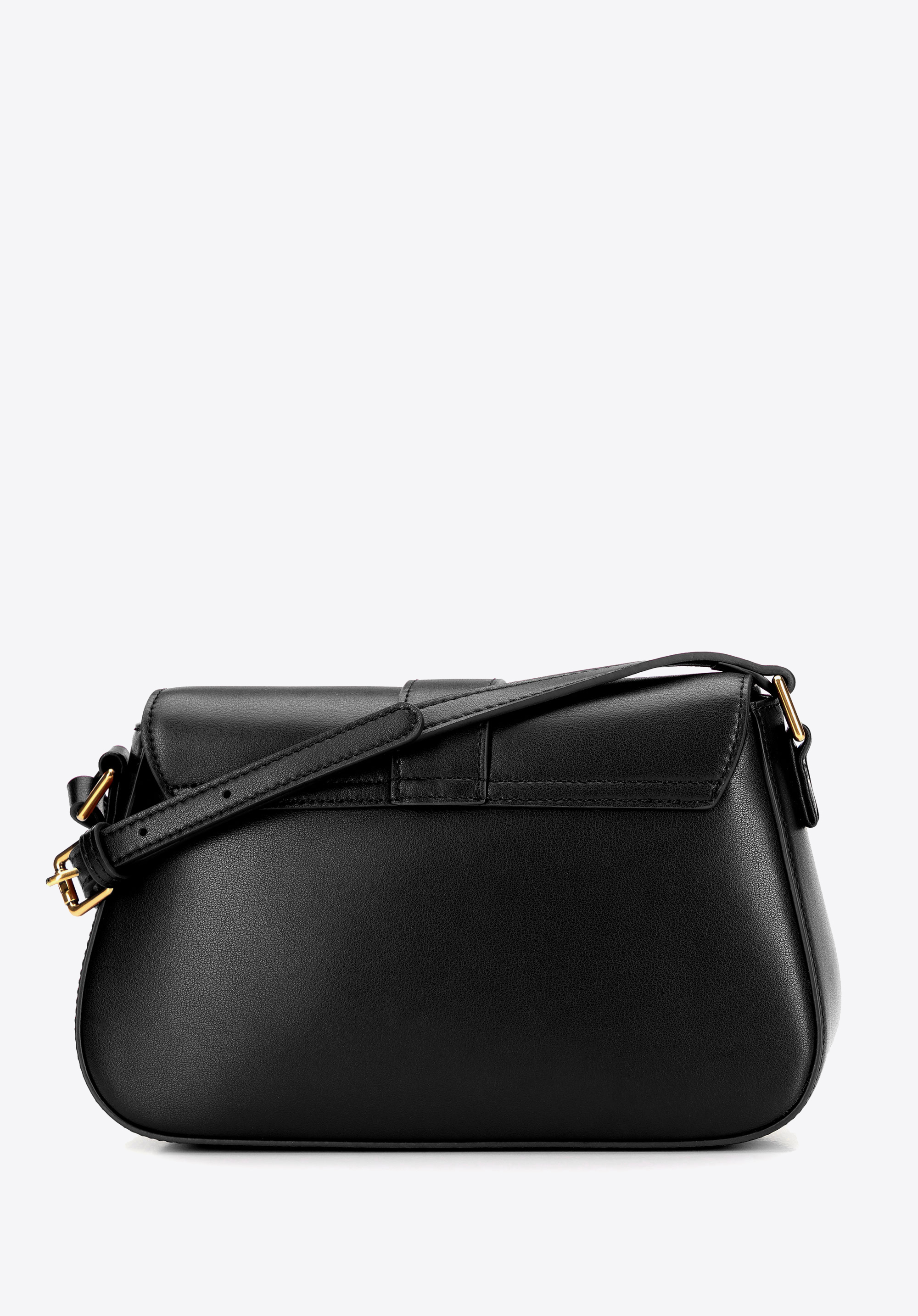 Маленька шкіряна сумка через плече з декоративною застібкою чорна