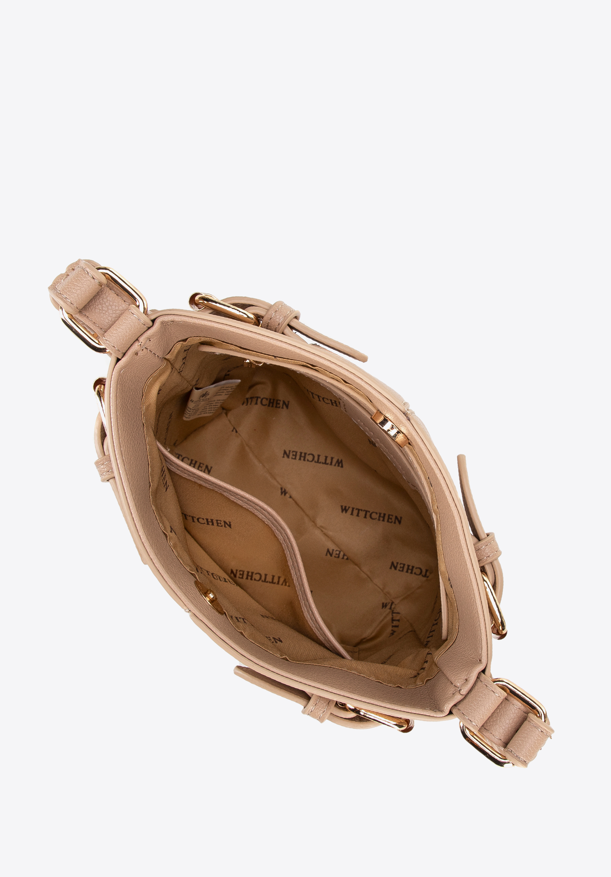 Ця сумка, виготовлена з екошкіри, обов’язково повинна бути у вашому гардеробі. Вона має характерний бохо-стиль і має декоративні бічні ремінці. Регульована ручка контрастного кольору покращує її функціональність, дозволяючи налаштувати посадку відповідно до ваших потреб і стилю. Застібається на застібку, що забезпечує легкий доступ до внутрішньої частини, яка включає дві кишені, одна з яких на блискавці, ідеально підходить для зберігання дрібниць.