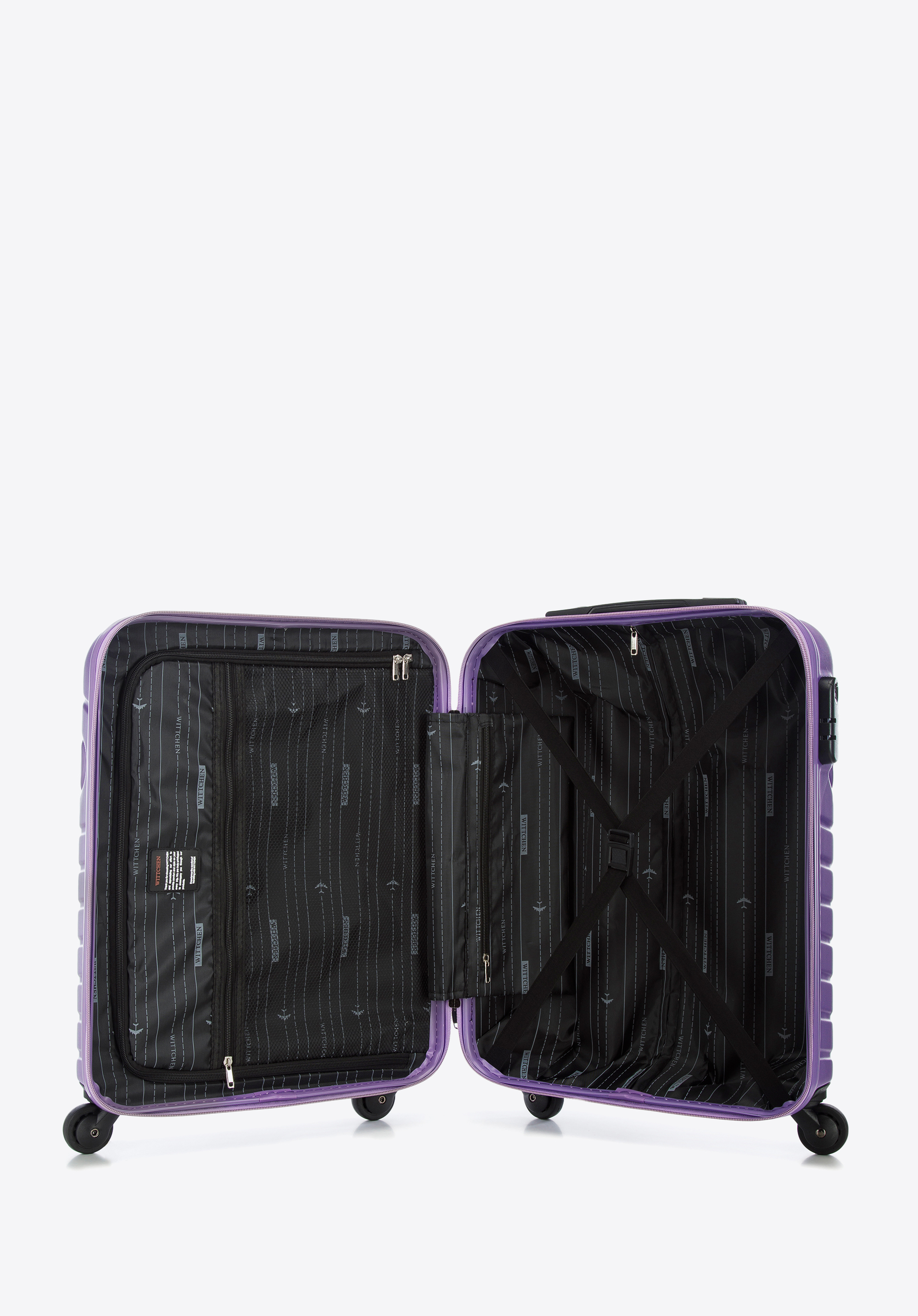 валіза оснащена чотирма одинарними поворотними колесами для зручності переміщення;