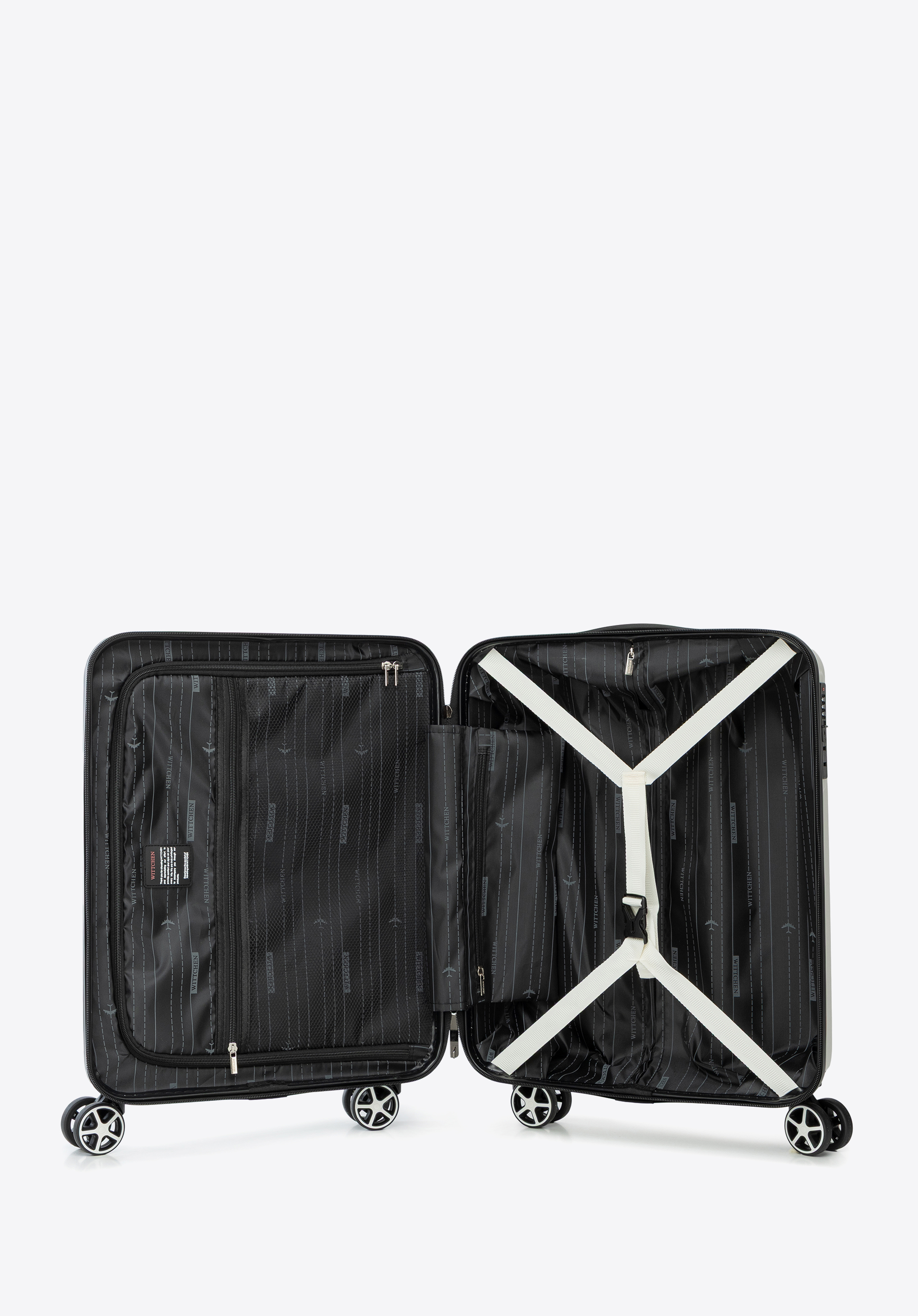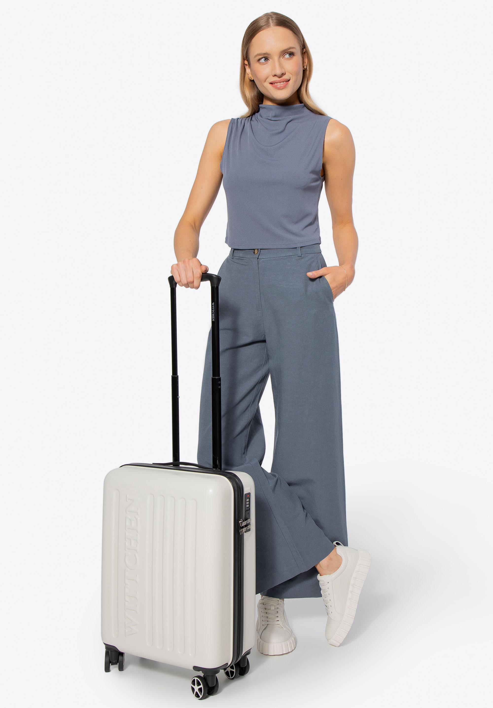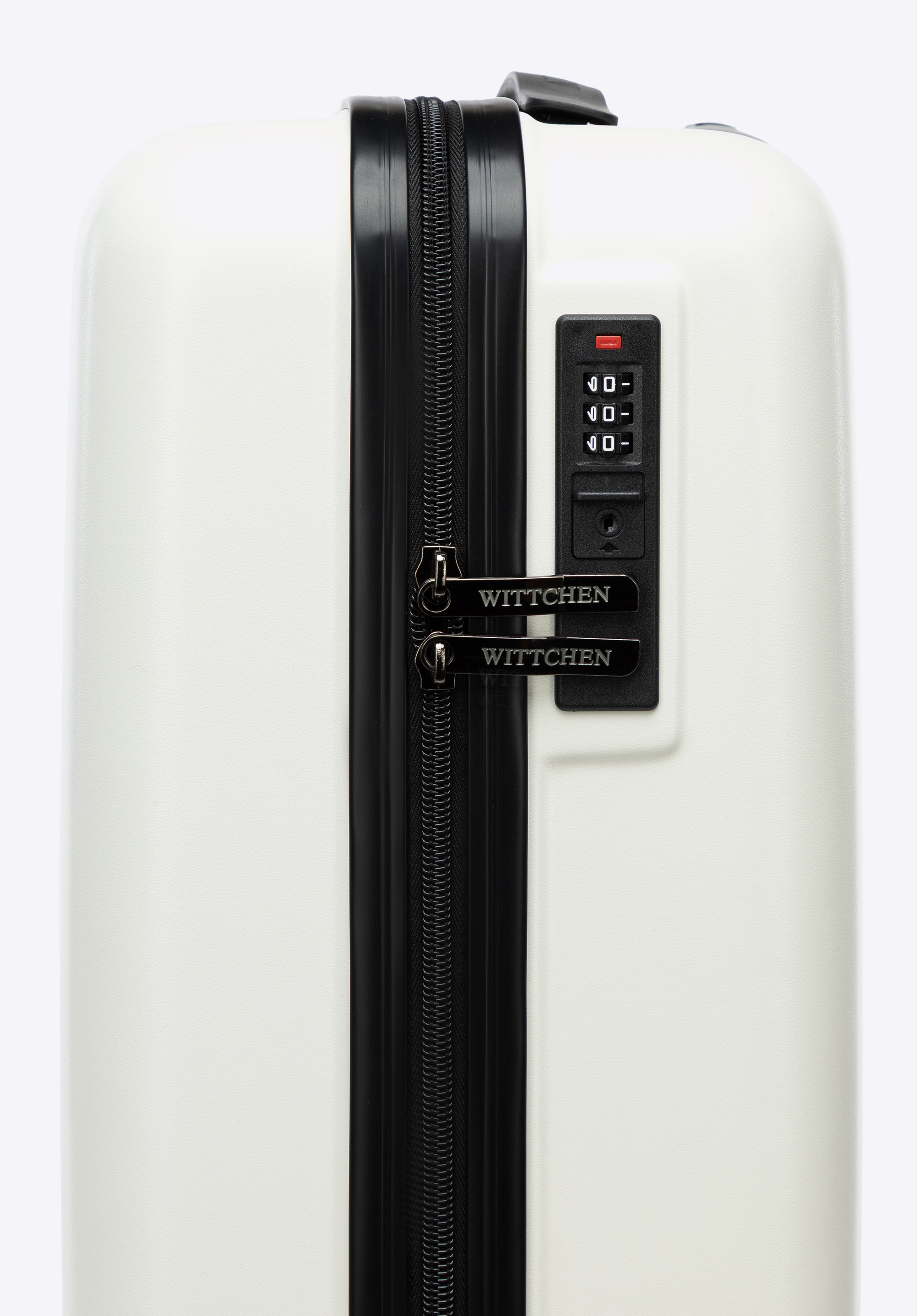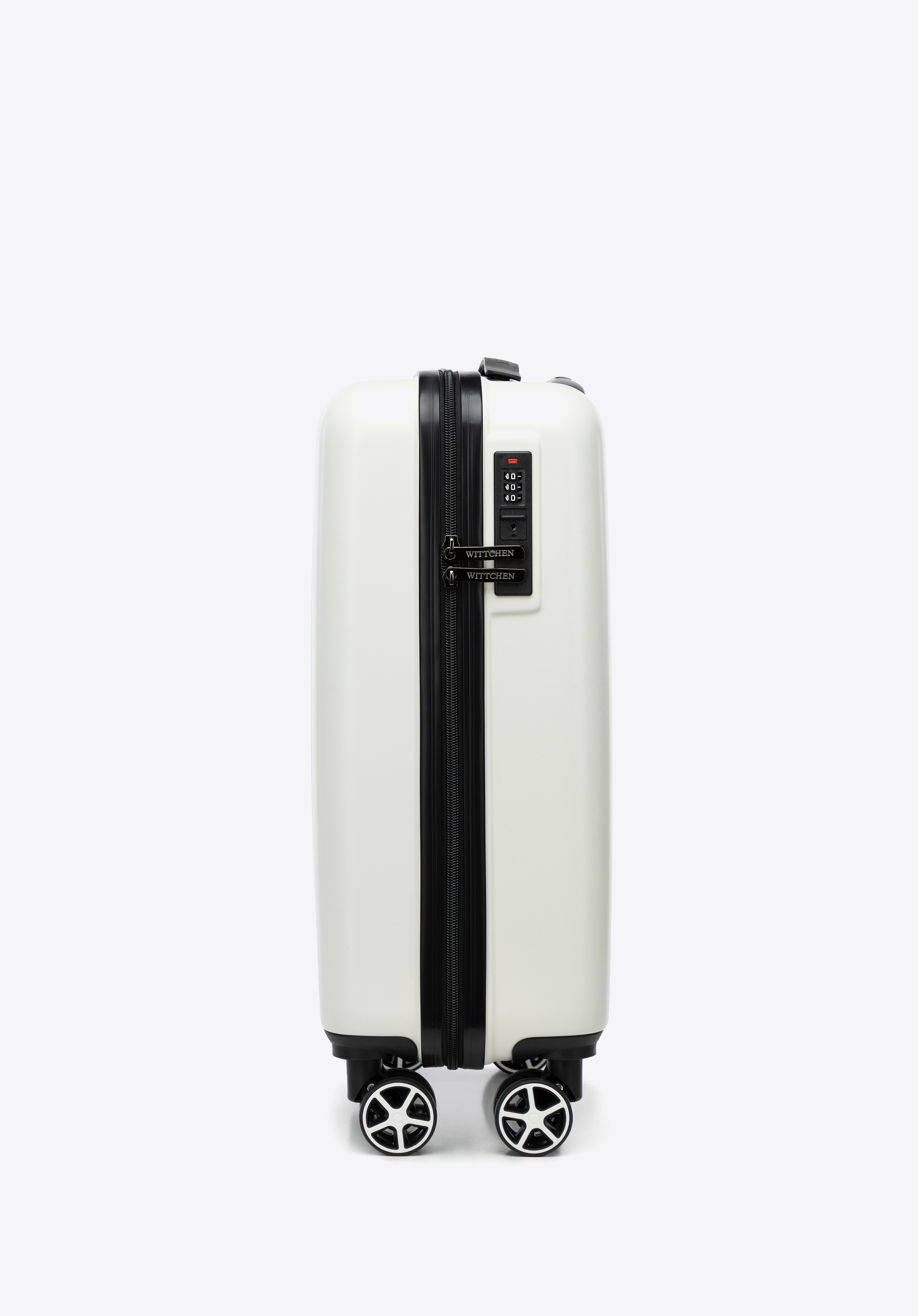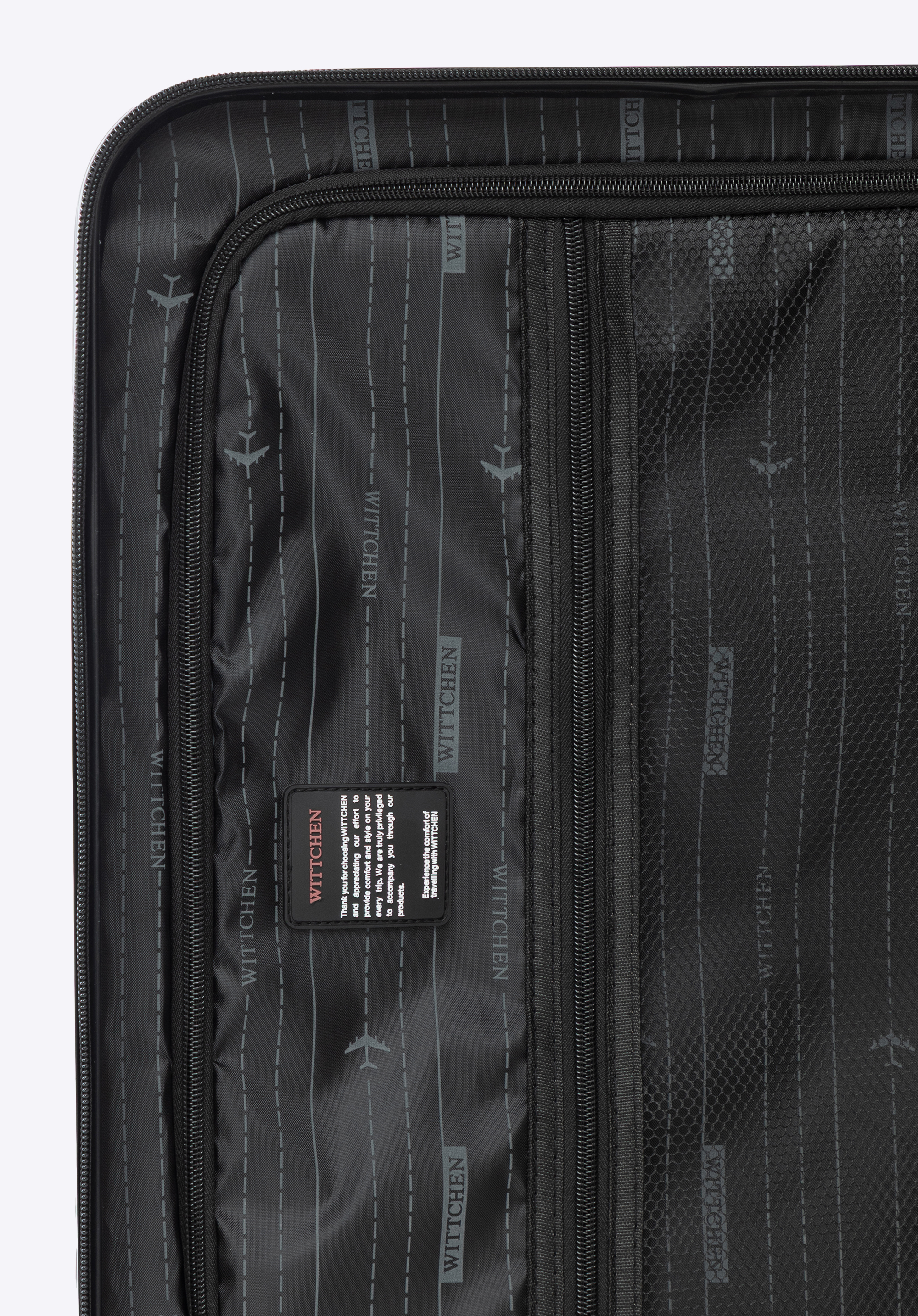 Відкрийте для себе елегантність маленької валізи WITTCHEN, виготовленої з міцного ABS-пластику, в якій стиль ідеально поєднується з практичністю. Її сучасний дизайн підкреслюється тисненим логотипом і витонченими вертикальними смугами на корпусі, що додає характерний і вишуканий штрих. Чотири подвійних колеса з обертанням на 360° забезпечують плавне та комфортне маневрування, а сталева телескопічна ручка з фіксацією дозволяє регулювати висоту відповідно до ваших потреб.