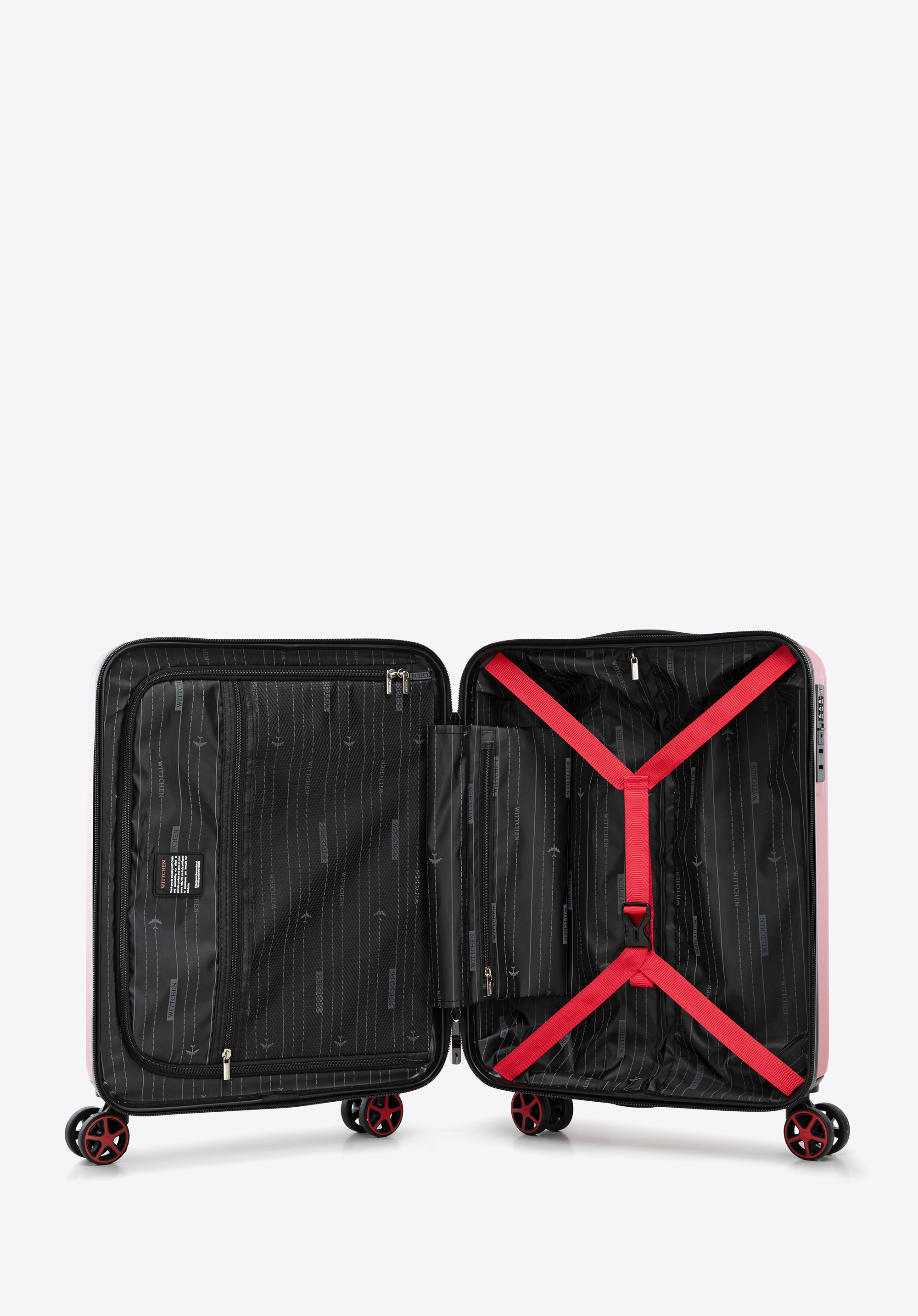 Відкрийте для себе елегантність маленької валізи WITTCHEN, виготовленої з міцного ABS-пластику, в якій стиль ідеально поєднується з практичністю. Її сучасний дизайн підкреслюється тисненим логотипом і витонченими вертикальними смугами на корпусі, що додає характерний і вишуканий штрих. Чотири подвійних колеса з обертанням на 360° забезпечують плавне та комфортне маневрування, а сталева телескопічна ручка з фіксацією дозволяє регулювати висоту відповідно до ваших потреб.