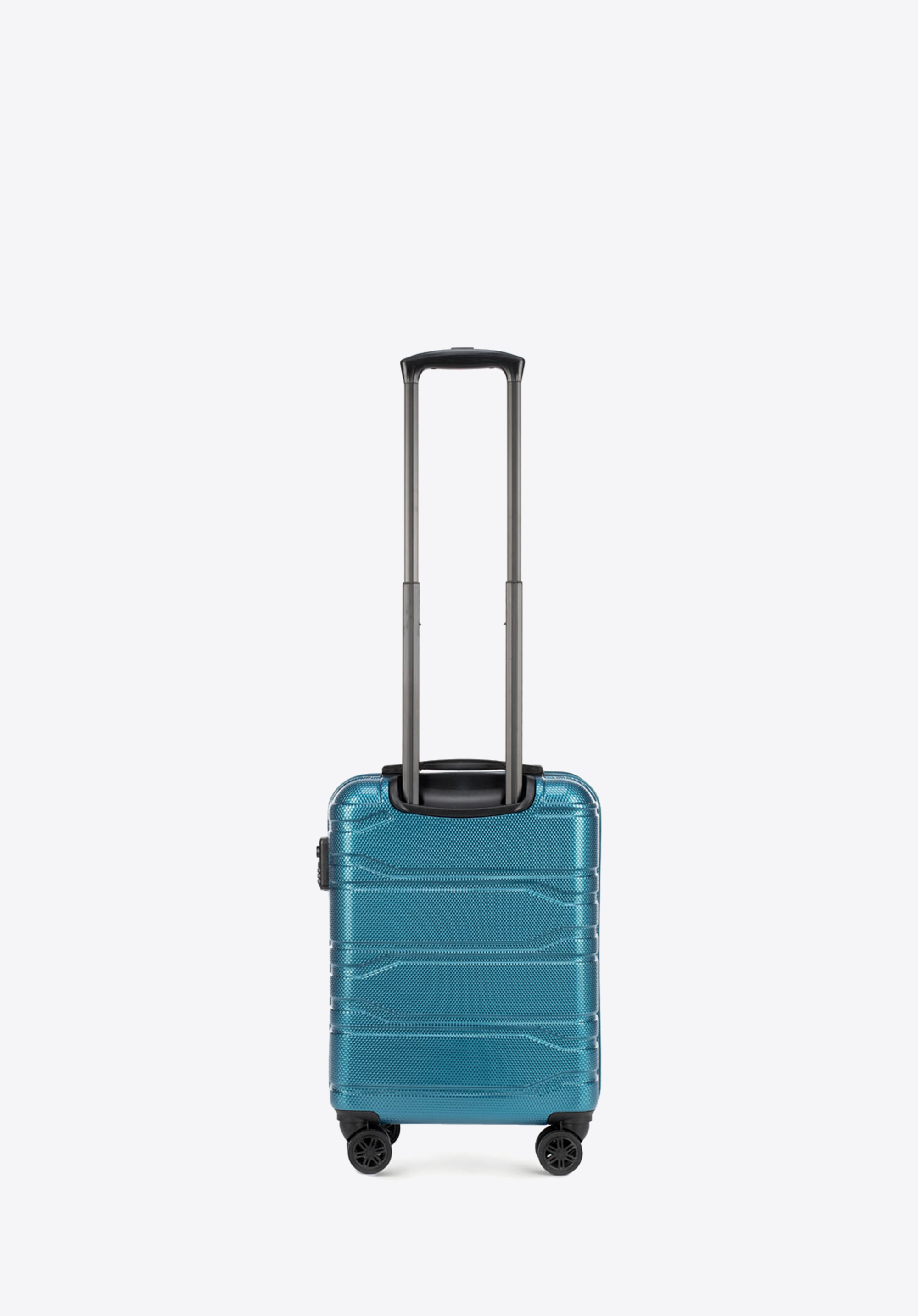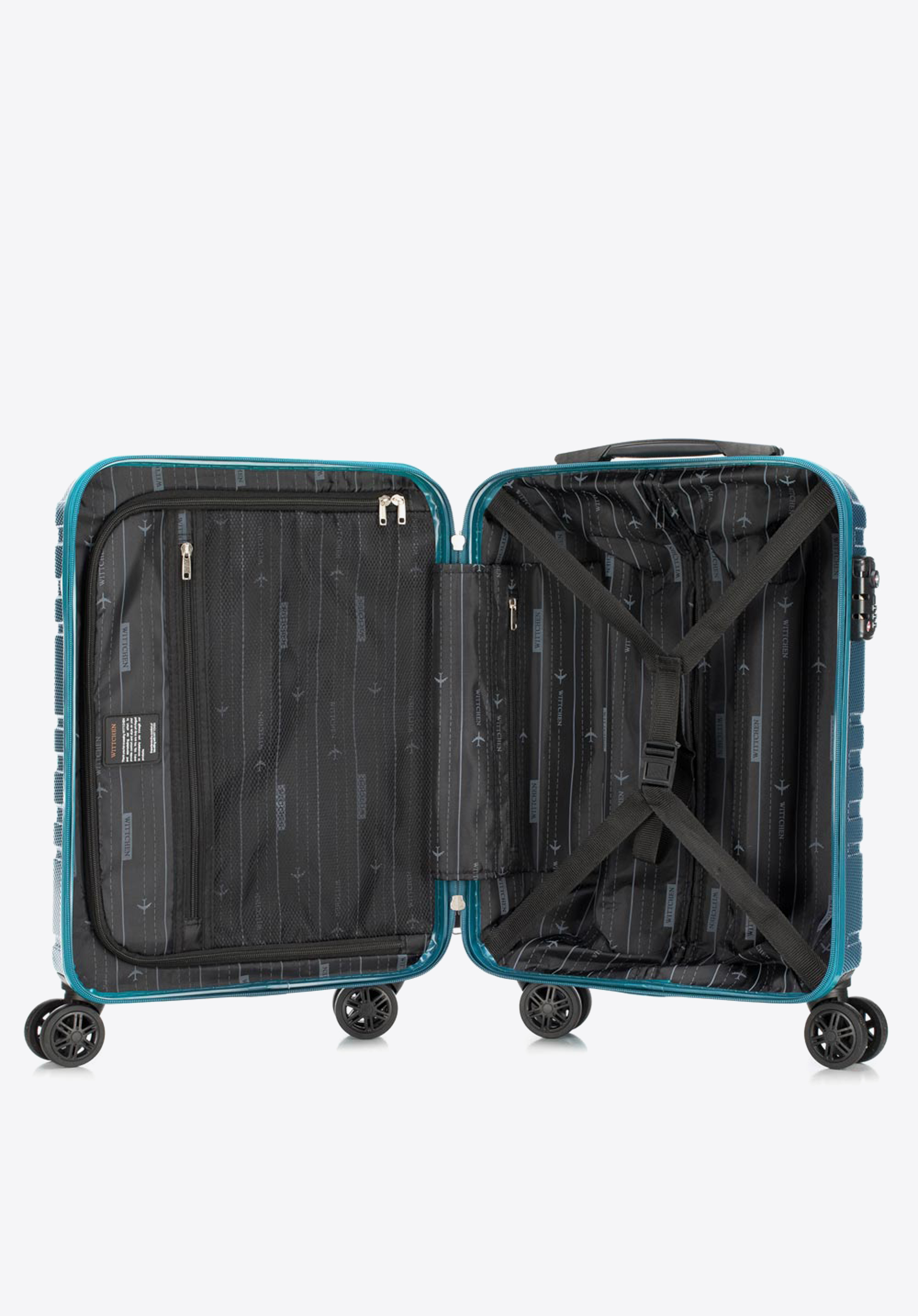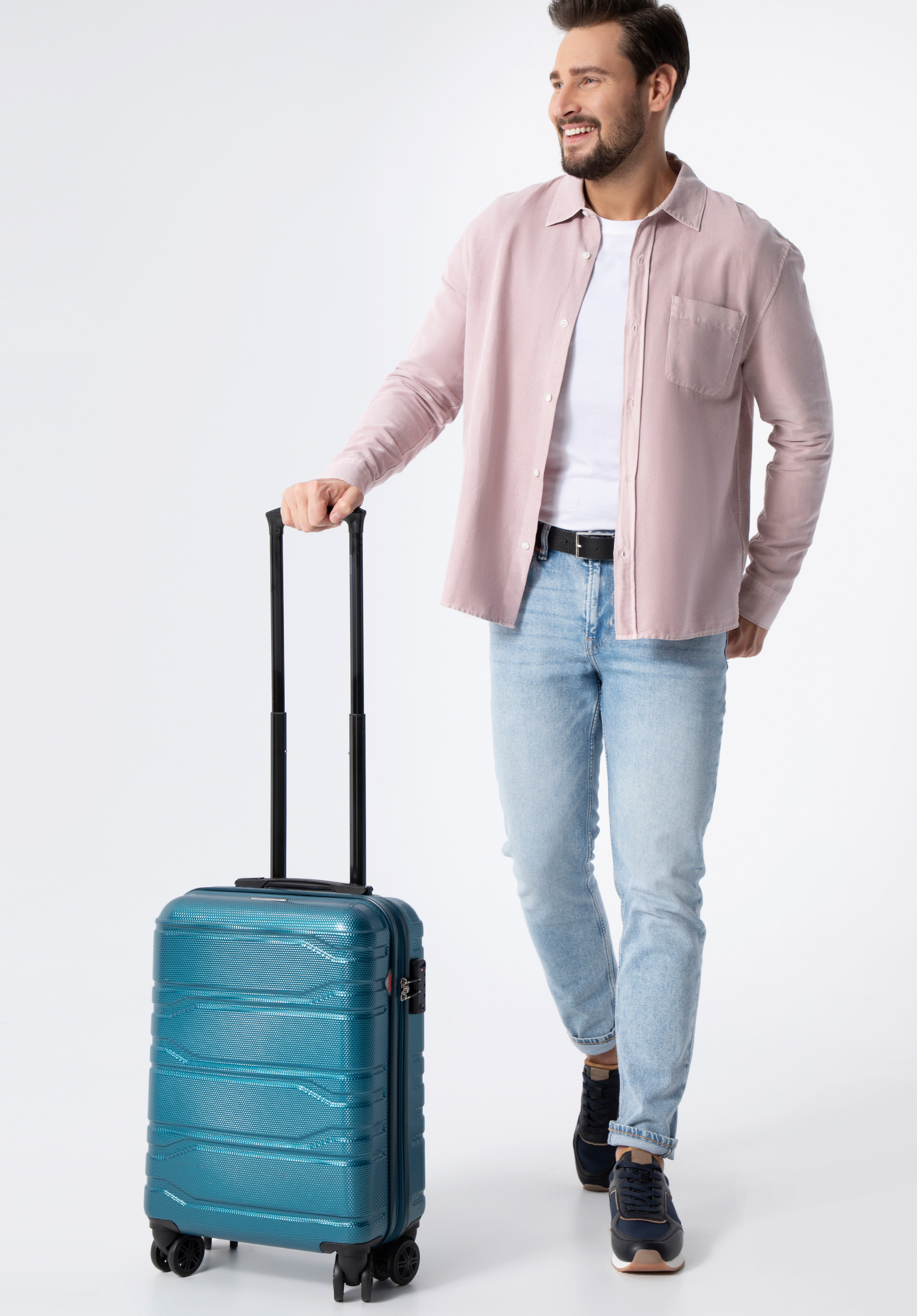 Валіза ручна поклажа виготевлена з дуже міцного полікарбонату, який характеризується пористою поверхнею, що дозволяє довго тримати валізу в хорошому стані. У представленому наборі висока функціональність йде рука об руку з сучасним дизайном. Горизонтальні лінії і небанальна колірна гамма порадують тих, хто стежить за тенденціями моди. Наша порада: пропозиція для прихильників твердого багажу.