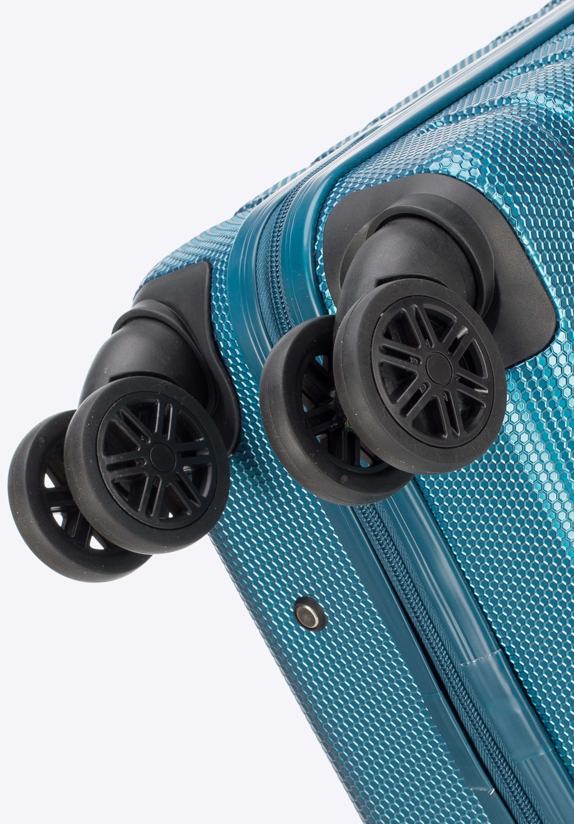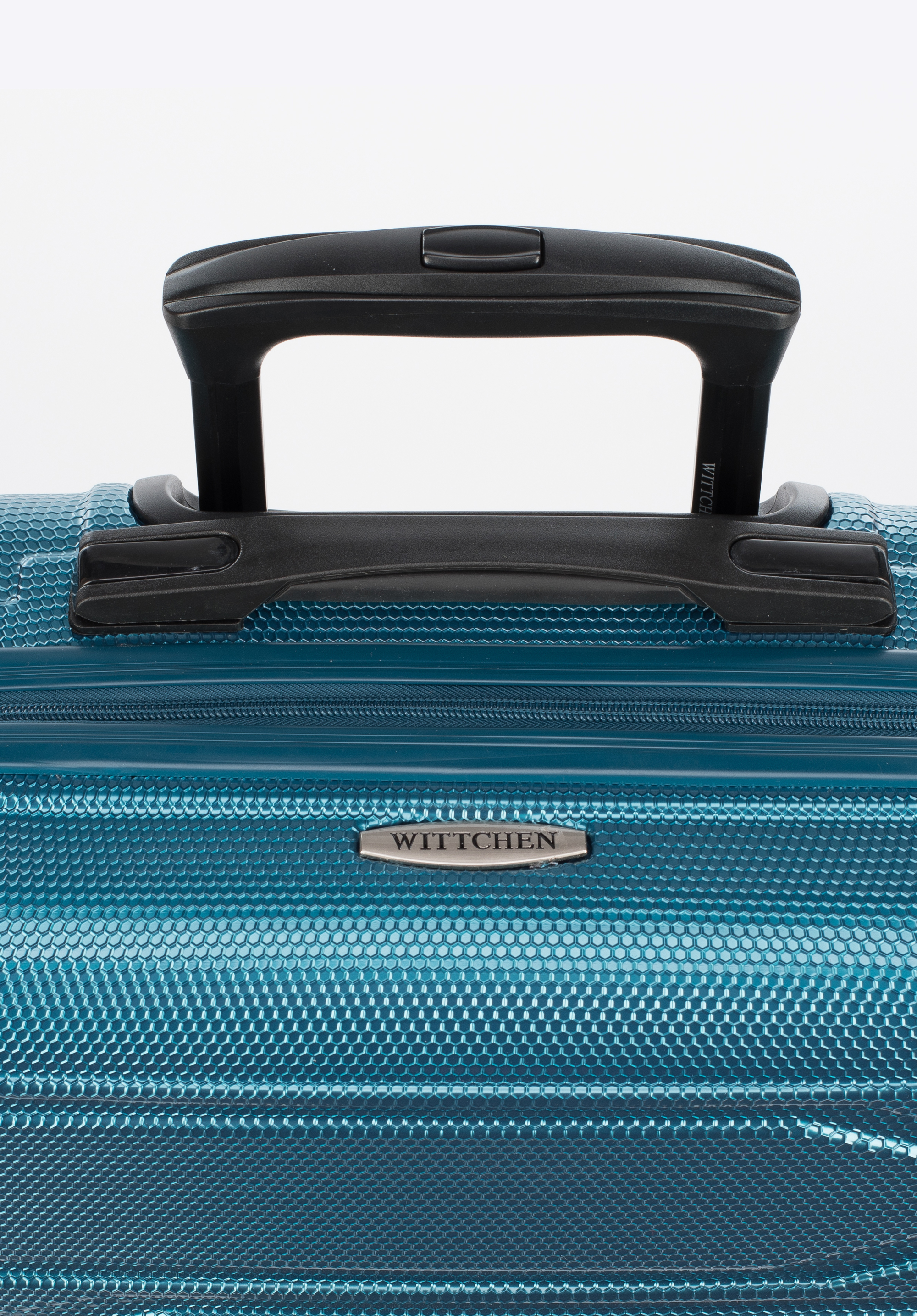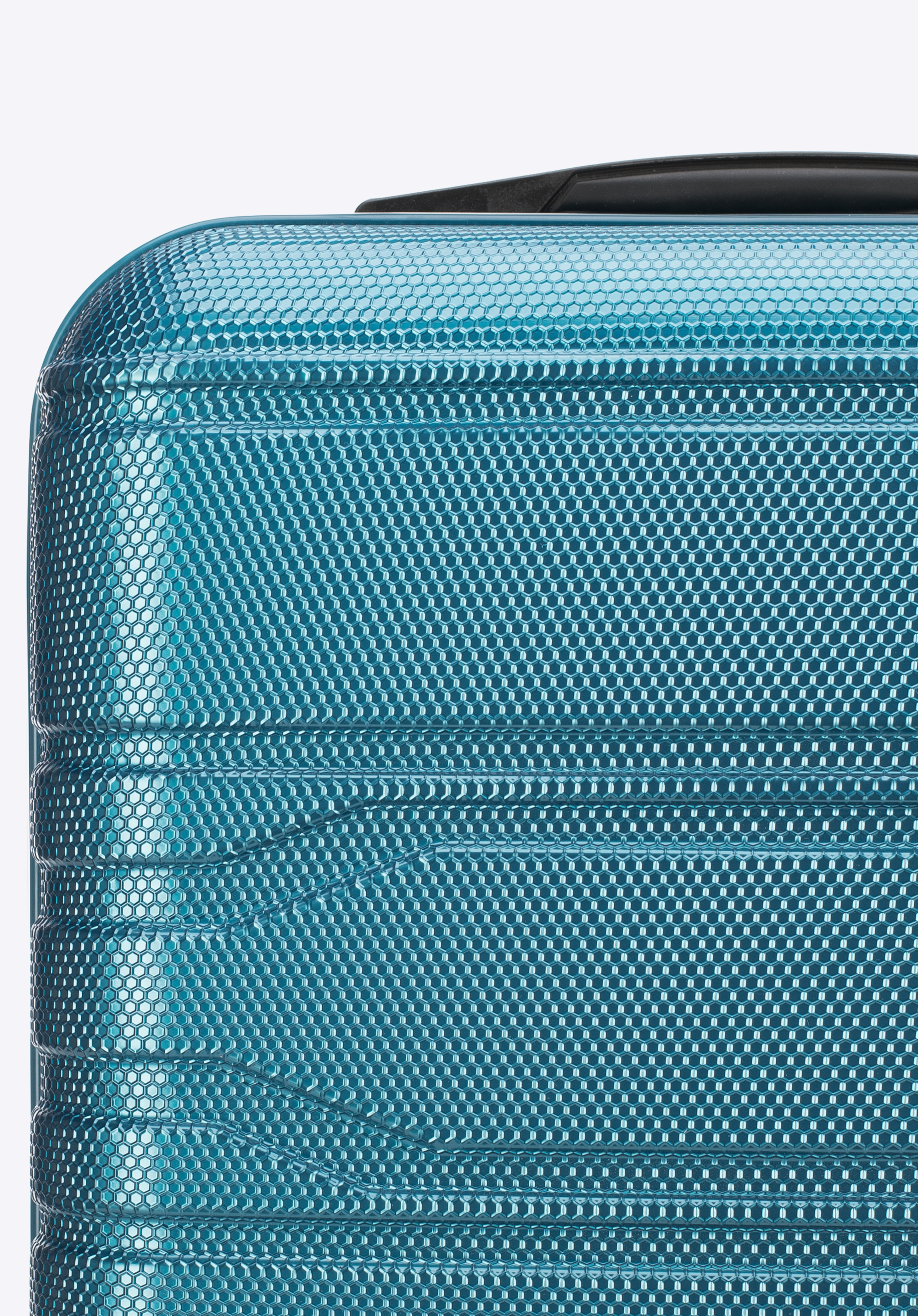 Валіза ручна поклажа виготевлена з дуже міцного полікарбонату, який характеризується пористою поверхнею, що дозволяє довго тримати валізу в хорошому стані. У представленому наборі висока функціональність йде рука об руку з сучасним дизайном. Горизонтальні лінії і небанальна колірна гамма порадують тих, хто стежить за тенденціями моди. Наша порада: пропозиція для прихильників твердого багажу.