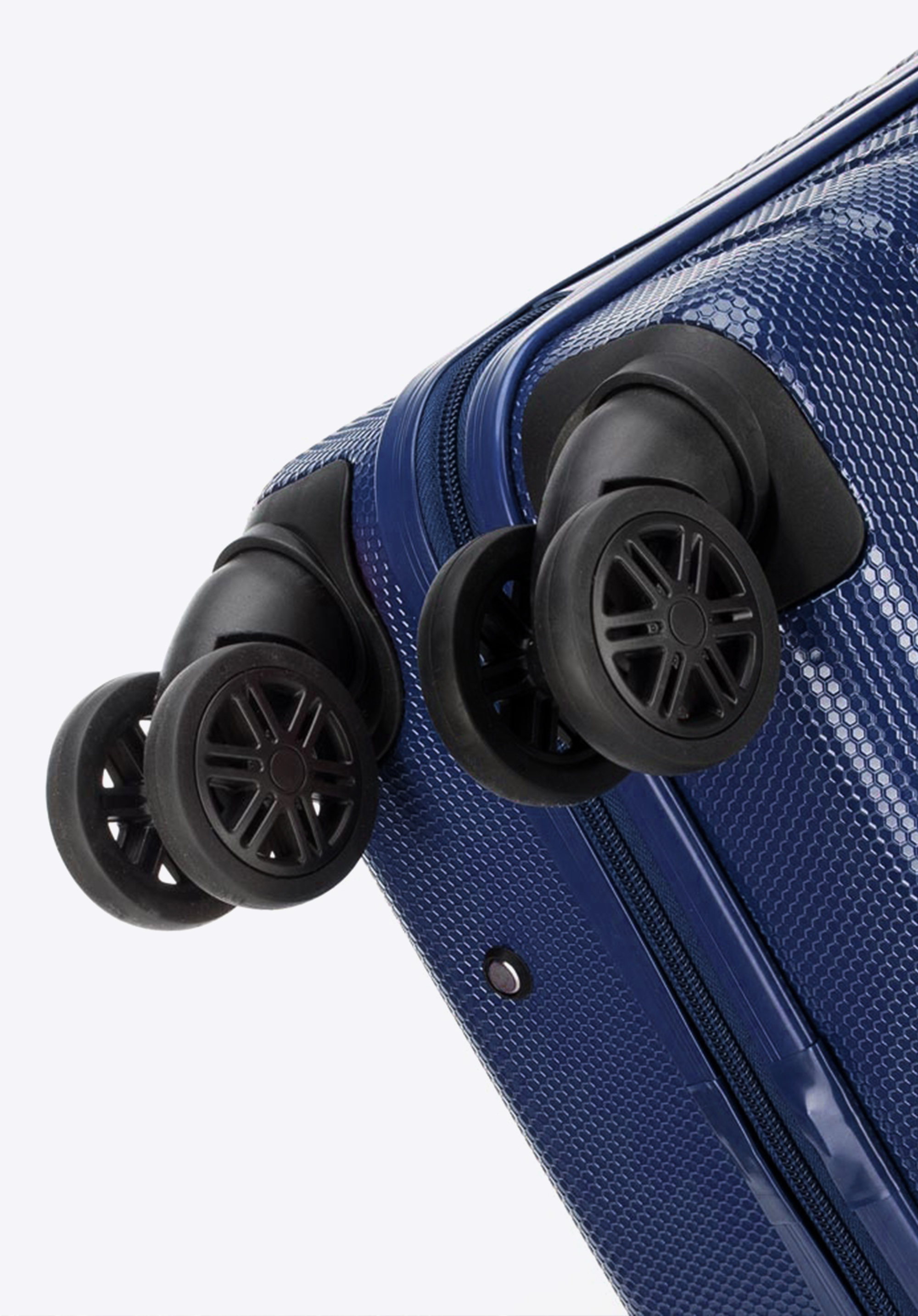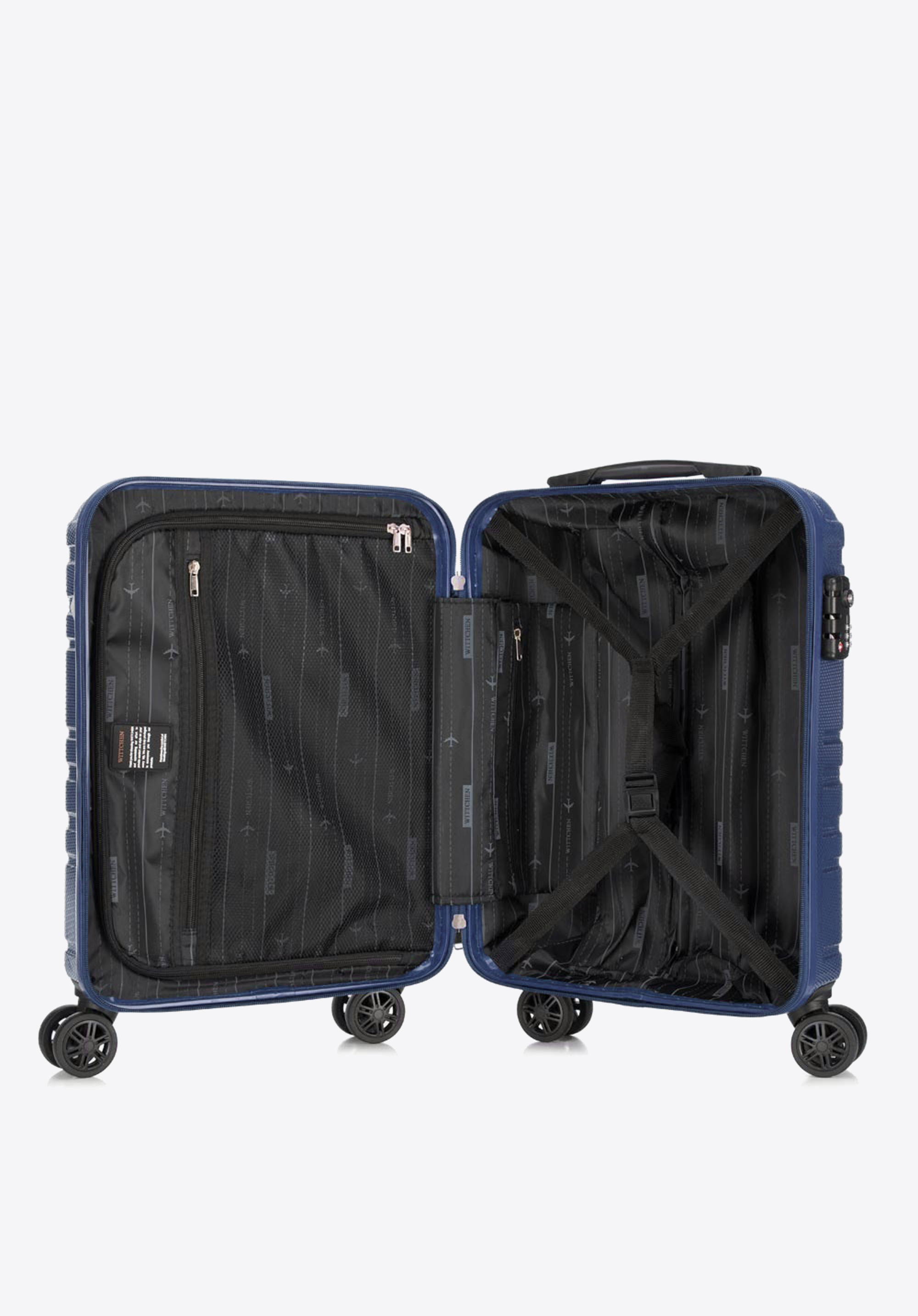 Валіза ручна поклажа виготевлена з дуже міцного полікарбонату, який характеризується пористою поверхнею, що дозволяє довго тримати валізу в хорошому стані. У представленому наборі висока функціональність йде рука об руку з сучасним дизайном. Горизонтальні лінії і небанальна колірна гамма порадують тих, хто стежить за тенденціями моди. Наша порада: пропозиція для прихильників твердого багажу.