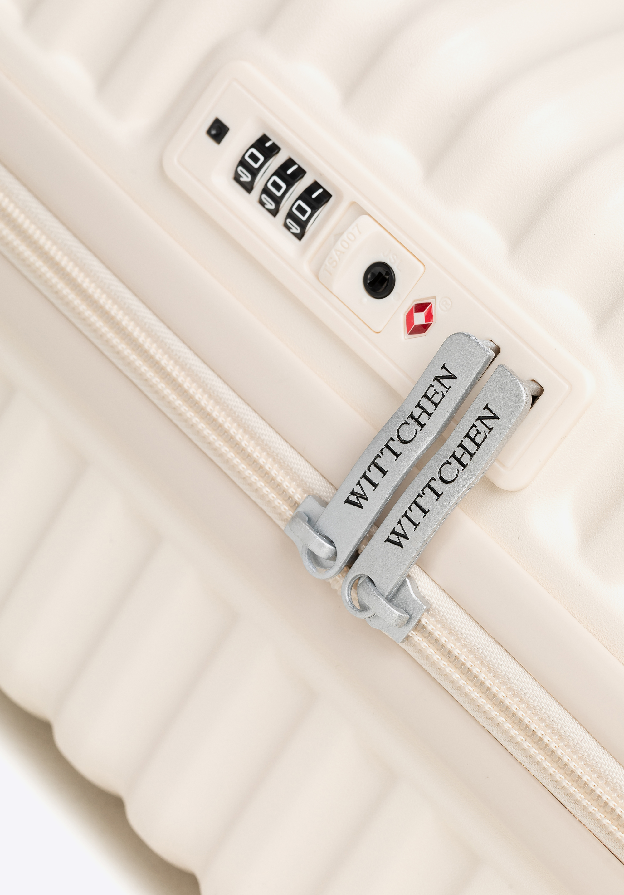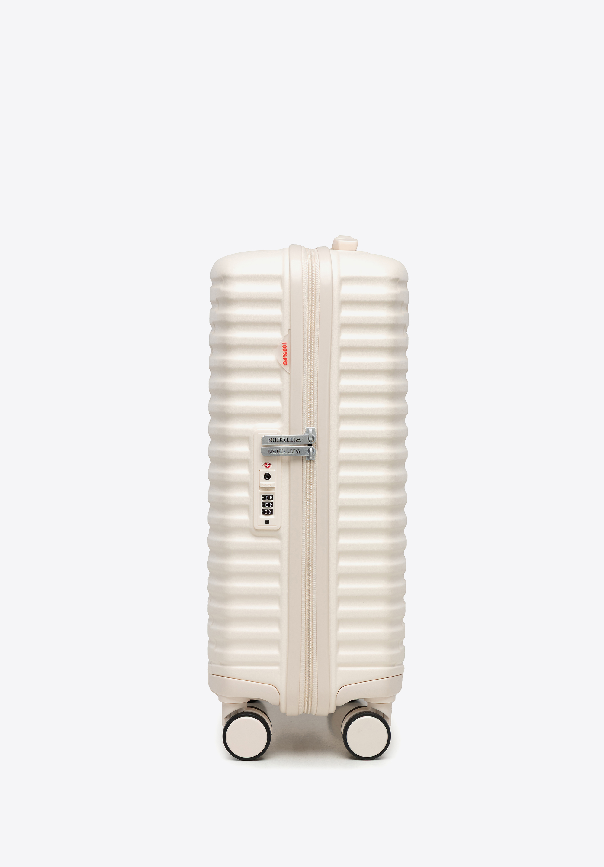 Маленька валіза з полікарбонату з горизонтальним рифленням кремова