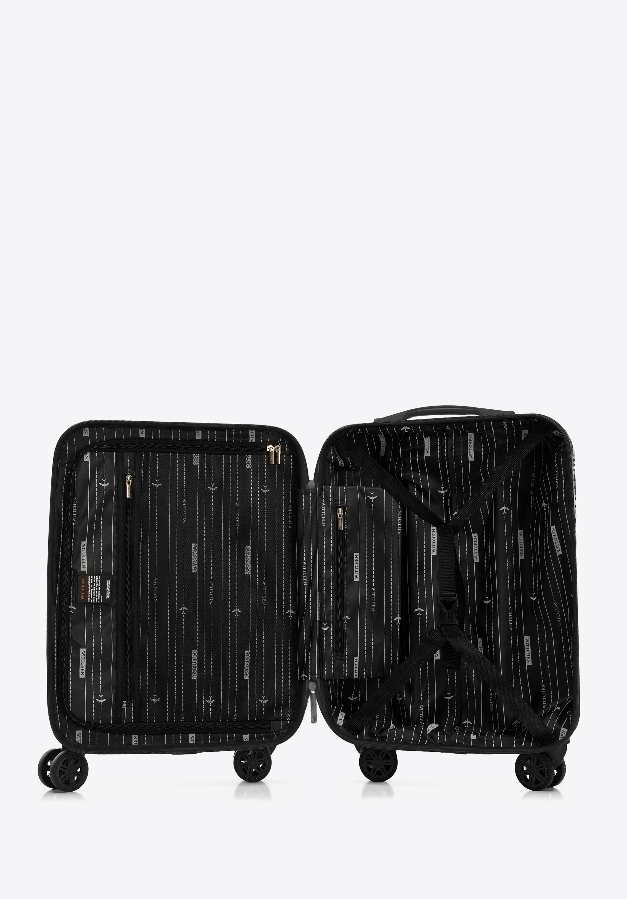 - Ідеально продуманий інтер''єр: Внутрішній простір валізи розділений на два відділення. Одне відділення застібається на жорсткі ремені, інше - на блискавку.