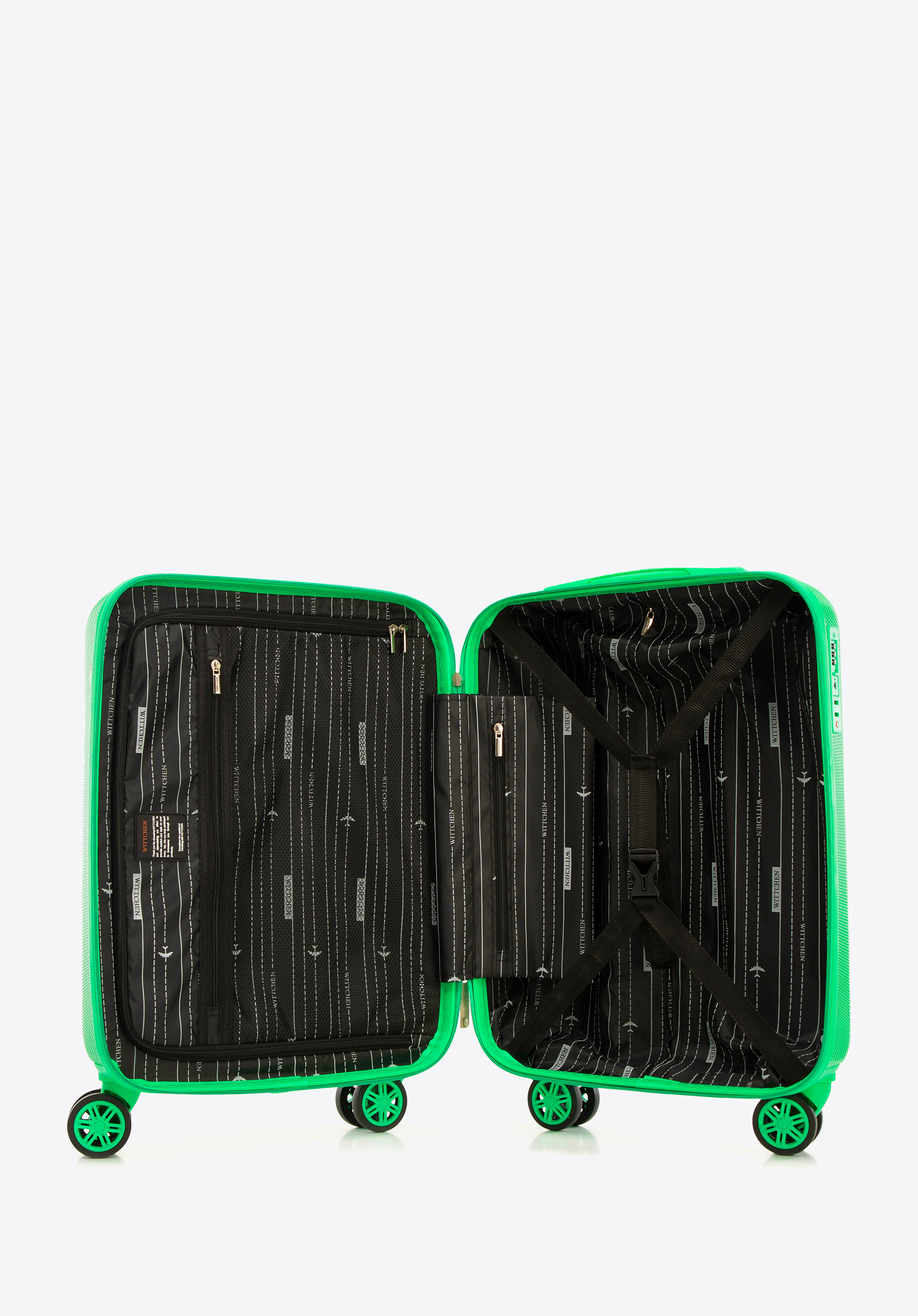 - Ідеально продуманий інтер''єр: Внутрішній простір валізи розділений на два відділення. Одне відділення застібається на жорсткі ремені, інше - на блискавку.