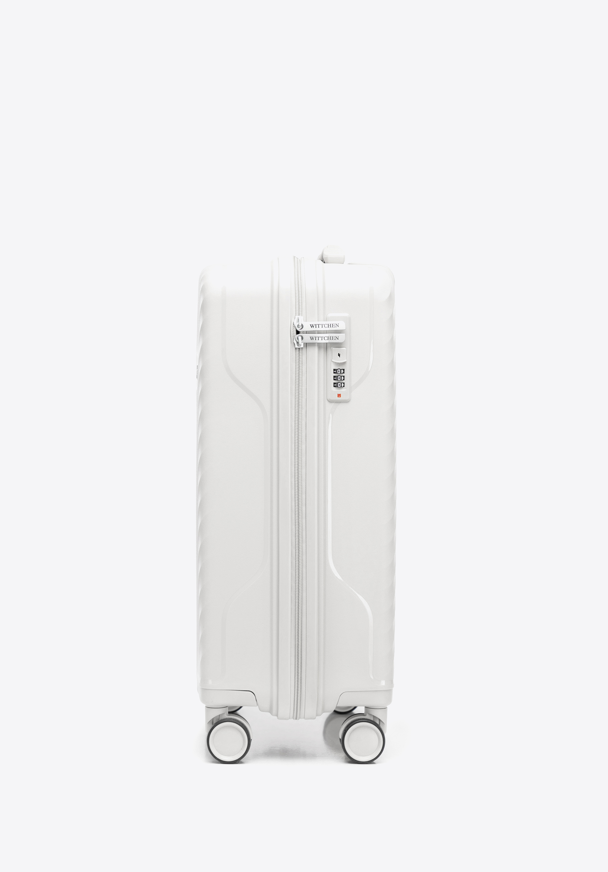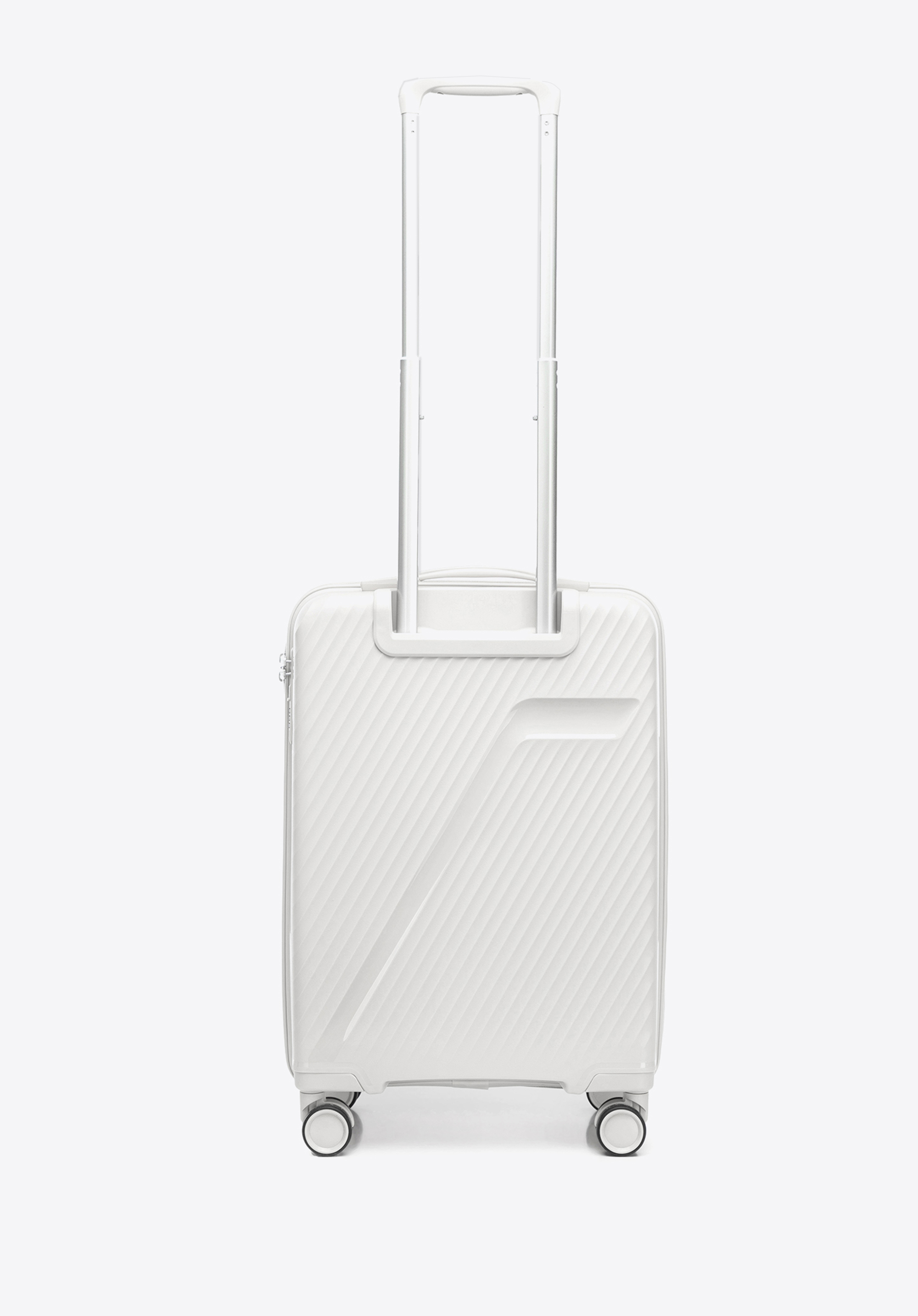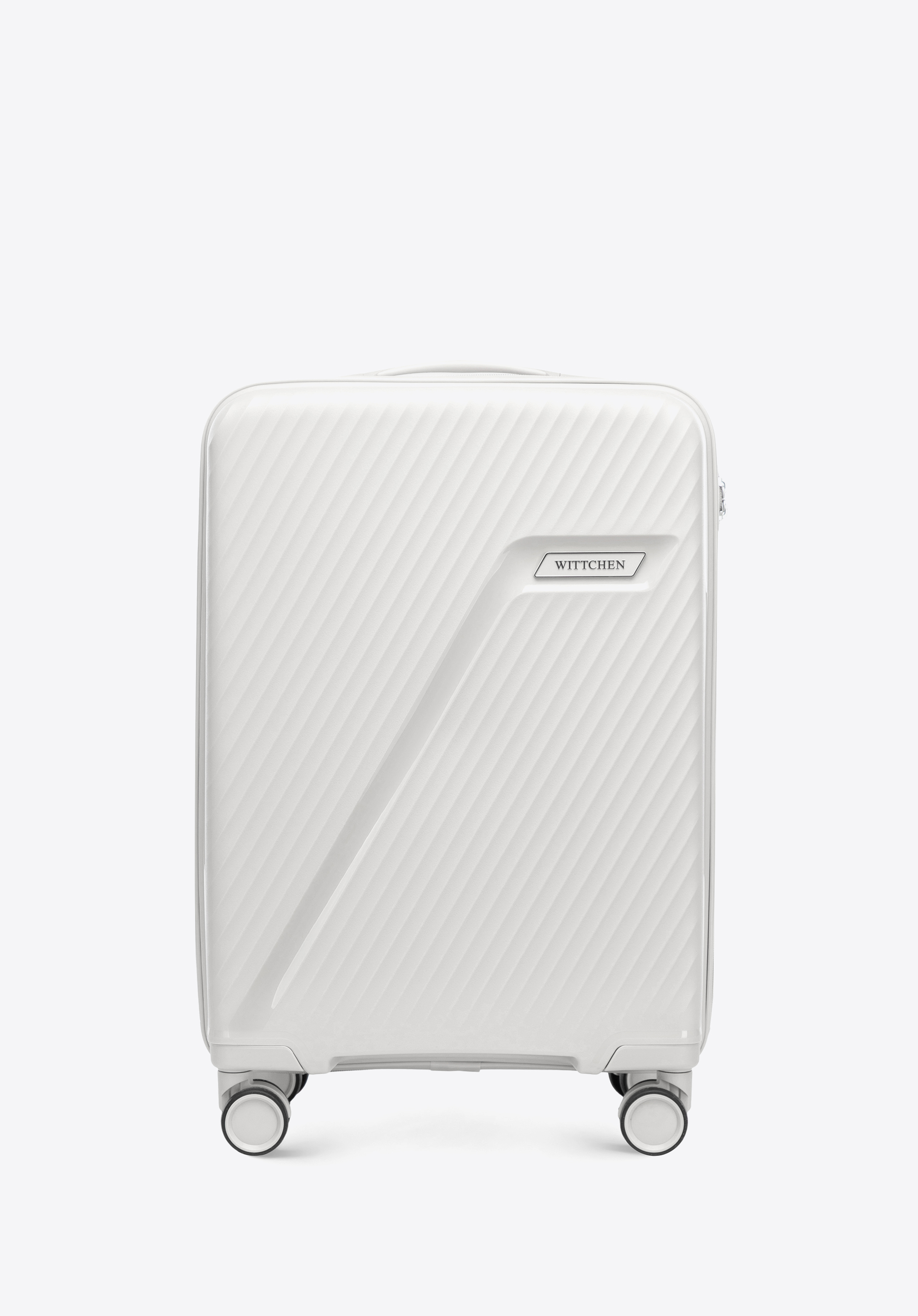 Маленька валіза з поліпропілену з діагональними смужками біло-срібна