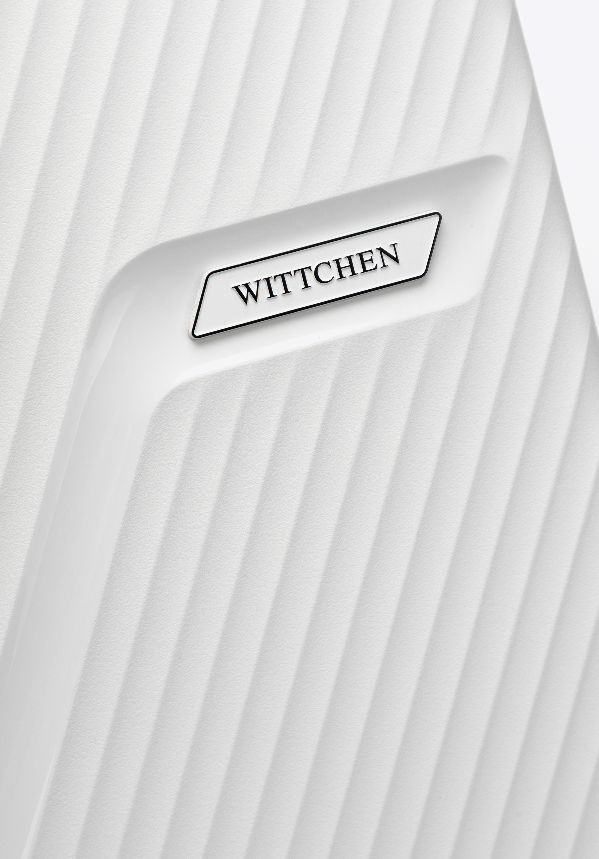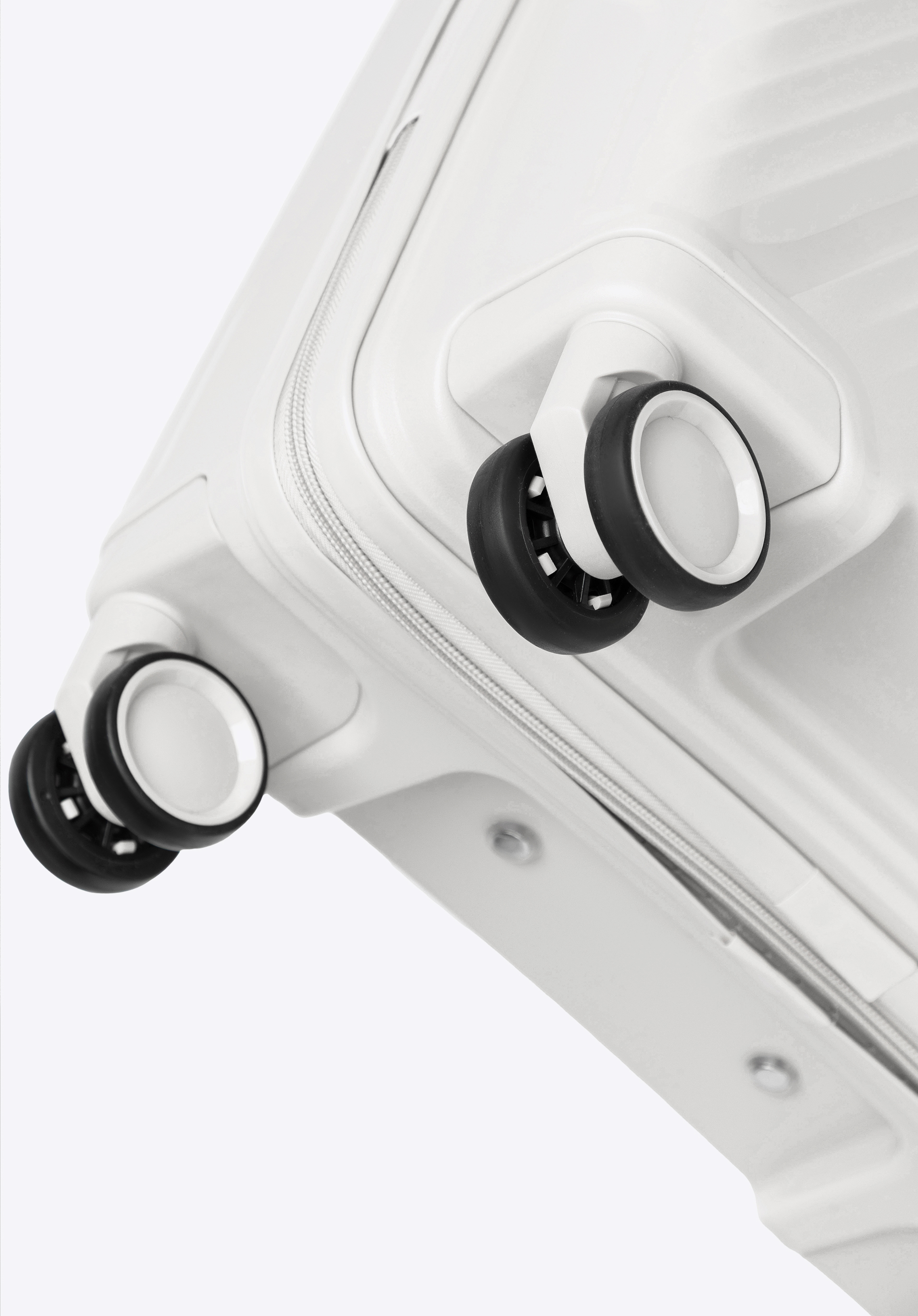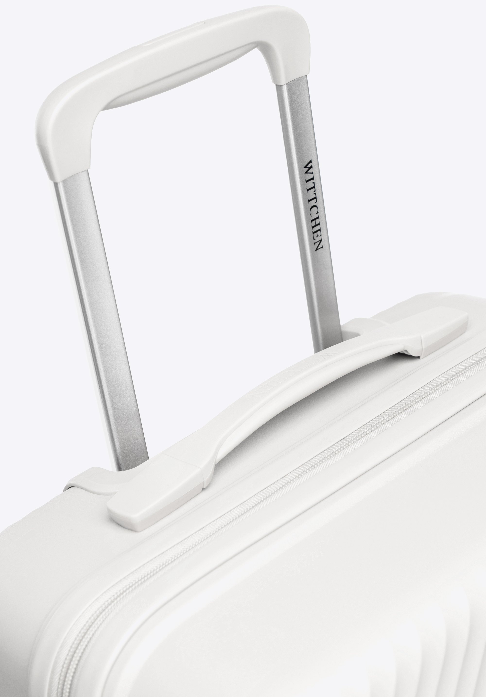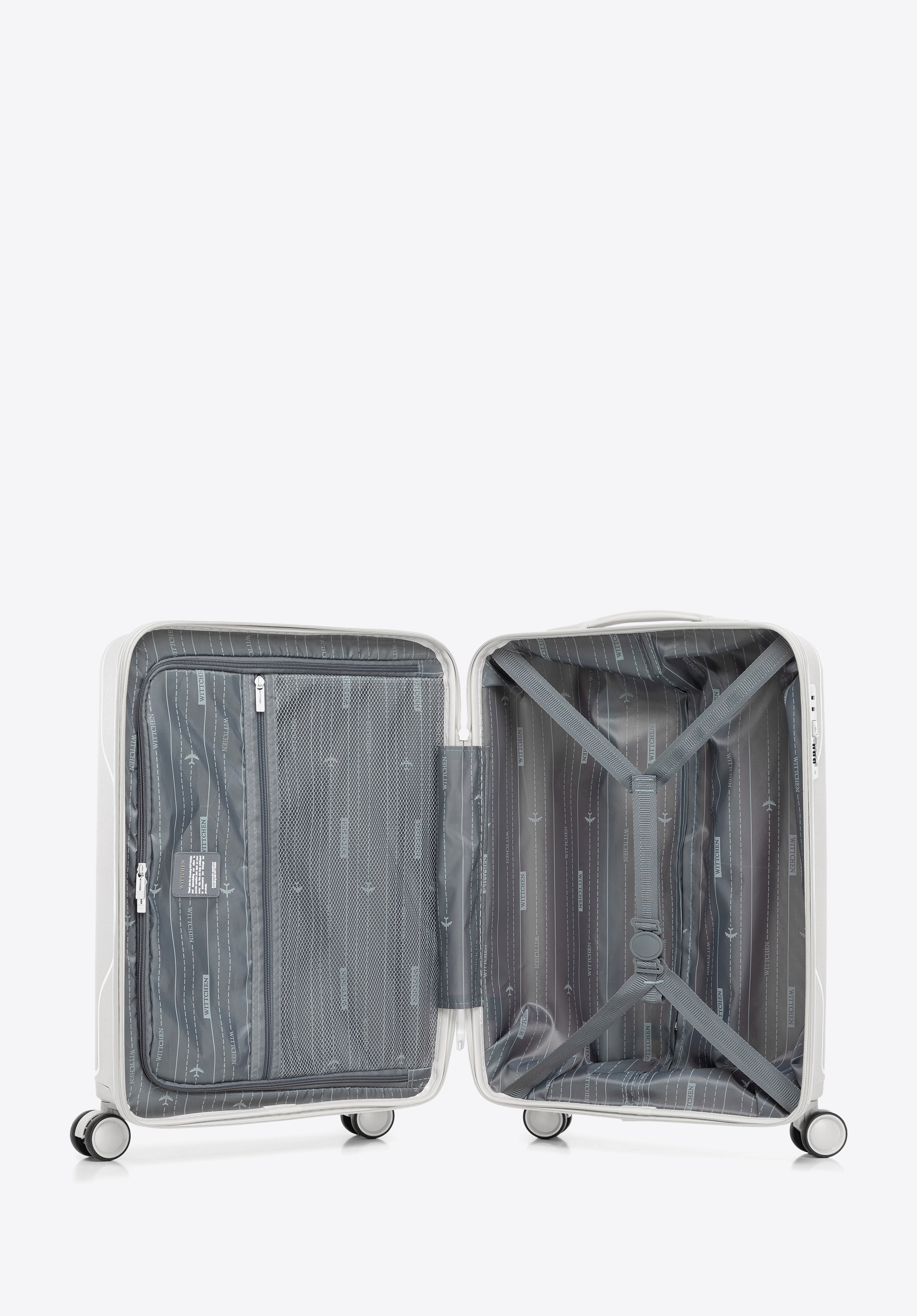 Маленька валіза з поліпропілену з діагональними смужками біло-срібна