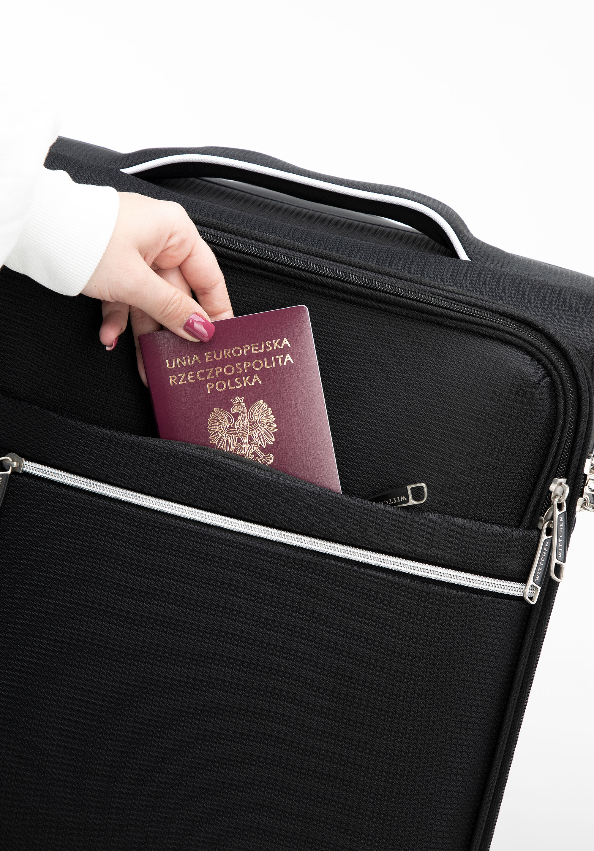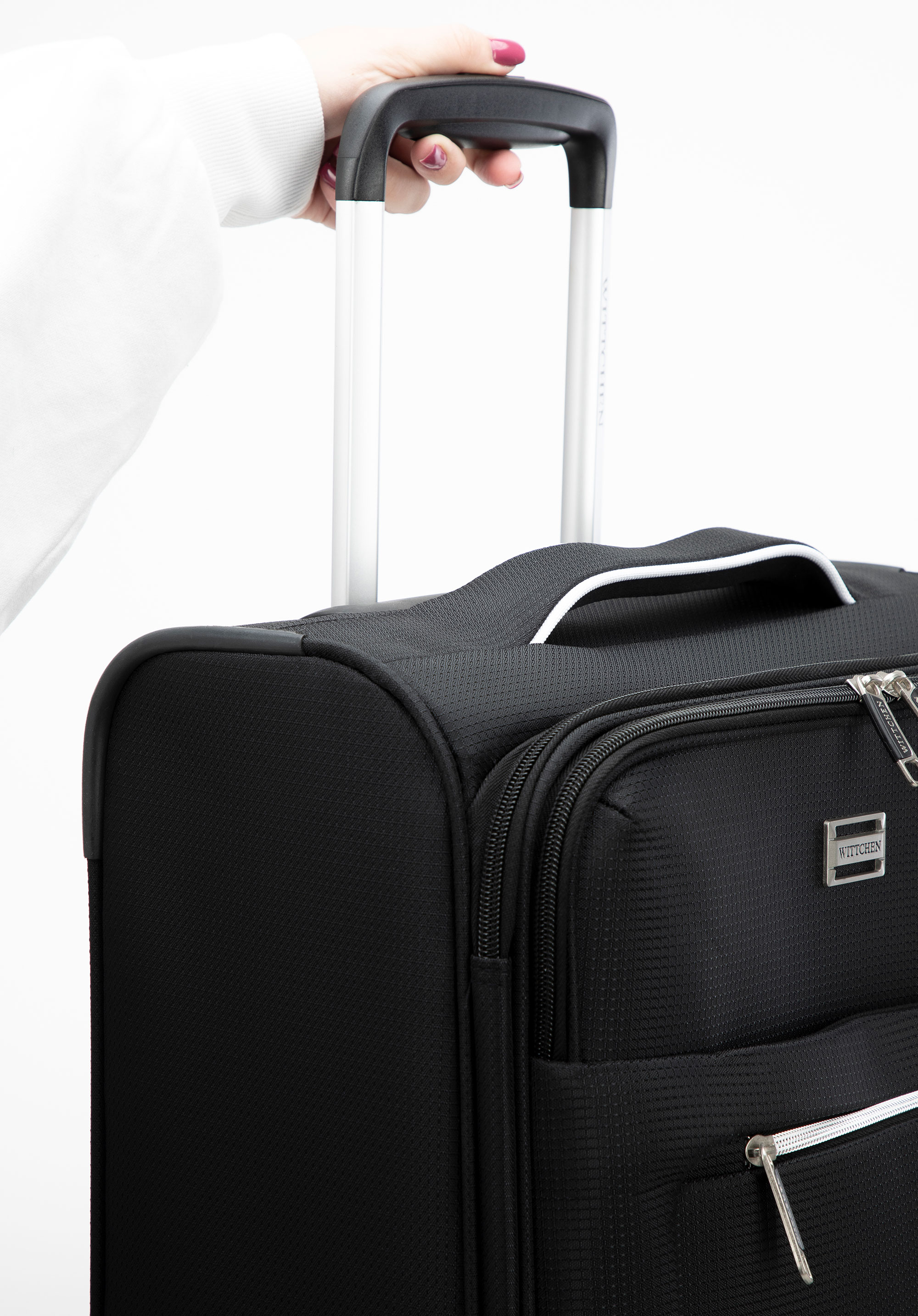 Маленька валіза з тканини з блискучою блискавкою спереду чорна