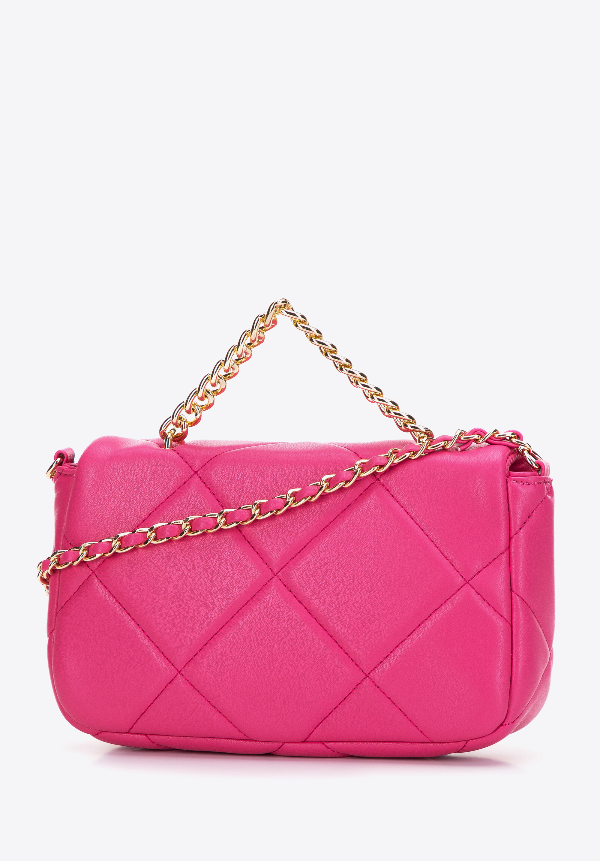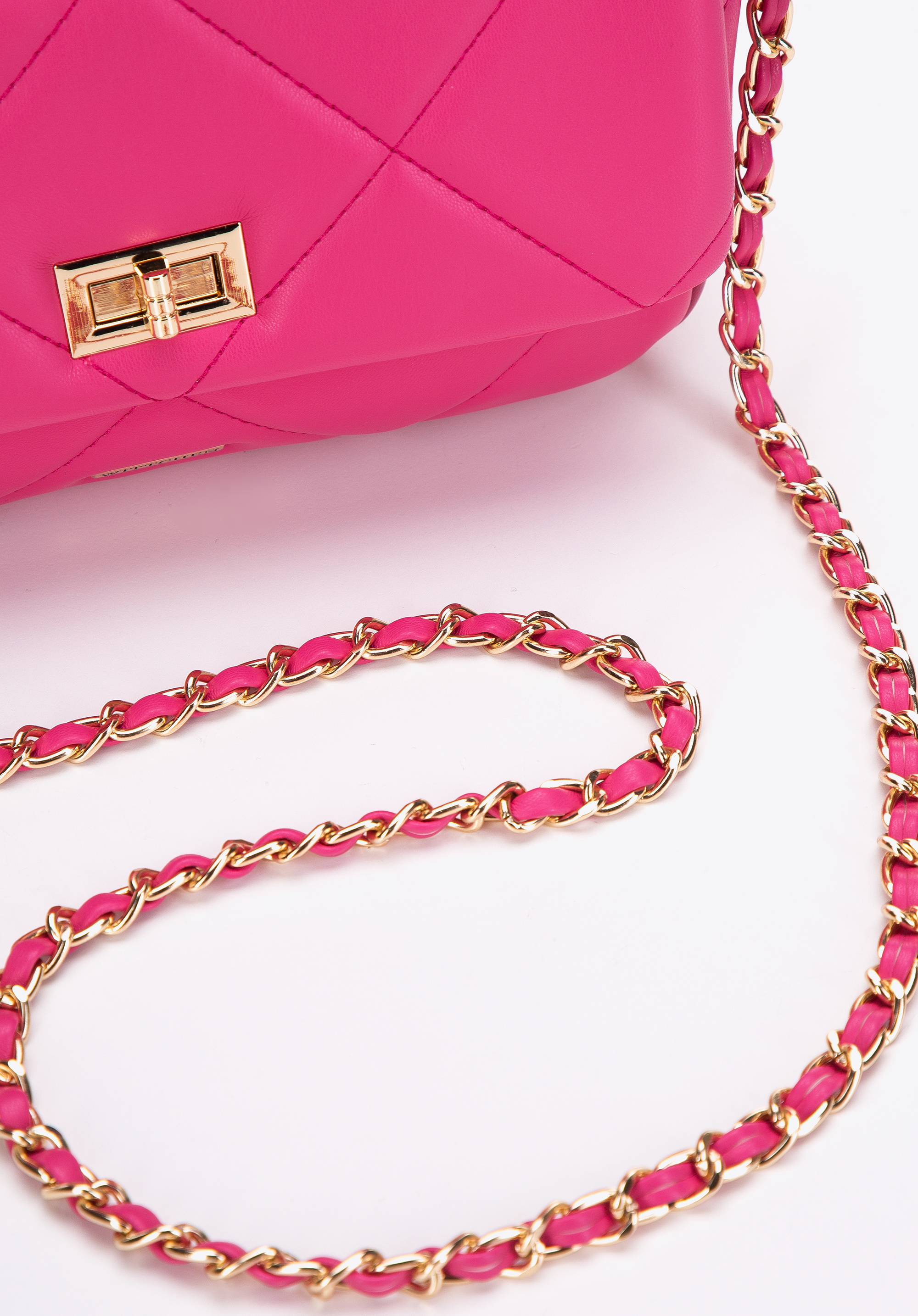 Маленька жіноча квадратна стьобана сумка на ланцюжку рожева