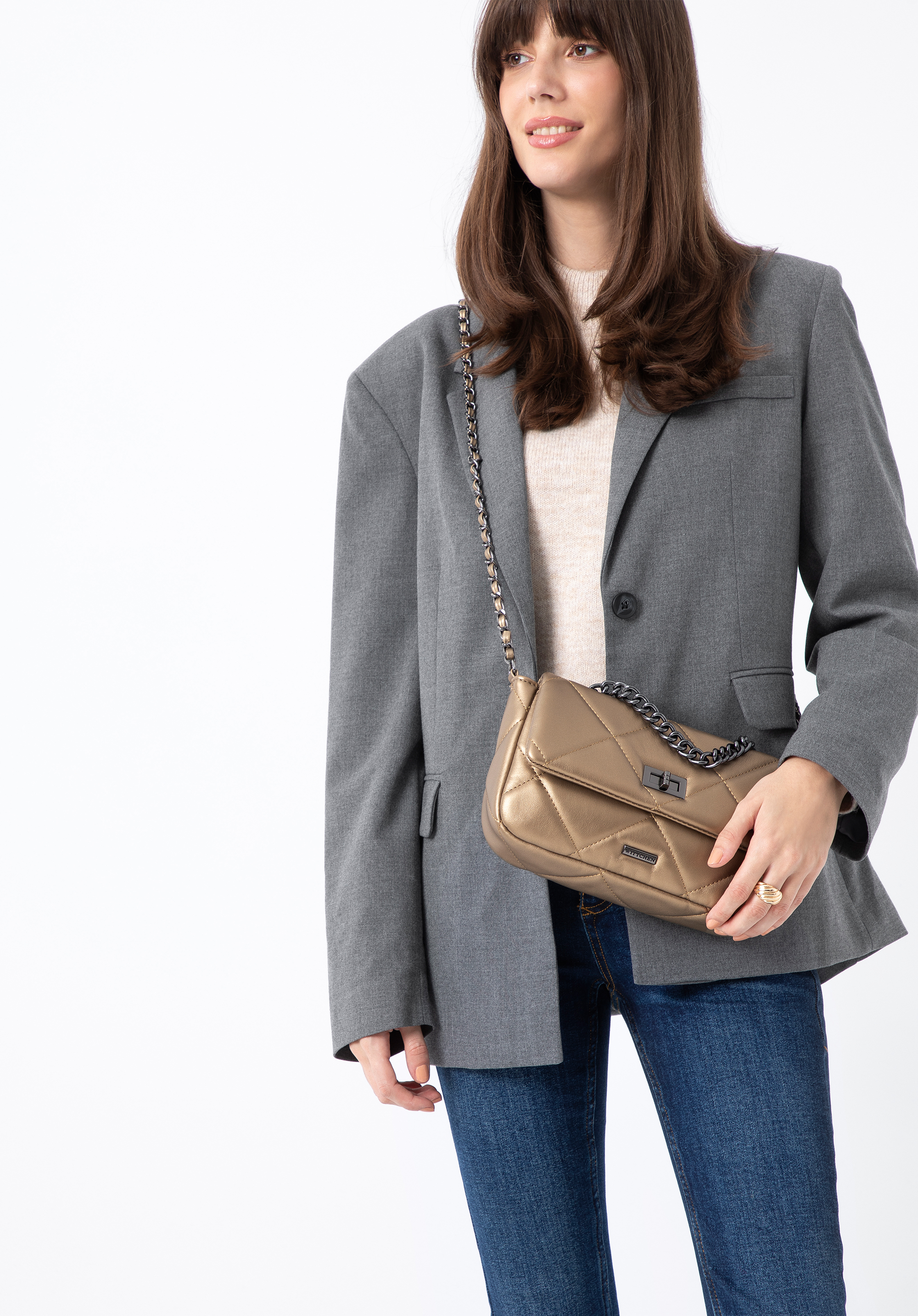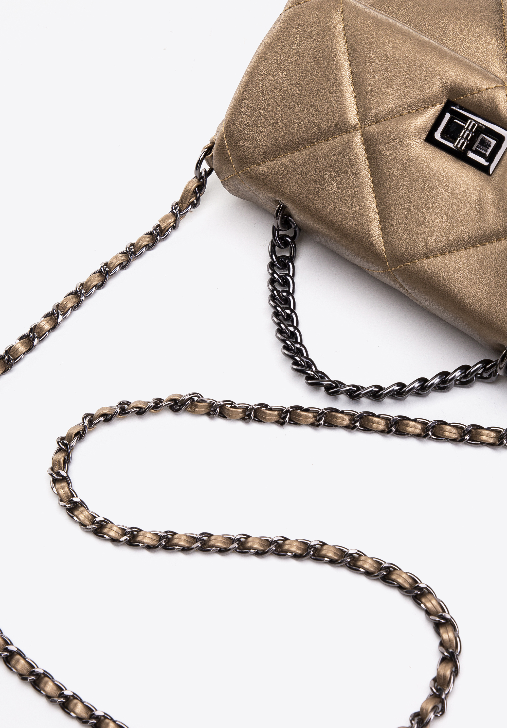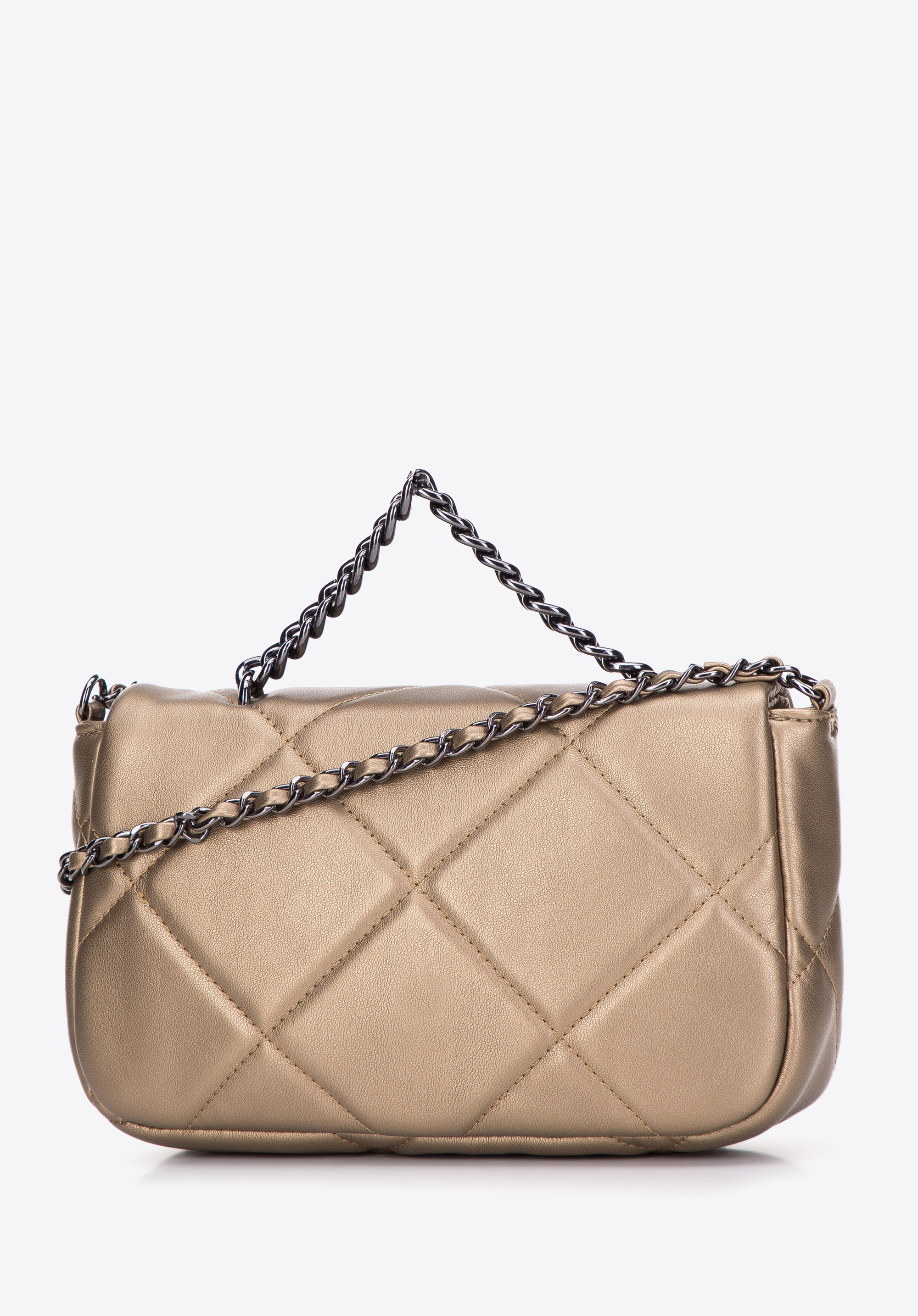 Маленька жіноча квадратна стьобана сумка на ланцюжку золота