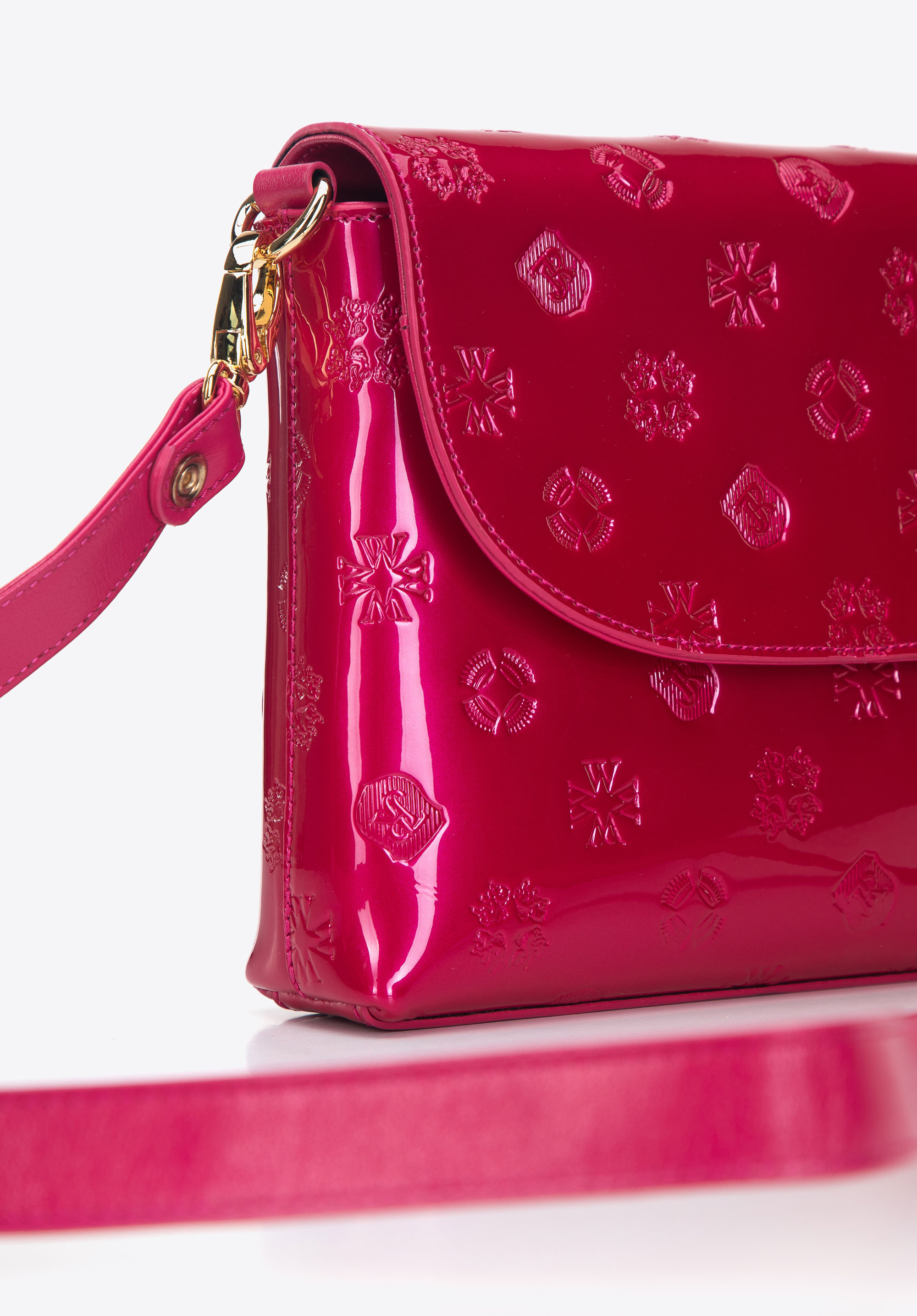 Ця унікальна акуратна сумка сподобається любителям оригінальних аксесуарів. Виготовлена з лакованої шкіри з тисненням монограми. Золотиста фурнітура додає блиску та стильно завершує ціле. Всередині можна помістити гаманець, телефон, невеликий календар і запасний шарф - ідеально підходить для виходу з друзями, в кіно або на прогулянку. Ним можна прикрасити найпростіші стилізації або підкреслити елегантний костюм чи сукню. Маленька жіноча сумка-месенджер з металізованої лакованої шкіри - це класичний дизайн із сучасною обробкою, який приверне увагу в будь-якій ситуації.