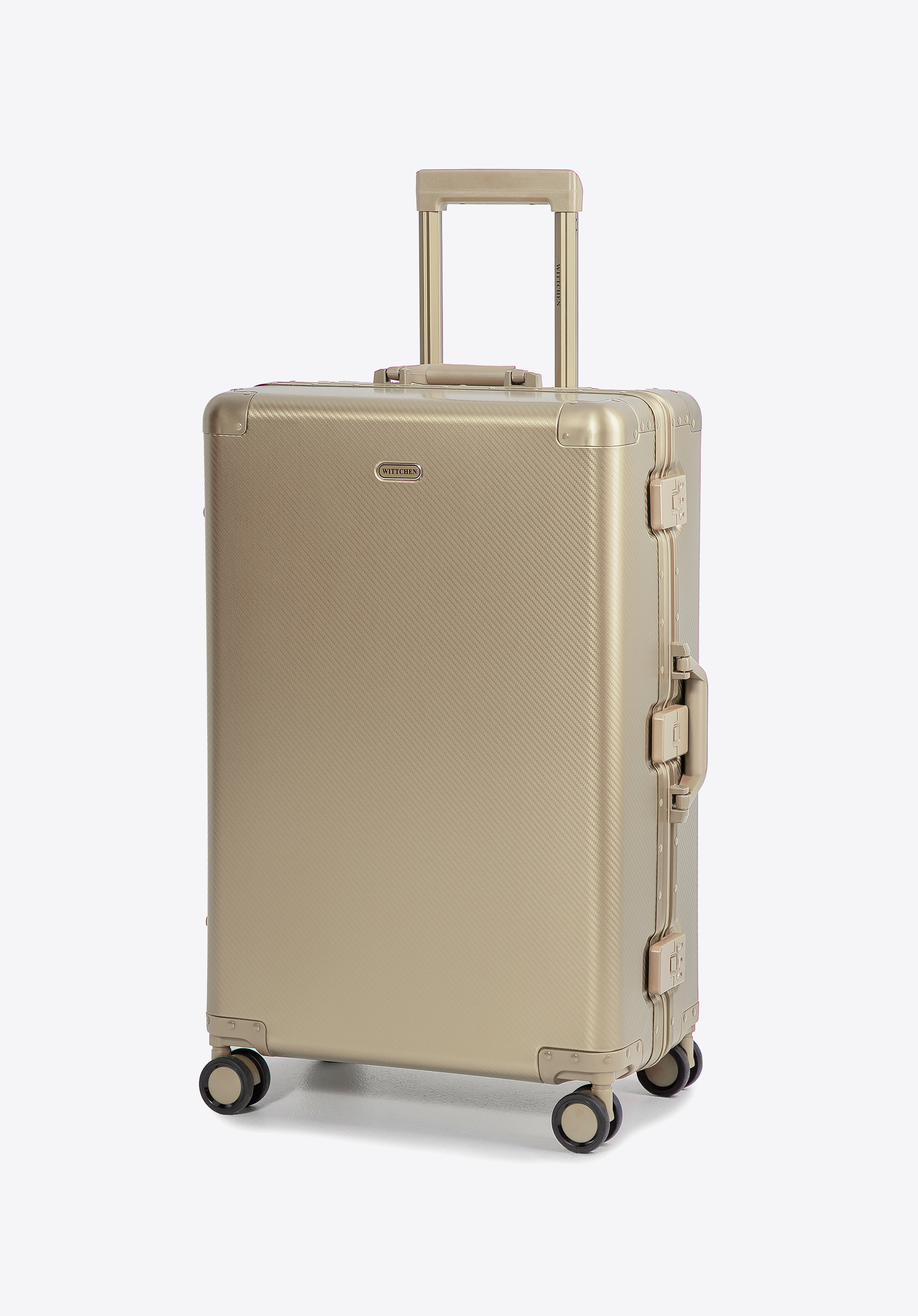 Подорожуйте стильно з комплектом із двох валіз WITTCHEN, виготовлених зі 100% алюмінію – матеріалу, який не лише привертає увагу, але й ідеально захищає вміст вашого багажу. Комплект включає валізу маленького та середнього розміру, розроблену з урахуванням безпеки та комфорту використання за будь-яких умов – від коротких поїздок до тривалих ділових поїздок чи відпусток.