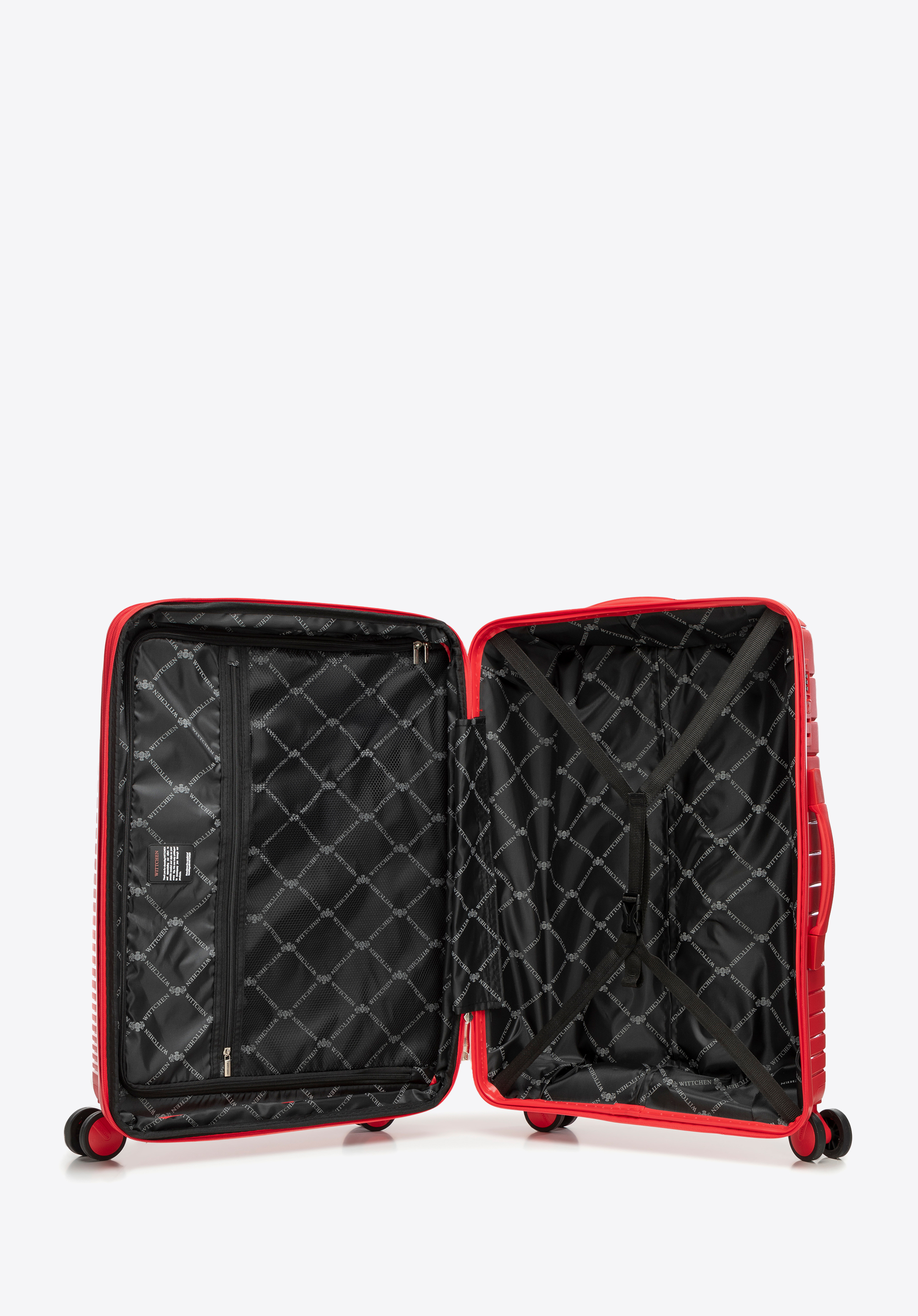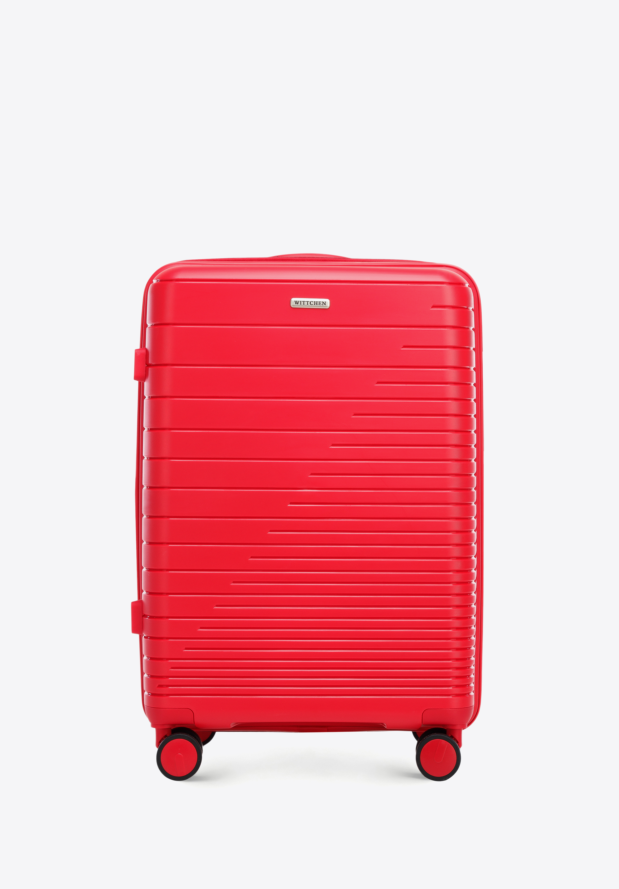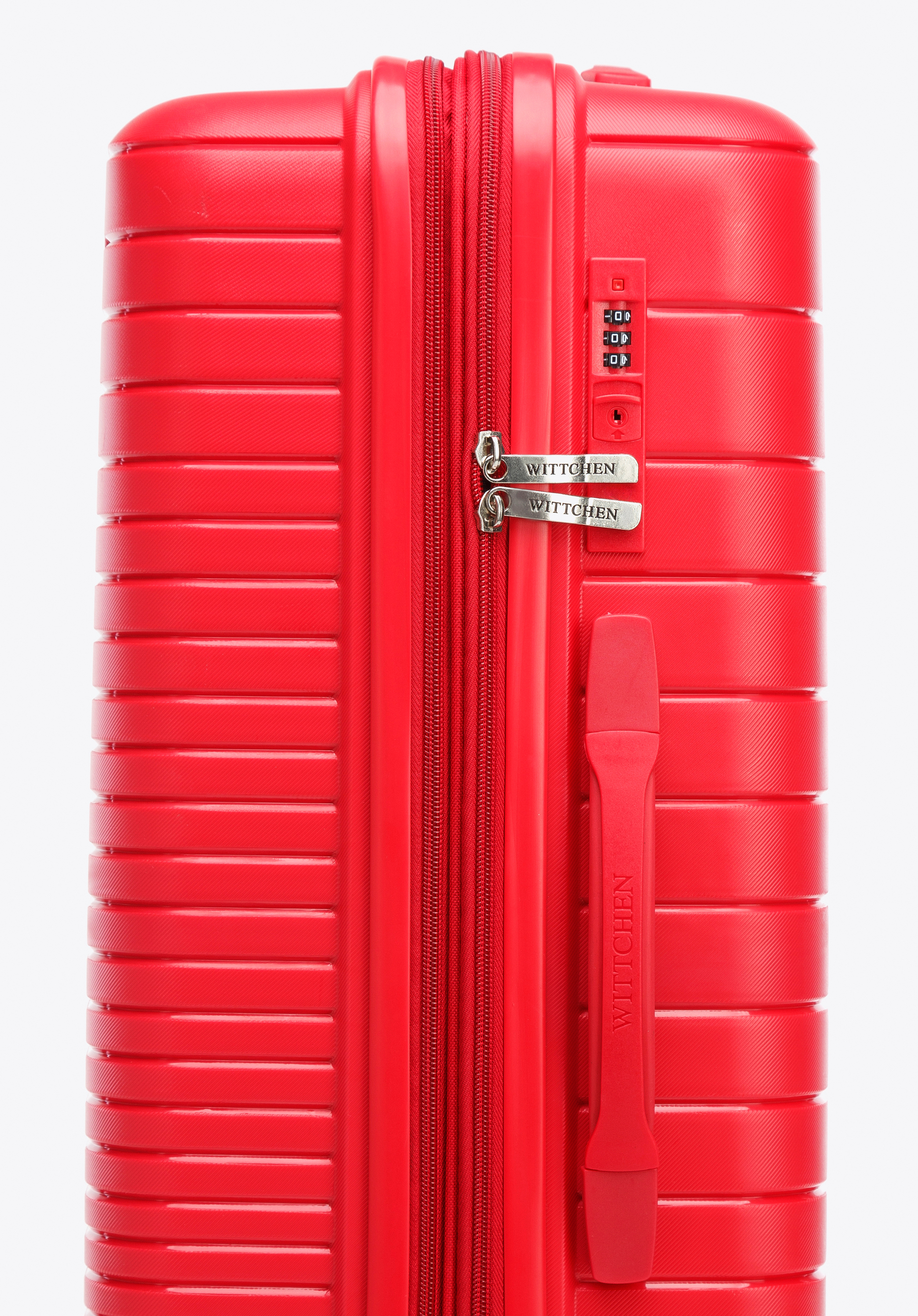 Ці валізи стануть зручним і стильним вибором для будь-якого любителя подорожей. Вони виготовлені з високоякісного поліпропілену, тому вони легкі та дуже гнучкі. Матовий корпус прикрашений блискучими горизонтальними смужками, які надають їм сучасний вигляд. Середню та велику валізи можна розширити, тому ви можете легко пристосувати їх до своїх потреб під час кожної подорожі. Всередині вони мають два відділення, де можна легко стежити за порядком і зручно спакувати речі в дорогу. Завдяки висувній телескопічній ручці та чотирьом подвійним поворотним колесам їх буде зручно переміщати. Набір поліпропіленових валіз з блискучими смужками - відмінний вибір для будь-якої подорожі.